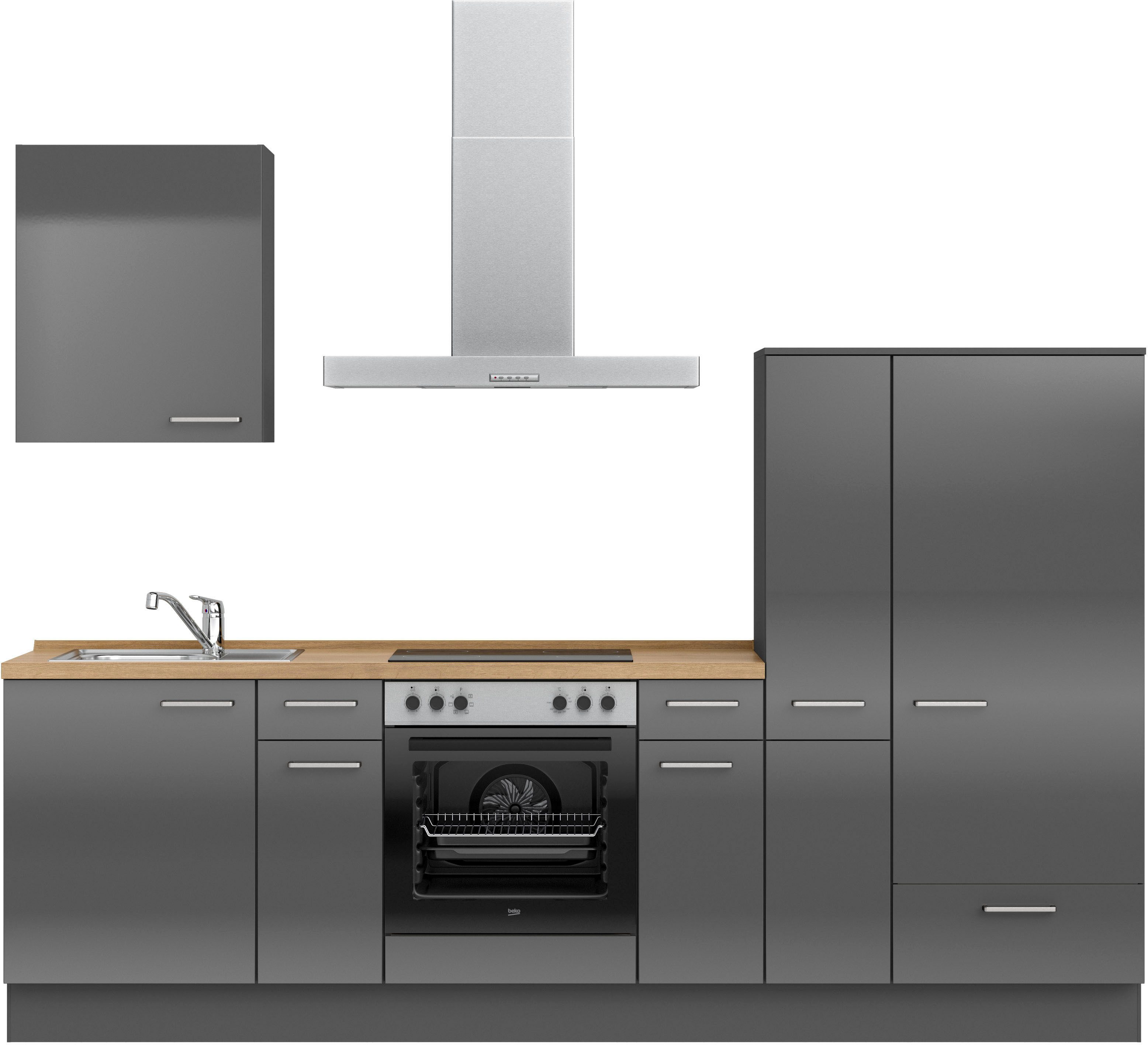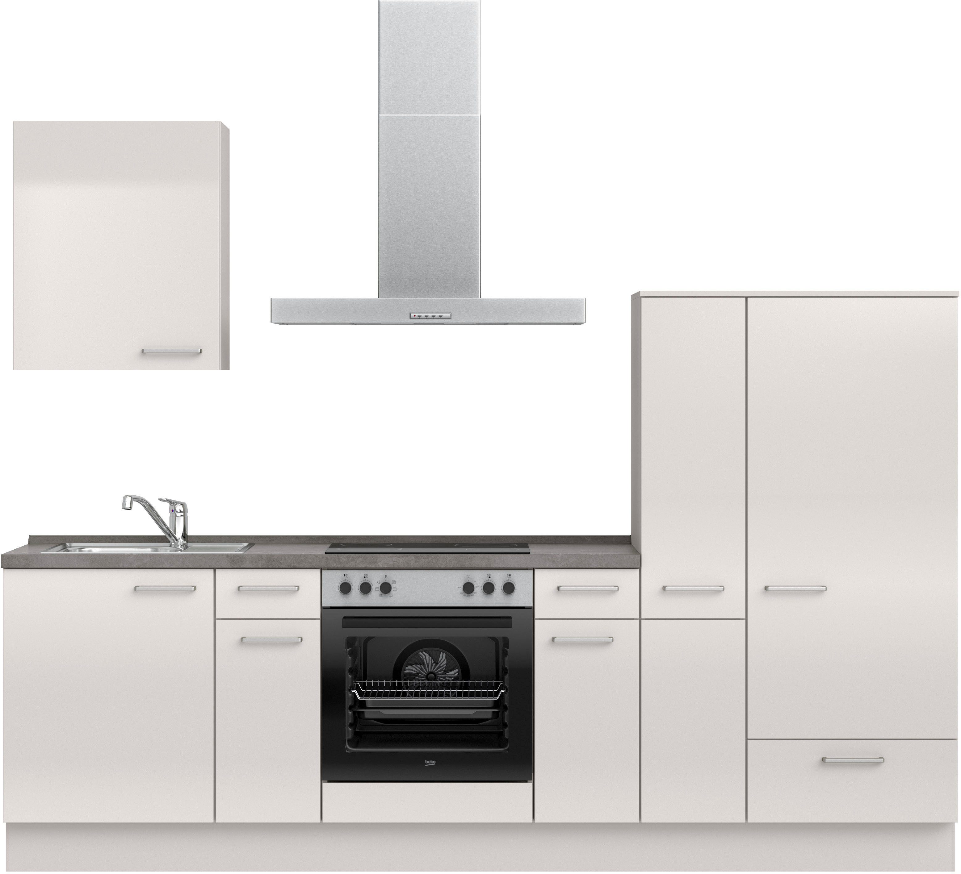 Ausstattung | Durchgehende Arbeitsplatte Einlegeböden höhenverstellbar Schubkästen mit Soft-Close-Funktion Türen mit Soft-Close-Funktion Wandabschlussleiste |