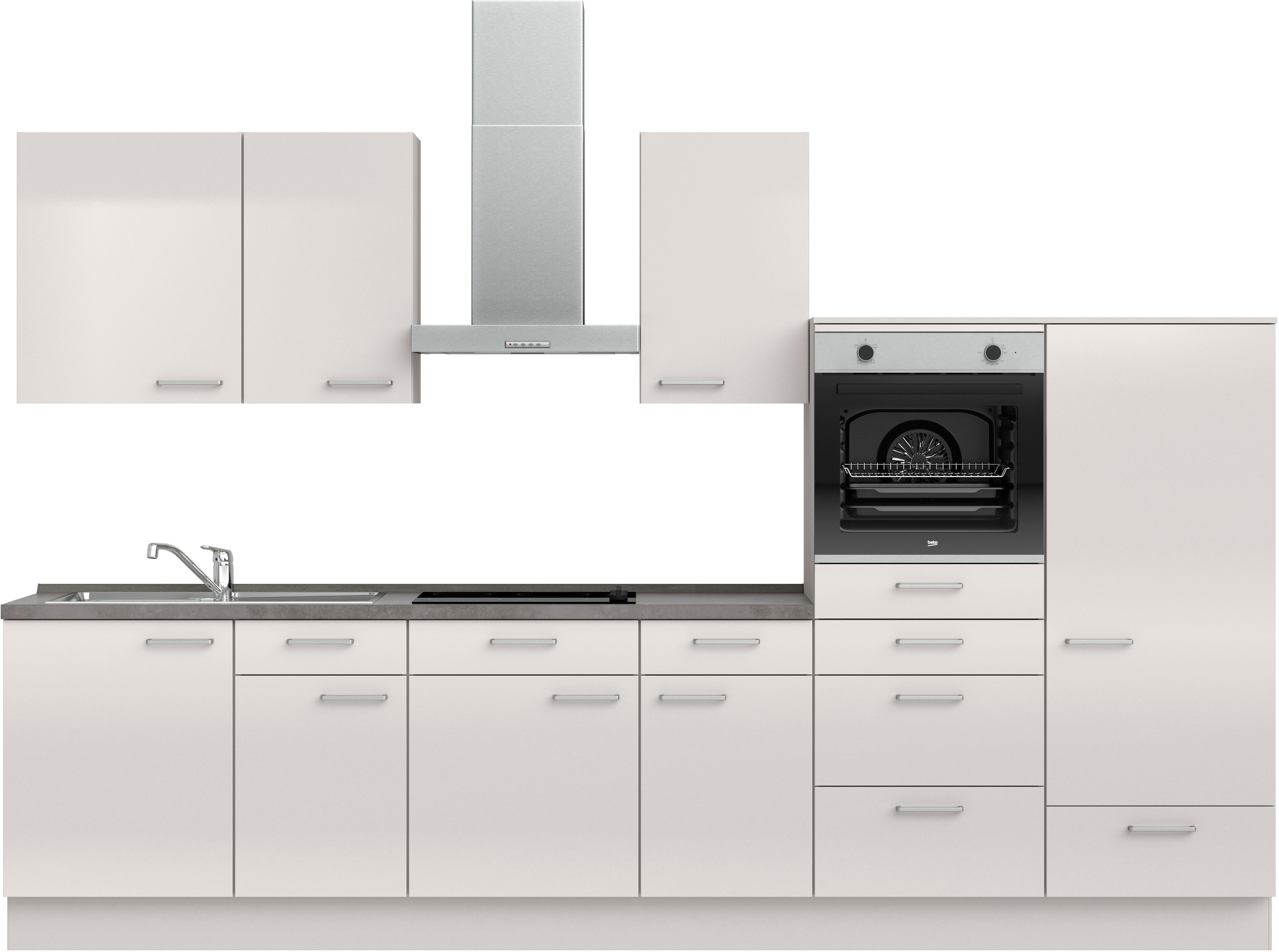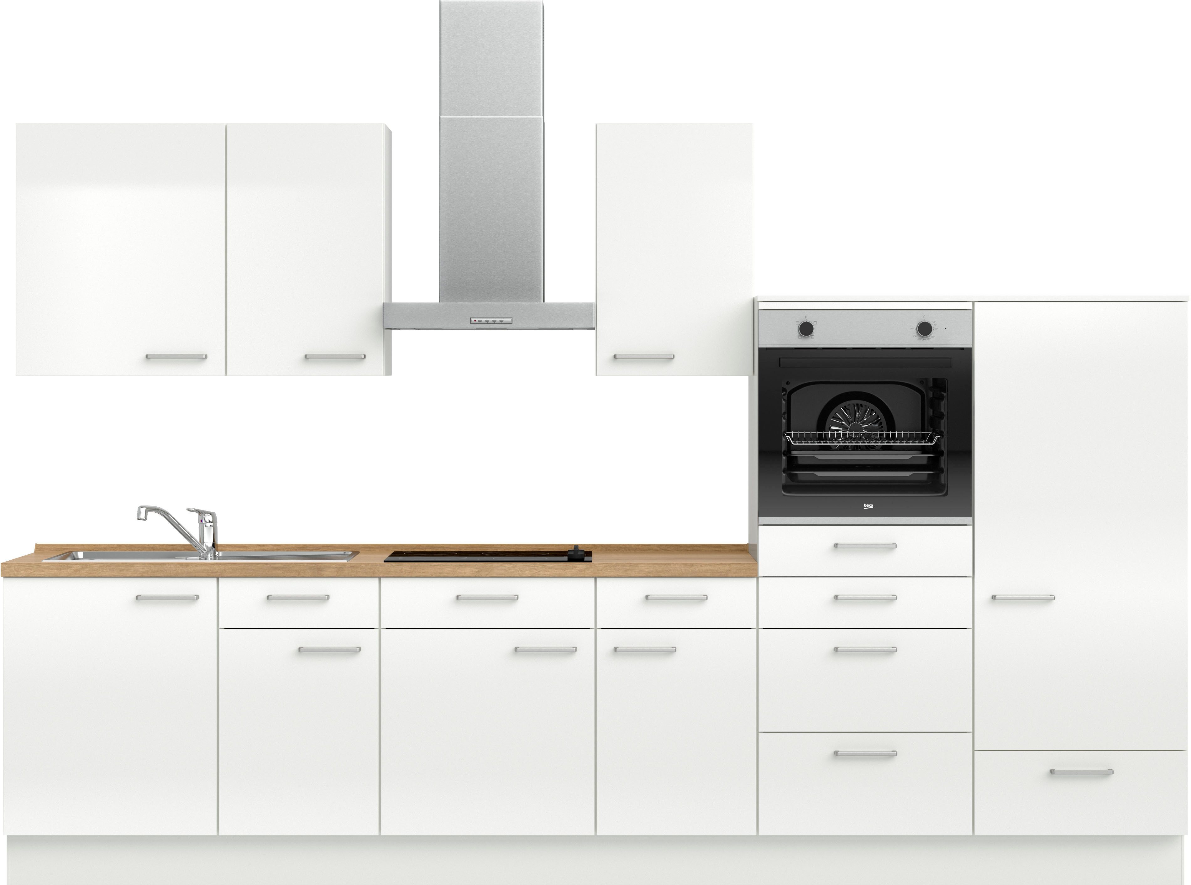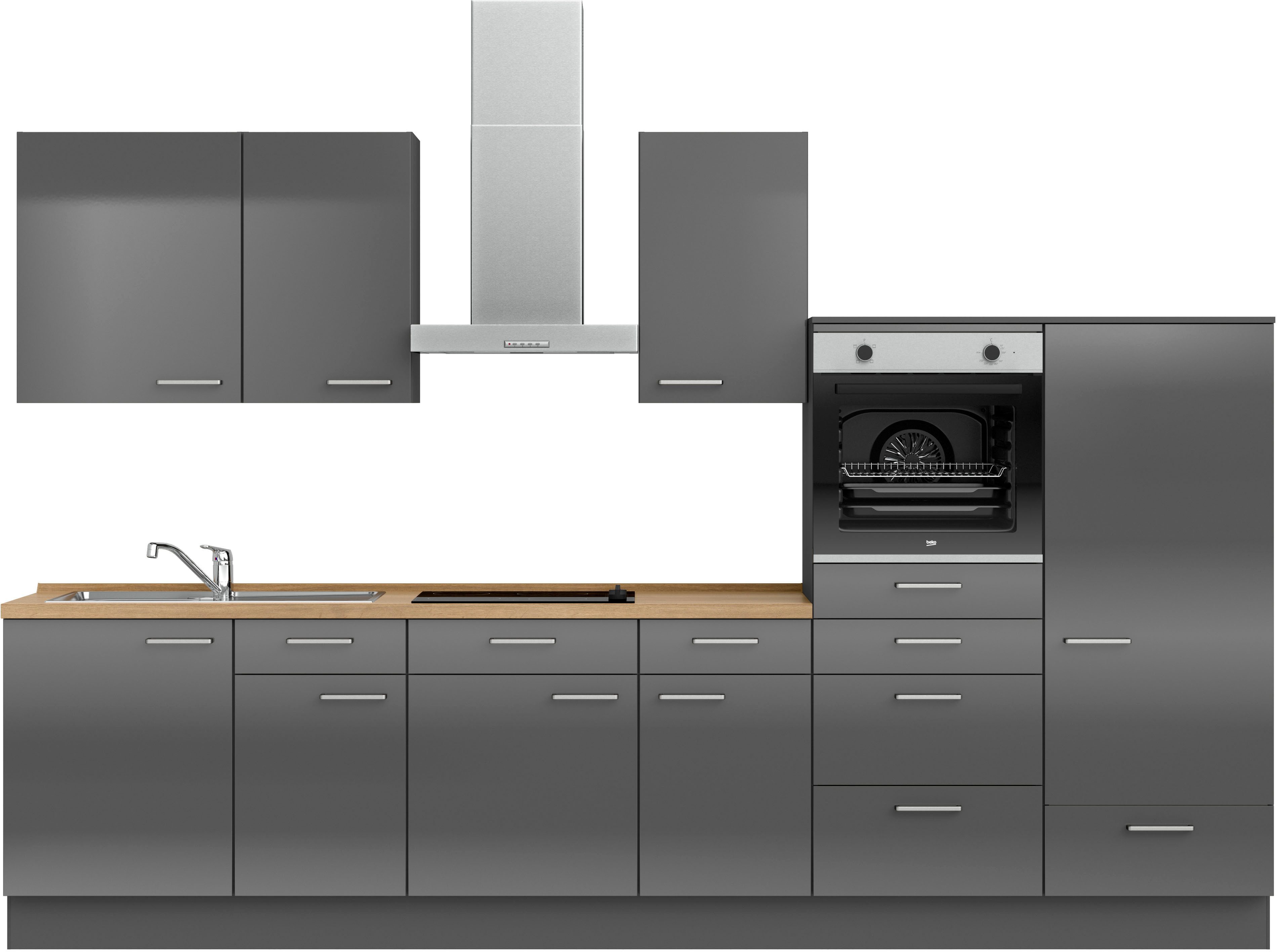 Ausstattung | Durchgehende Arbeitsplatte Einlegeböden höhenverstellbar Schubkästen mit Soft-Close-Funktion Türen mit Soft-Close-Funktion Wandabschlussleiste |