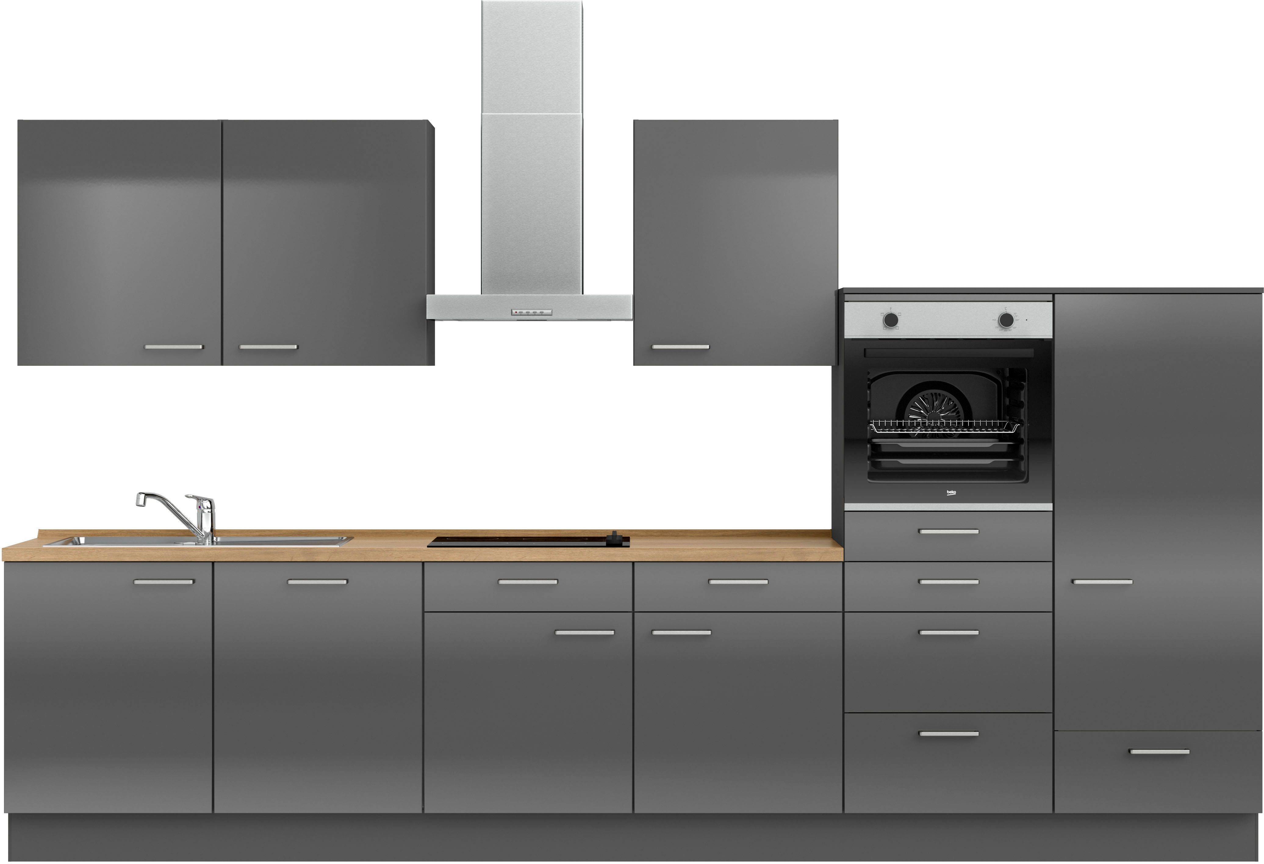 Ausstattung | Durchgehende Arbeitsplatte Einlegeböden höhenverstellbar Schubkästen mit Soft-Close-Funktion Türen mit Soft-Close-Funktion Wandabschlussleiste |
