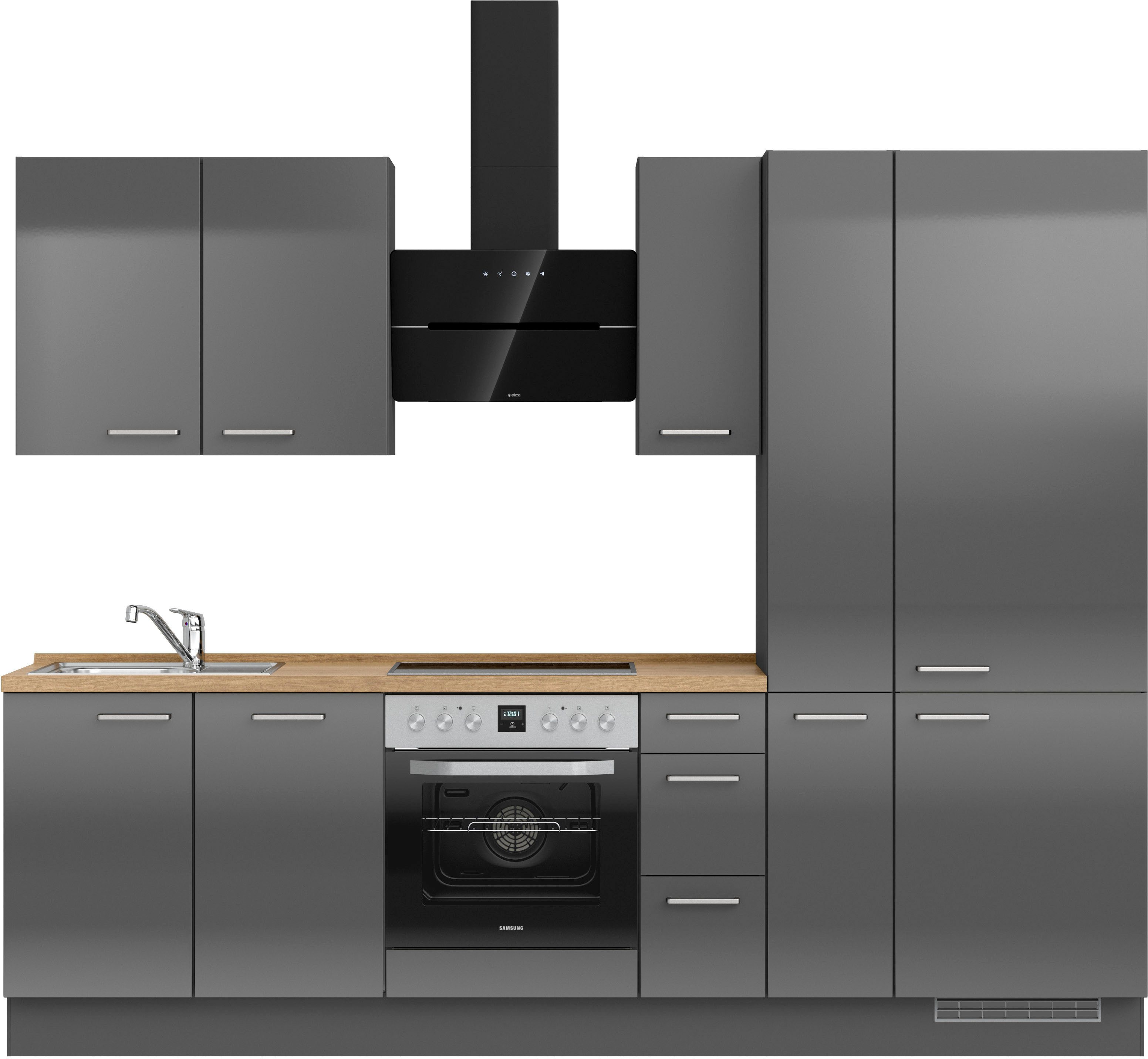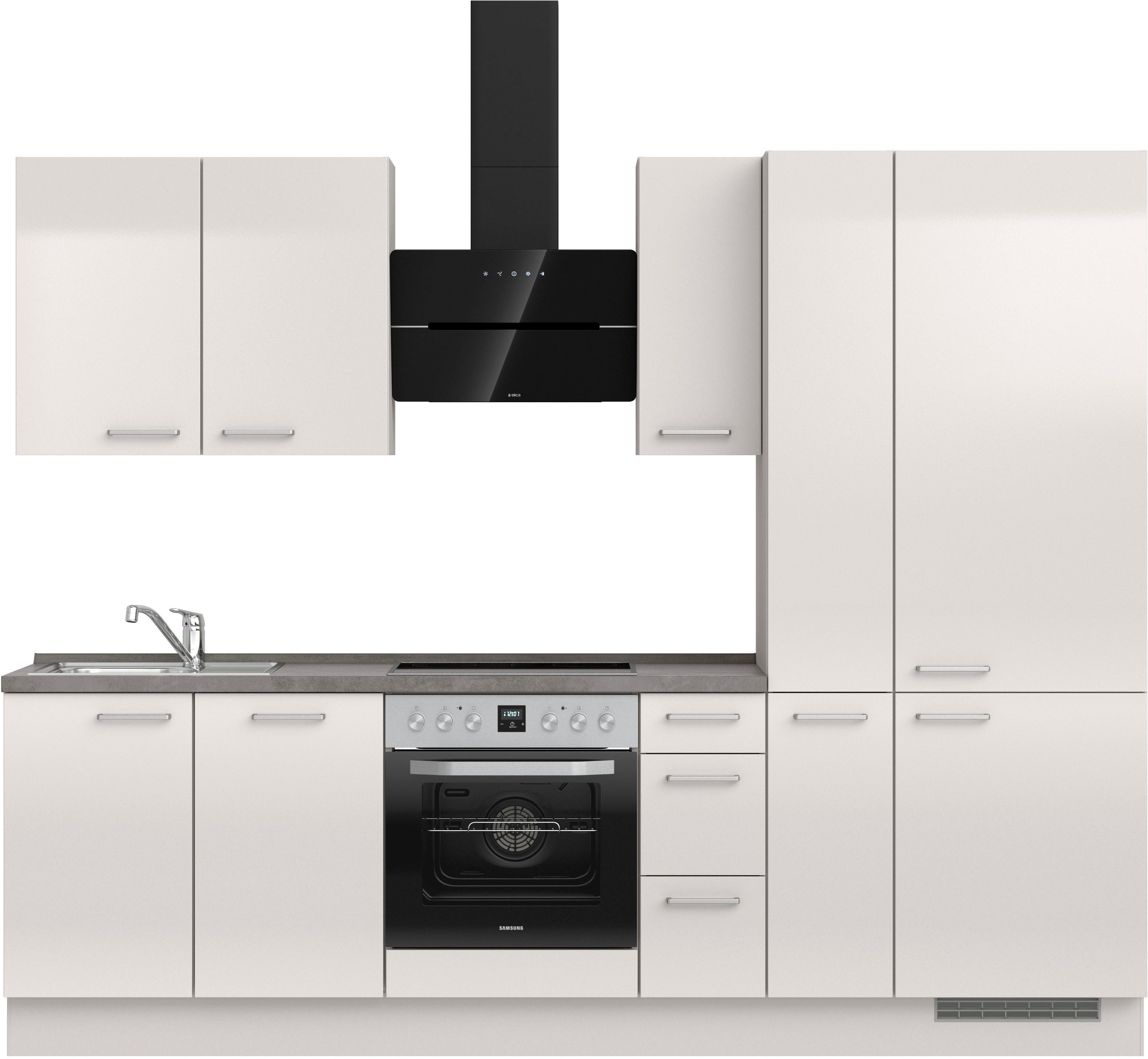 Ausstattung | Durchgehende Arbeitsplatte Einlegeböden höhenverstellbar Schubkästen mit Soft-Close-Funktion Türen mit Soft-Close-Funktion Wandabschlussleiste |