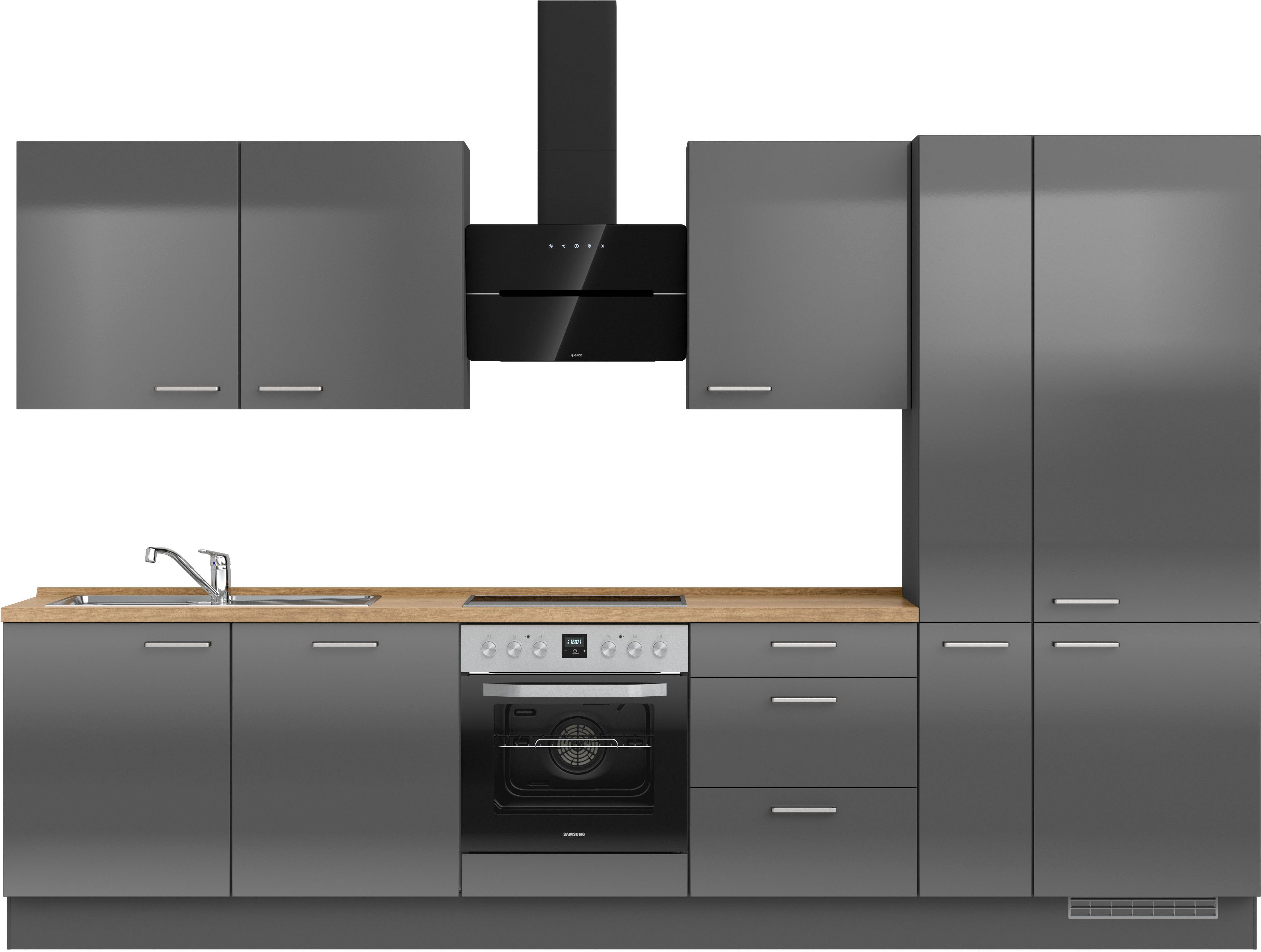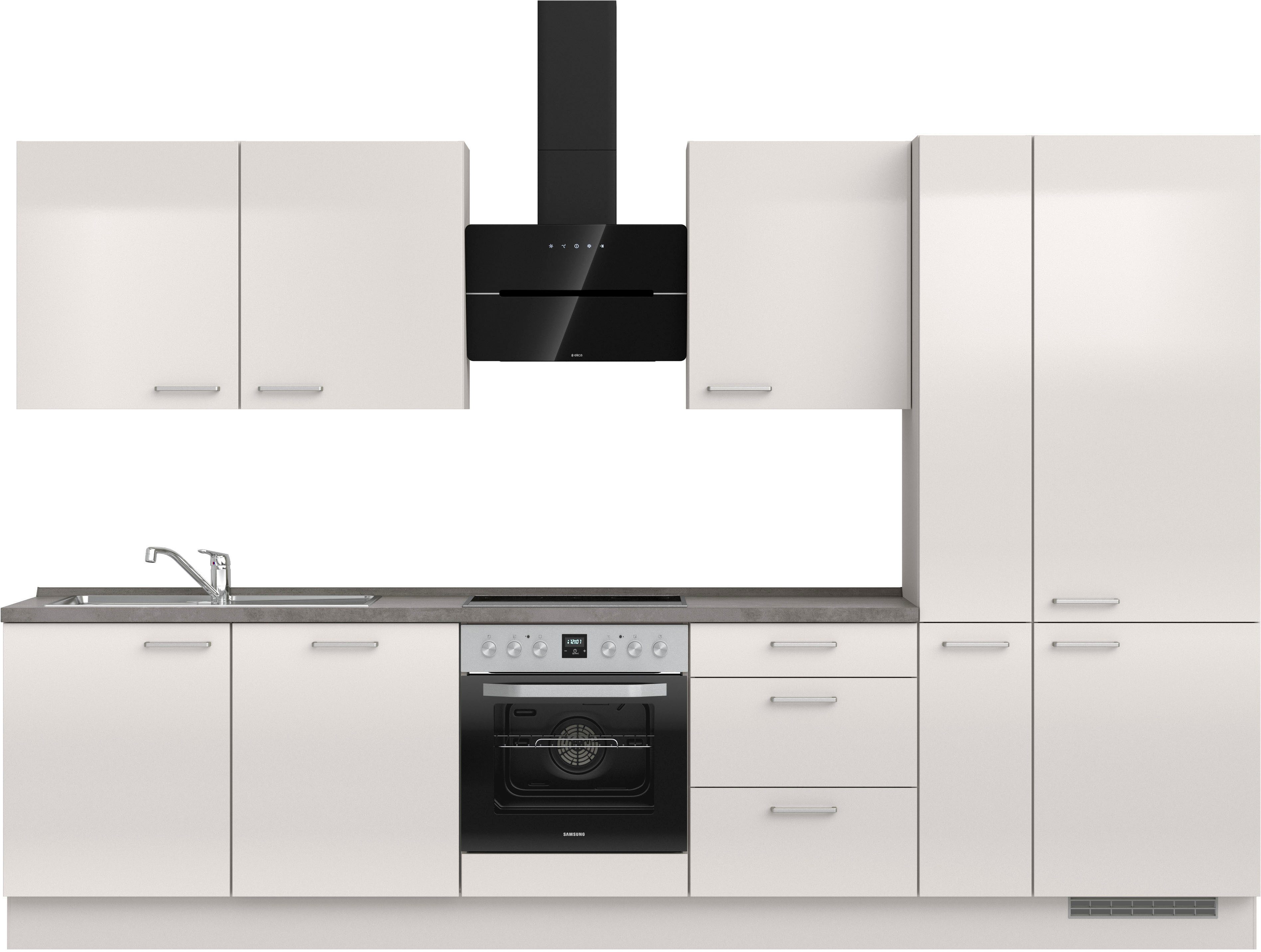 Ausstattung | Durchgehende Arbeitsplatte Einlegeböden höhenverstellbar Schubkästen mit Soft-Close-Funktion Türen mit Soft-Close-Funktion Wandabschlussleiste |