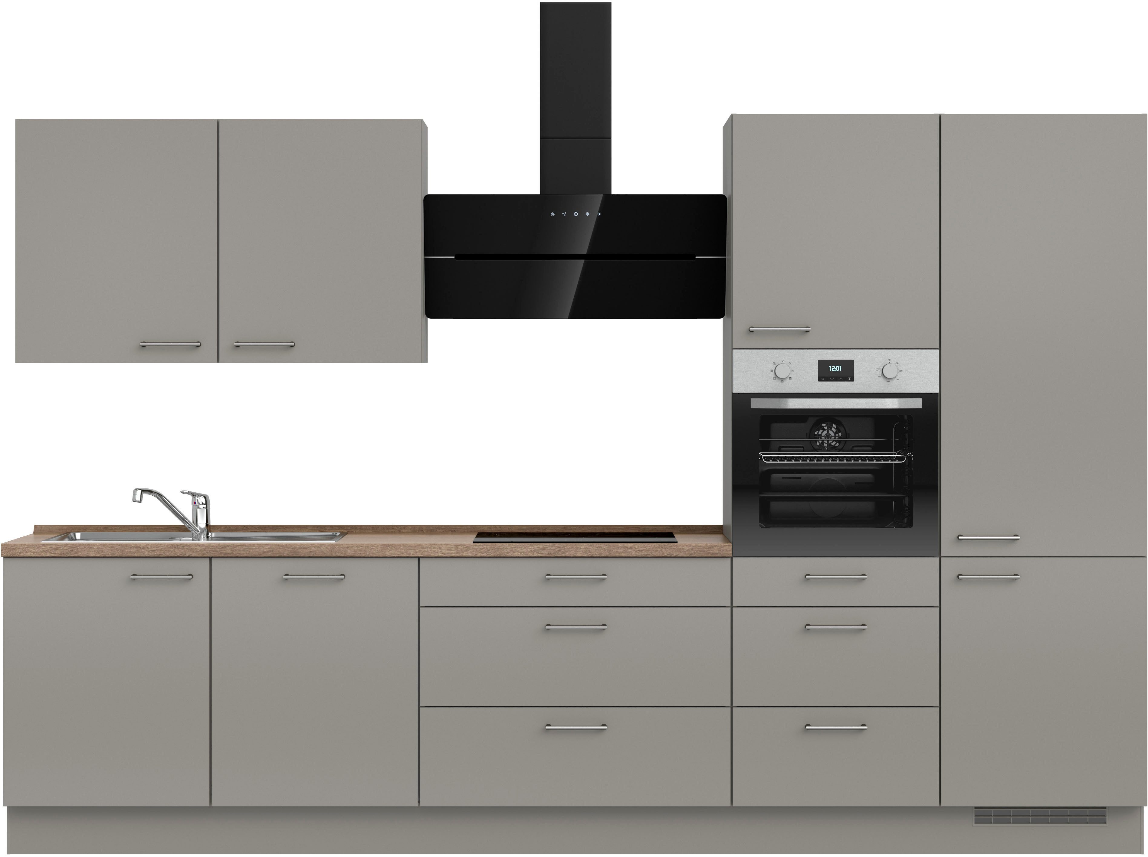 Ausstattung | Durchgehende Arbeitsplatte Einlegeböden höhenverstellbar Schubkästen mit Soft-Close-Funktion Türen mit Soft-Close-Funktion Wandabschlussleiste |