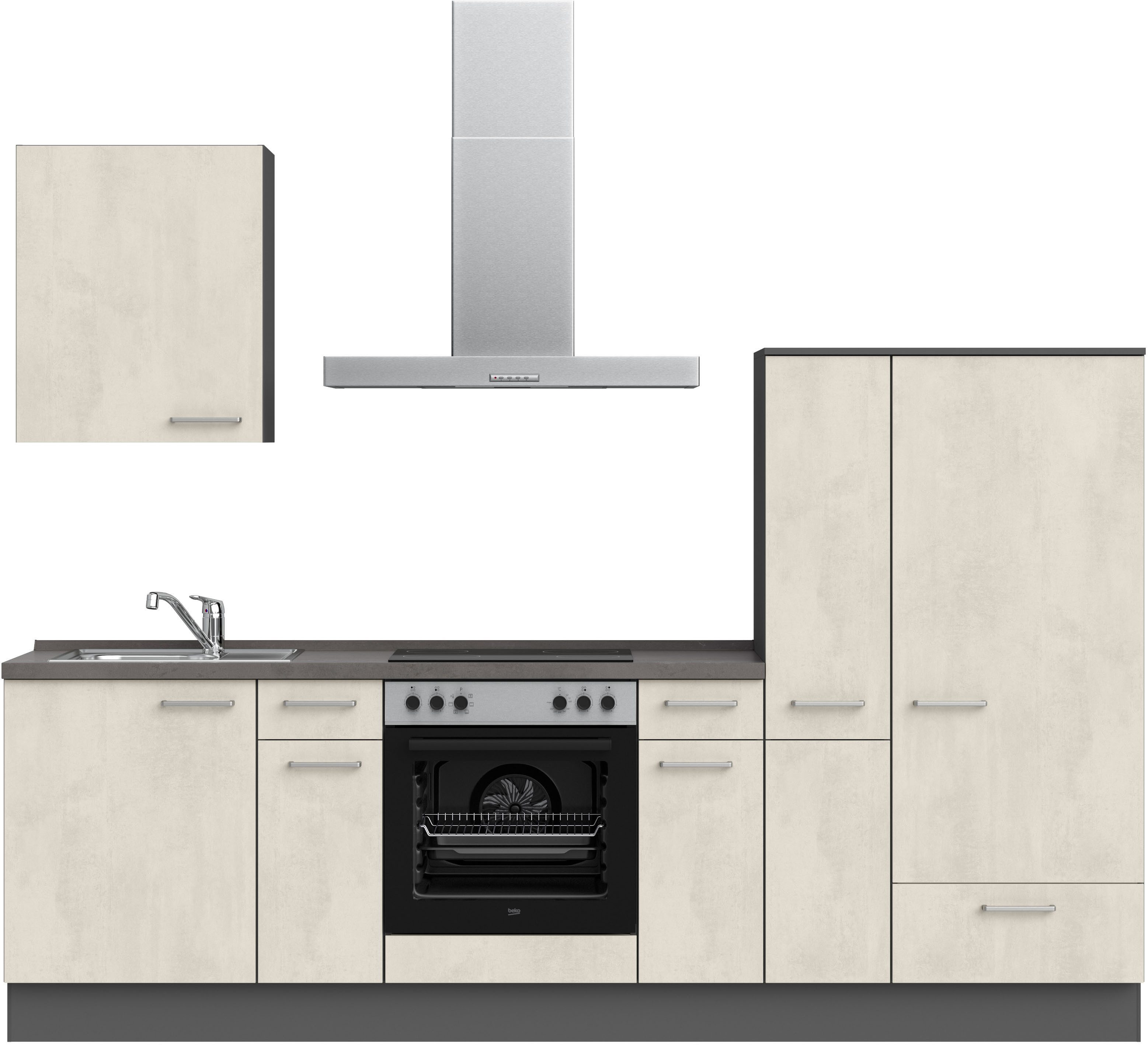 Ausstattung | Durchgehende Arbeitsplatte Einlegeböden höhenverstellbar Schubkästen mit Soft-Close-Funktion Türen mit Soft-Close-Funktion Wandabschlussleiste |