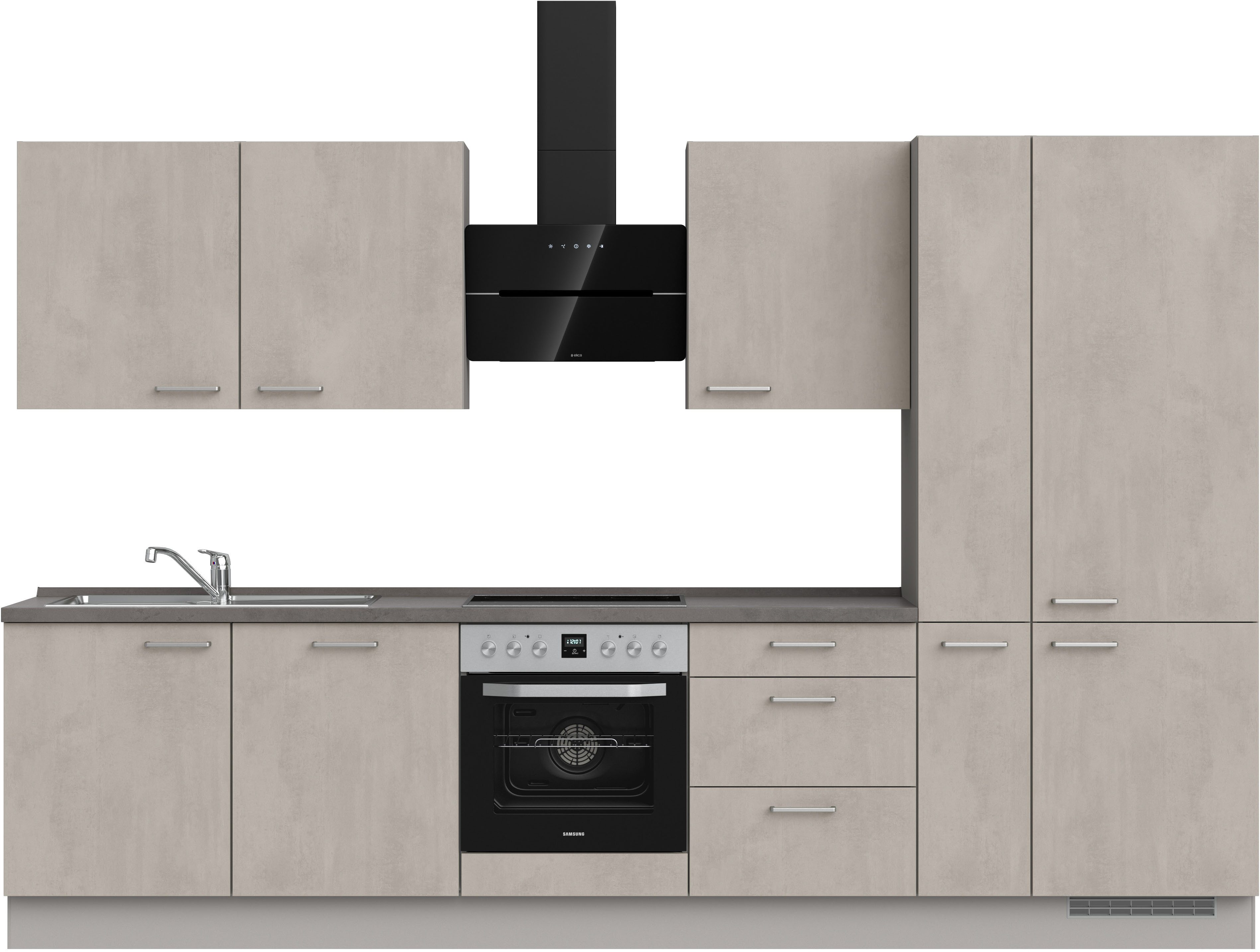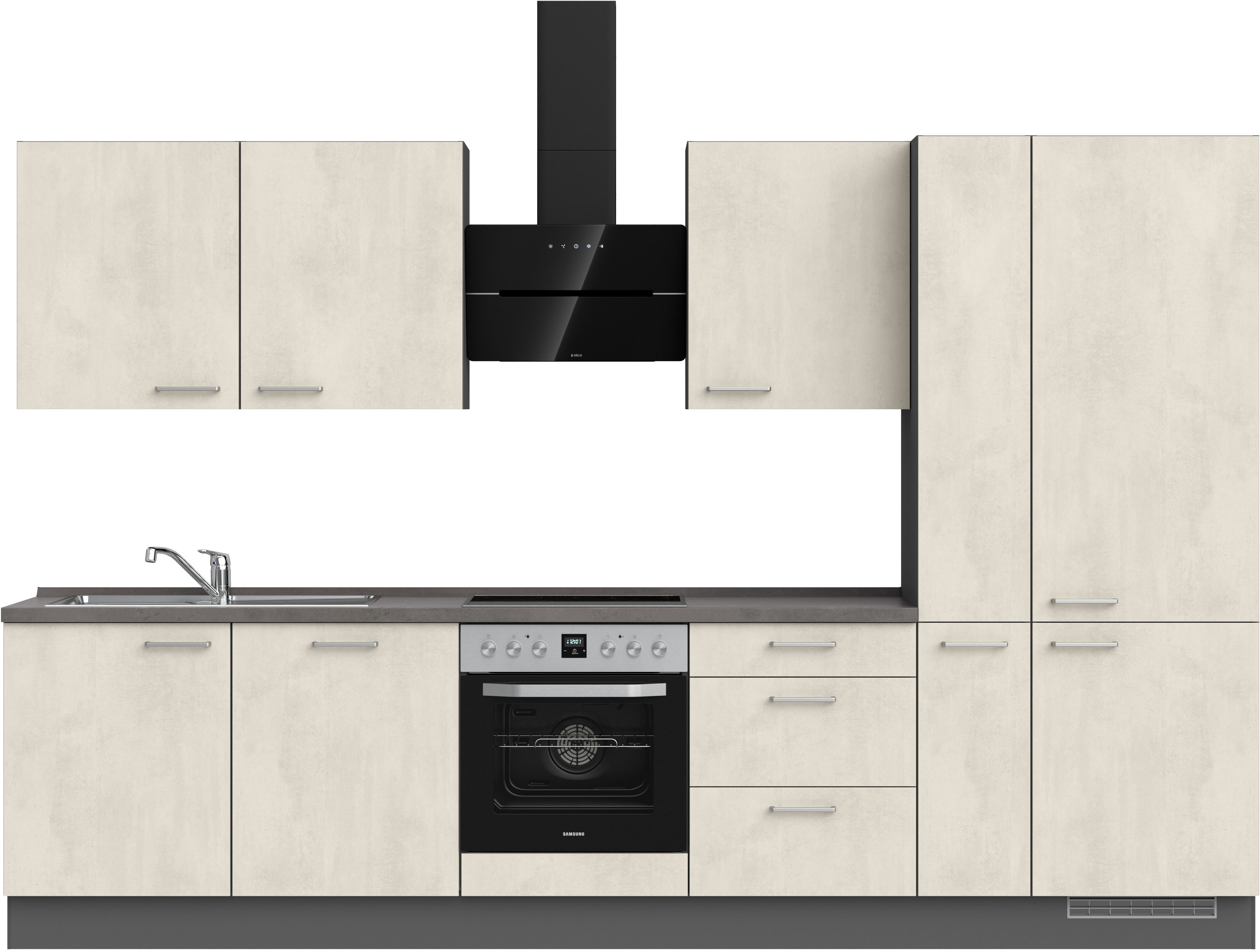 Ausstattung | Durchgehende Arbeitsplatte Einlegeböden höhenverstellbar Schubkästen mit Soft-Close-Funktion Türen mit Soft-Close-Funktion Wandabschlussleiste |
