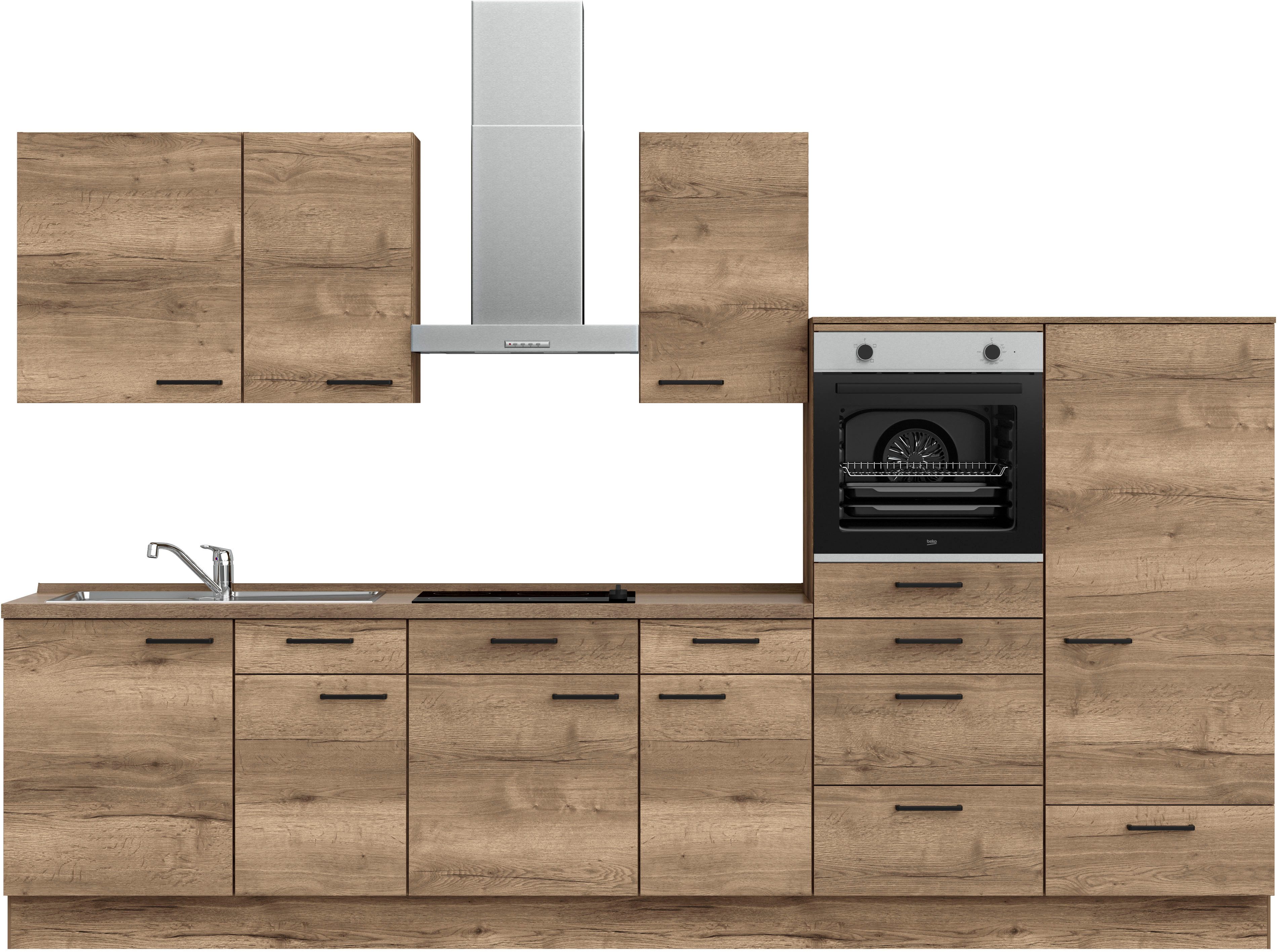 Ausstattung | Durchgehende Arbeitsplatte Einlegeböden höhenverstellbar Schubkästen mit Soft-Close-Funktion Türen mit Soft-Close-Funktion Wandabschlussleiste |