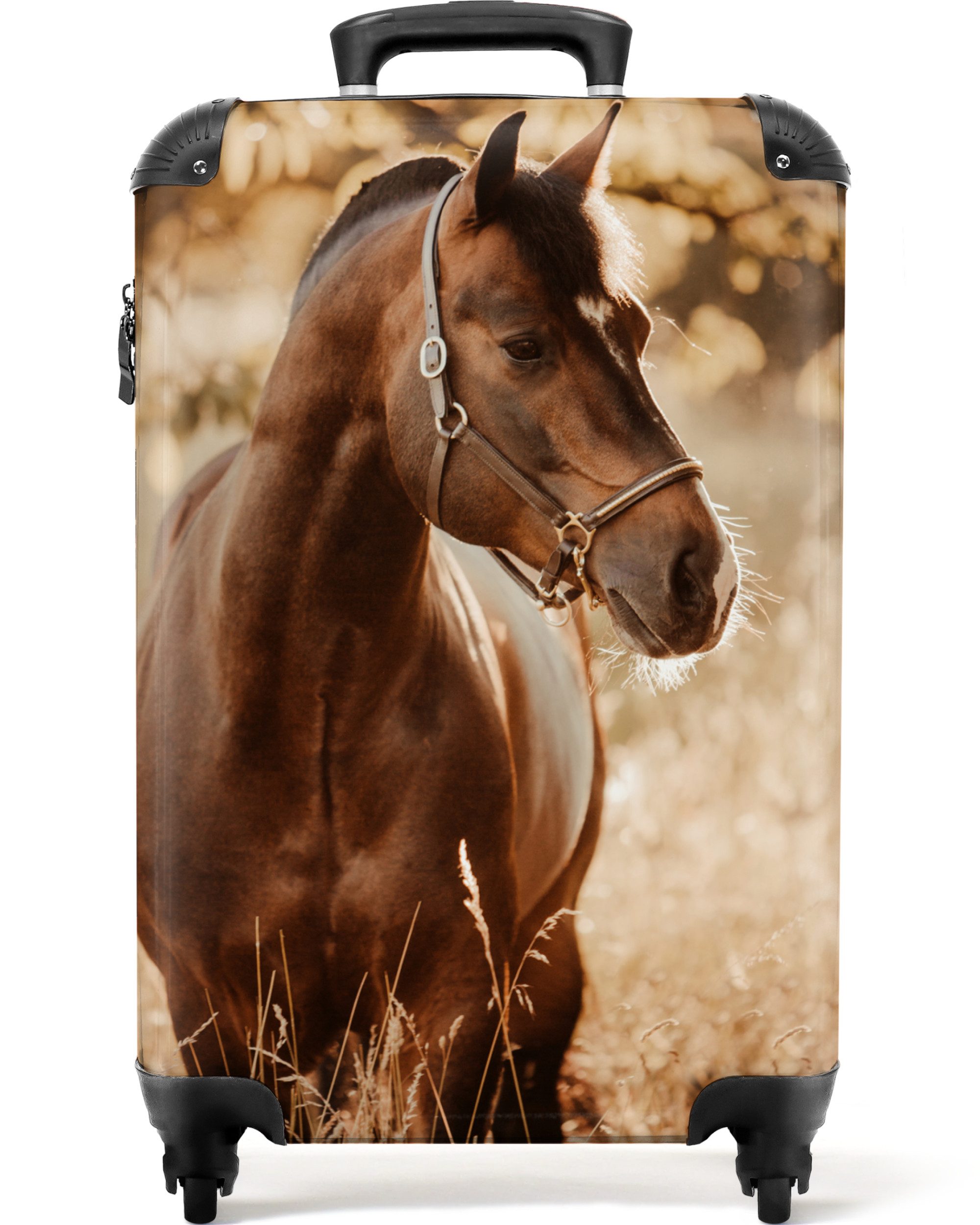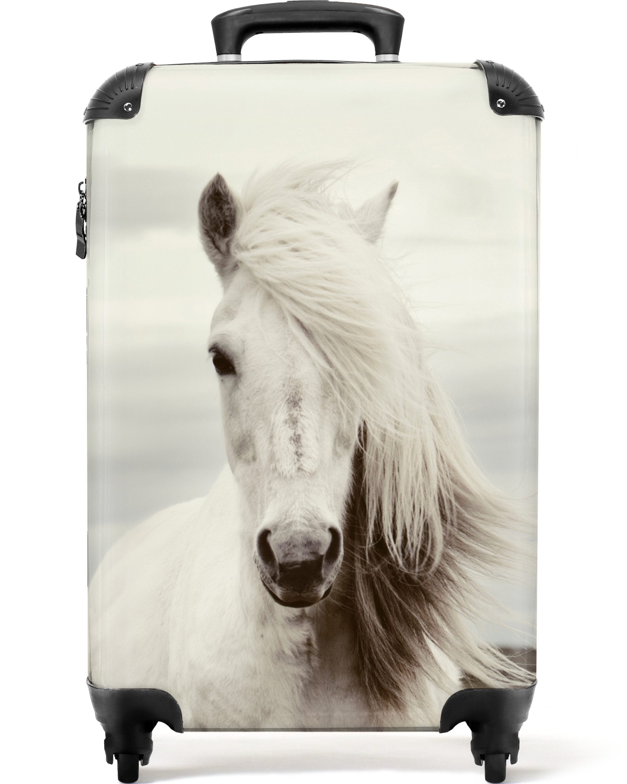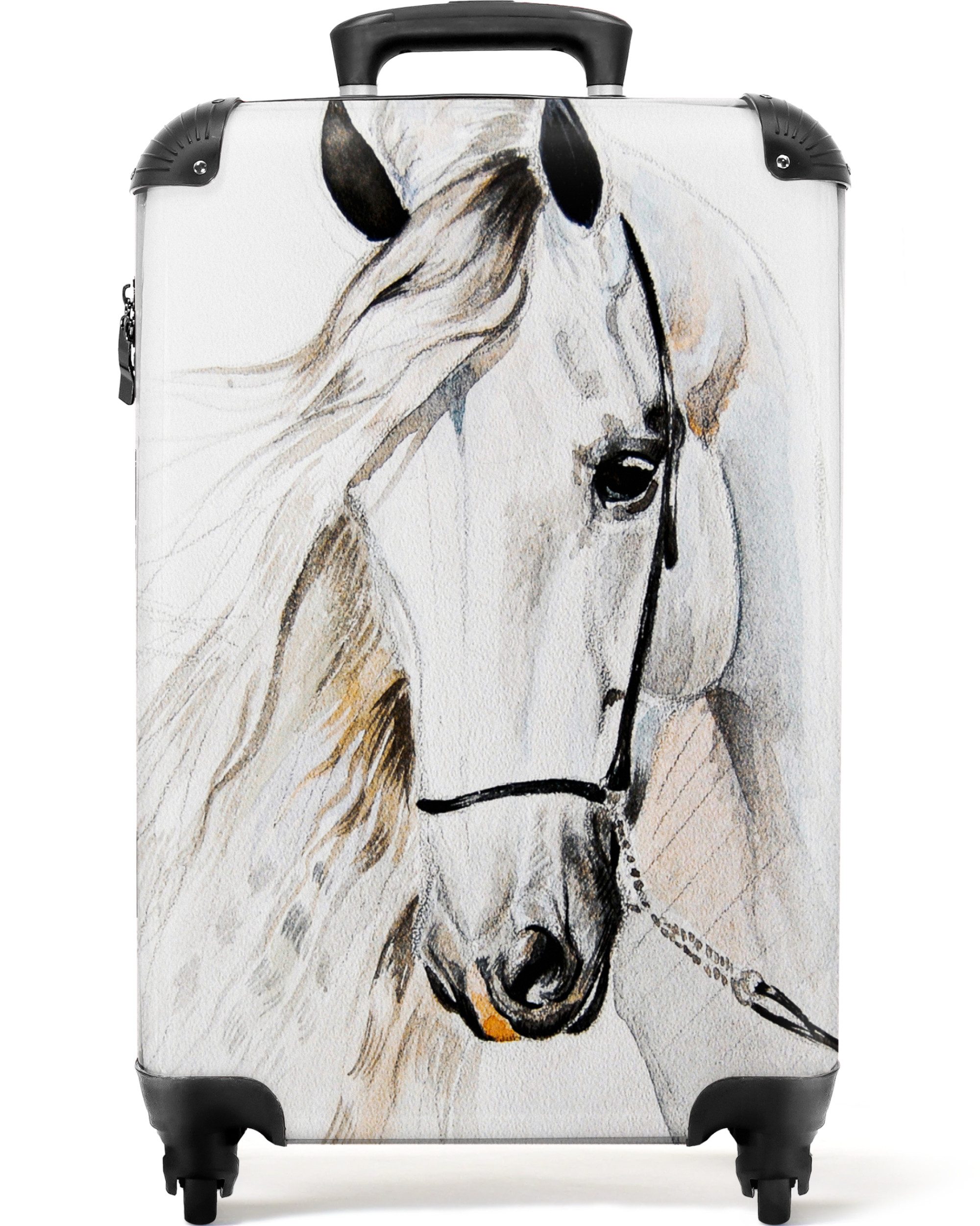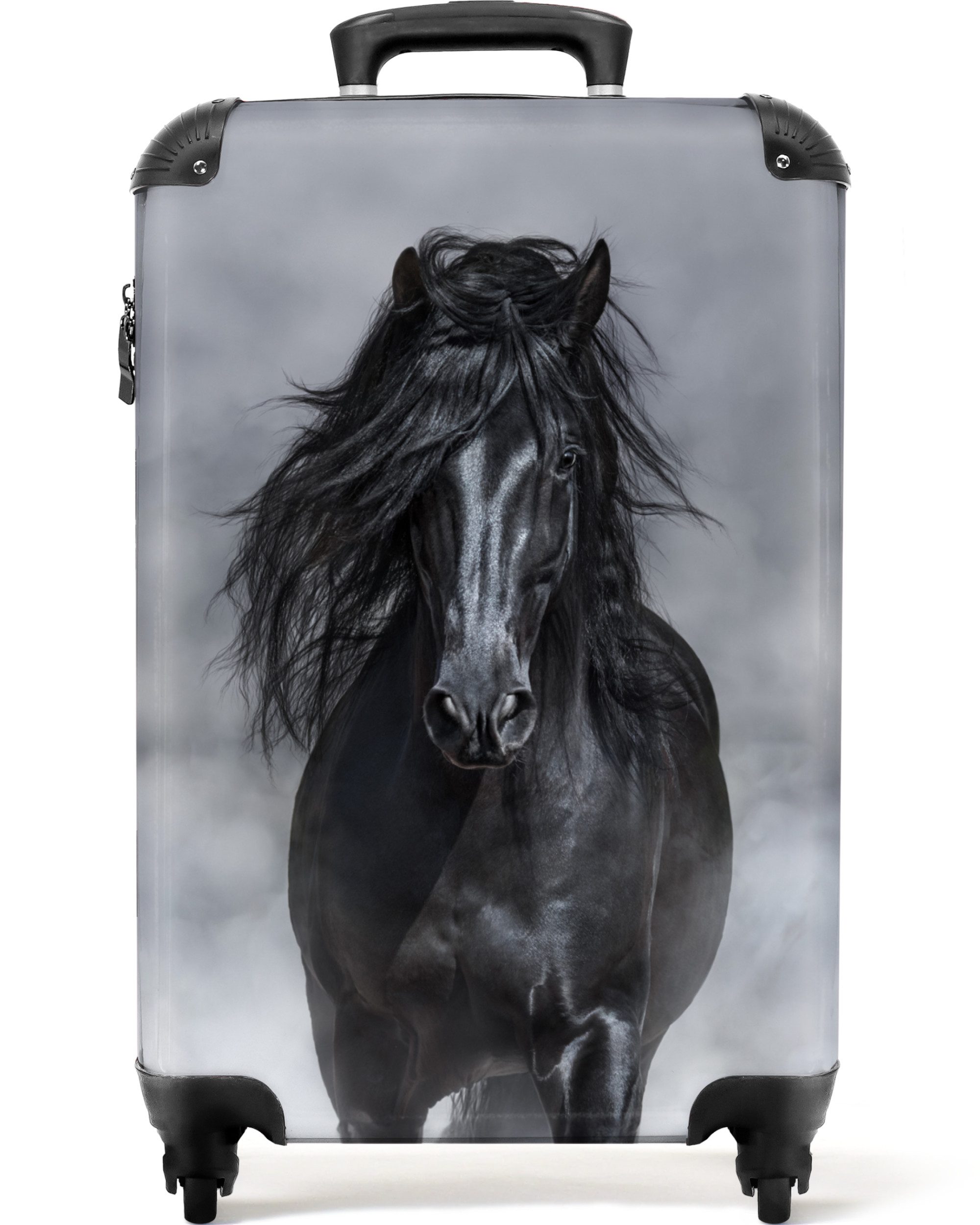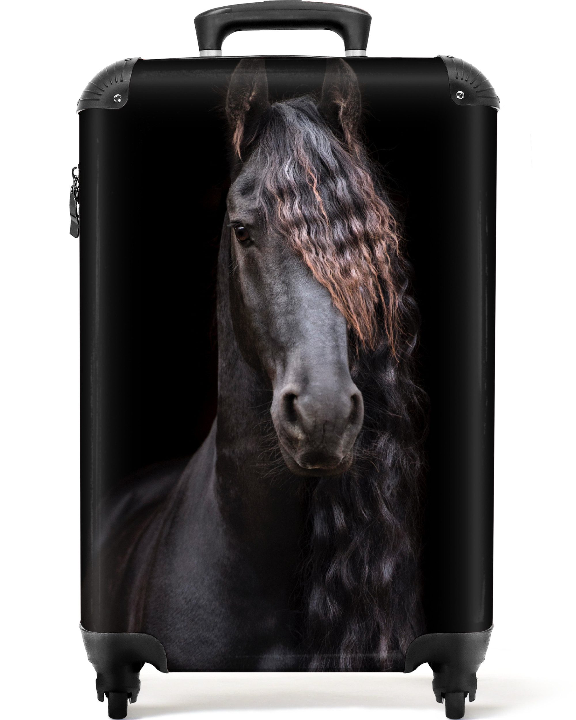 Überraschen Sie Ihr Kind mit einem einzigartigen Koffer! Der Koffer zeigt das Porträt eines schwarzen Pferdes.Optik | bedruckt |