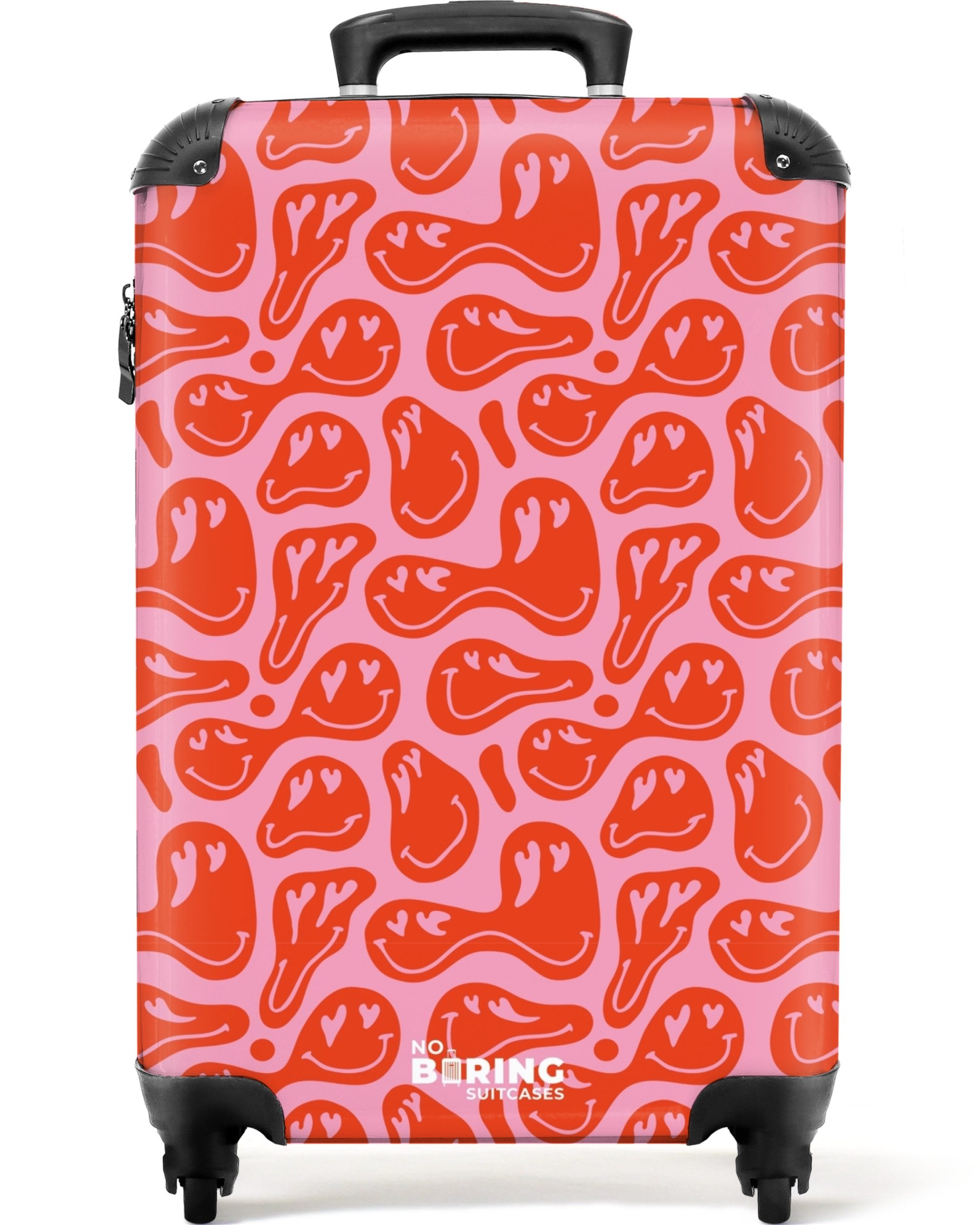Ein Muster mit roten verzerrten Smileys auf einem rosa HintergrundOptik | bedruckt |