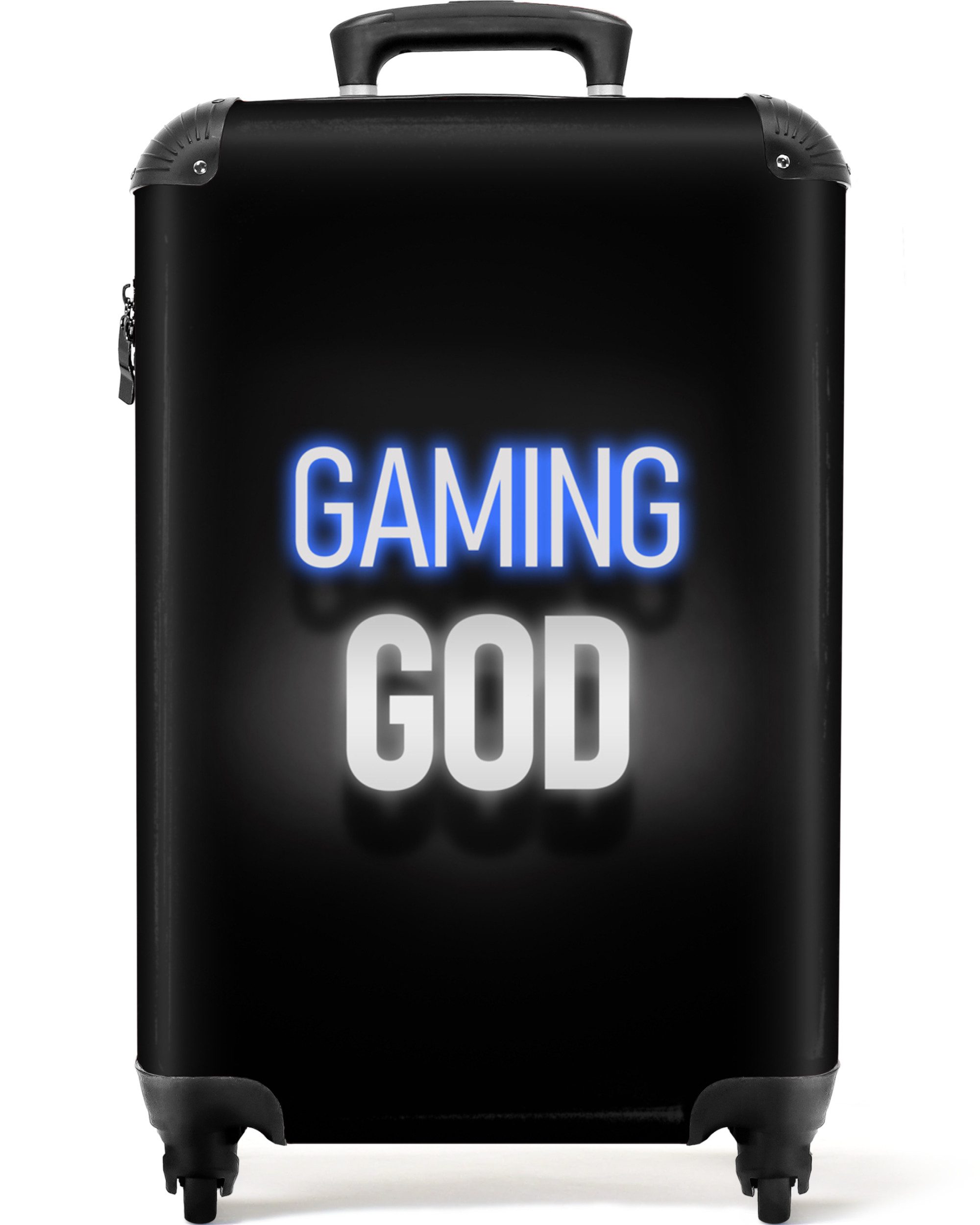 Überraschen Sie Ihr Kind mit einer einzigartigen Fototasche! Die Tasche zeigt das Zitat: "Gaming god" auf schwarzem Hintergrund.Optik | bedruckt |