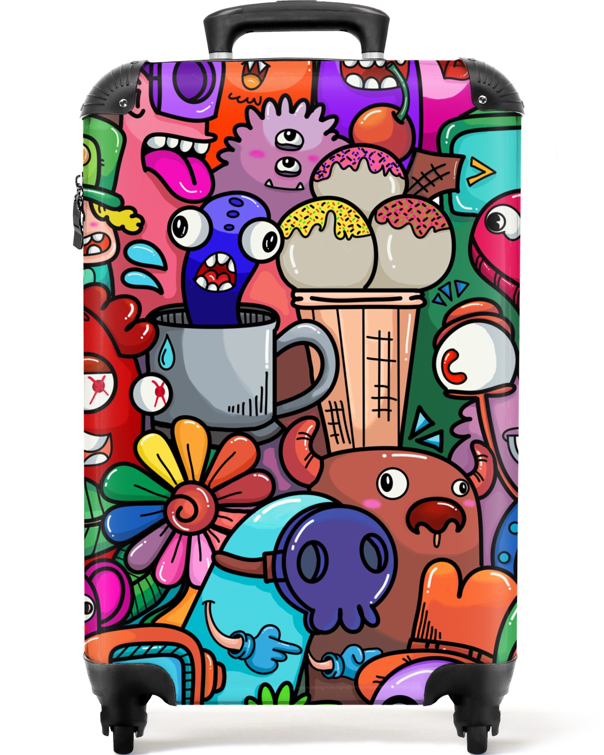 Das lustige Motiv dieses farbenfrohen Koffers wird in gestochen scharfer Premiumqualität gedruckt und stellt sicher, dass Du Deinen Koffer nie wieder an der Gepäckausgabe übersehen wirst. Zusätzlich bringt Dich das fröhlich bunte Design garantiert in Urlaubsstimmung! Deinen tristen Koffer kannst Du ab jetzt getrost zuhause lassen - dieser trendige Trolley ist das ultimative Gepäckstück und ein absoluter Hingucker für alle Reisen.