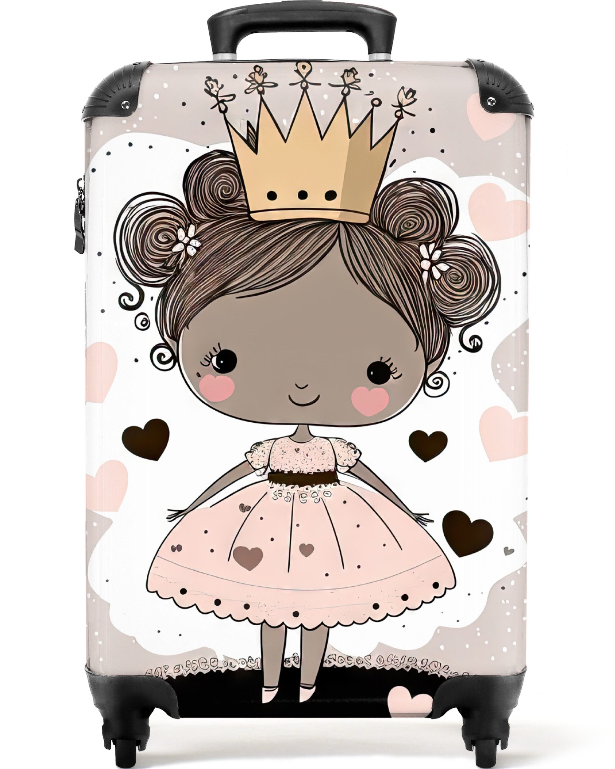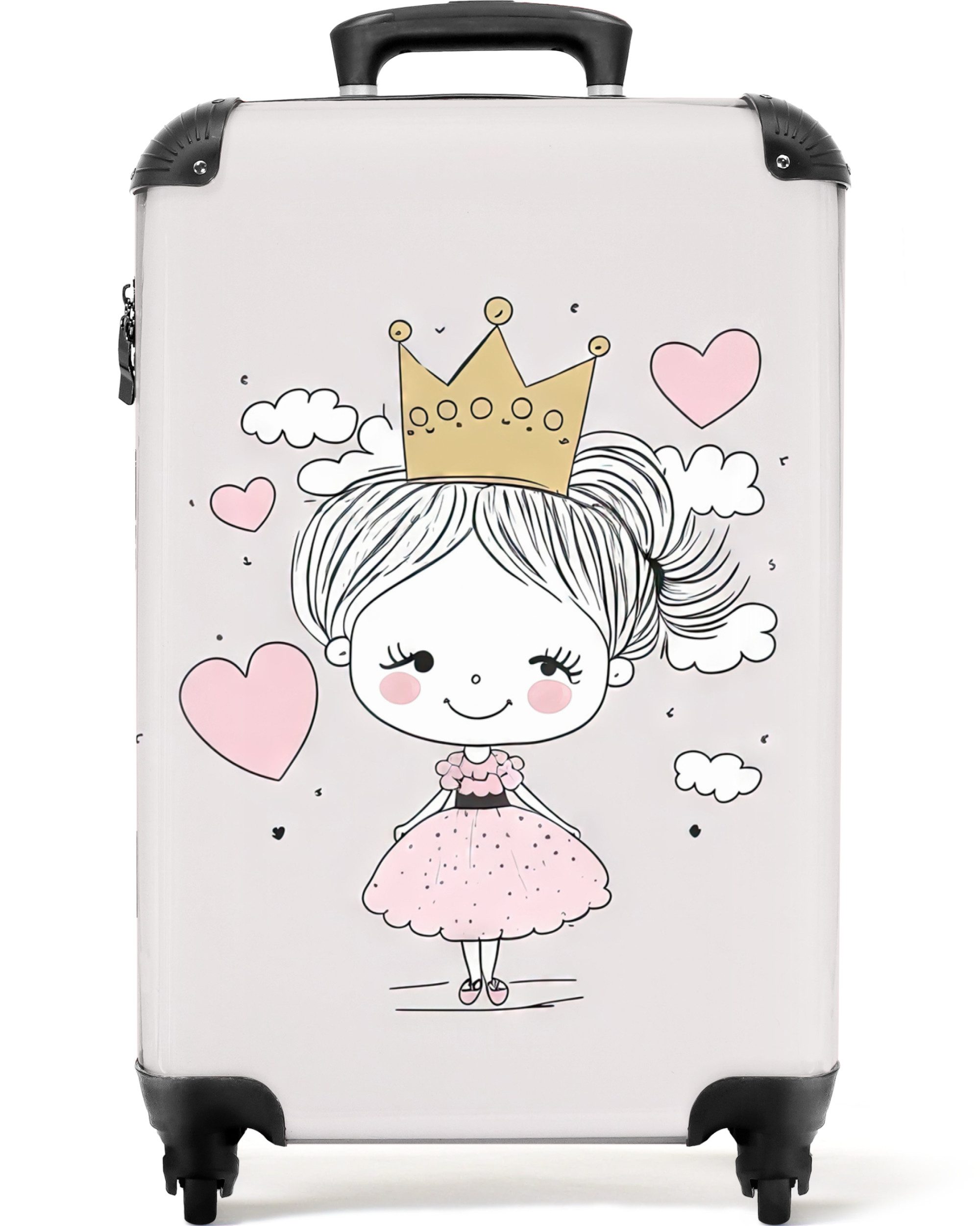 Suchen Sie nach einem weiteren einzigartigen Koffer für Ihr Kind? Dann könnte dieser Fotokoffer von NoBoringSuitcases das Richtige für Sie sein! Auf dem Koffer ist eine Prinzessin in einem rosa Kleid und mit einer goldenen Krone abgebildet. Sie ist von Herzen umgeben.Optik | bedruckt |