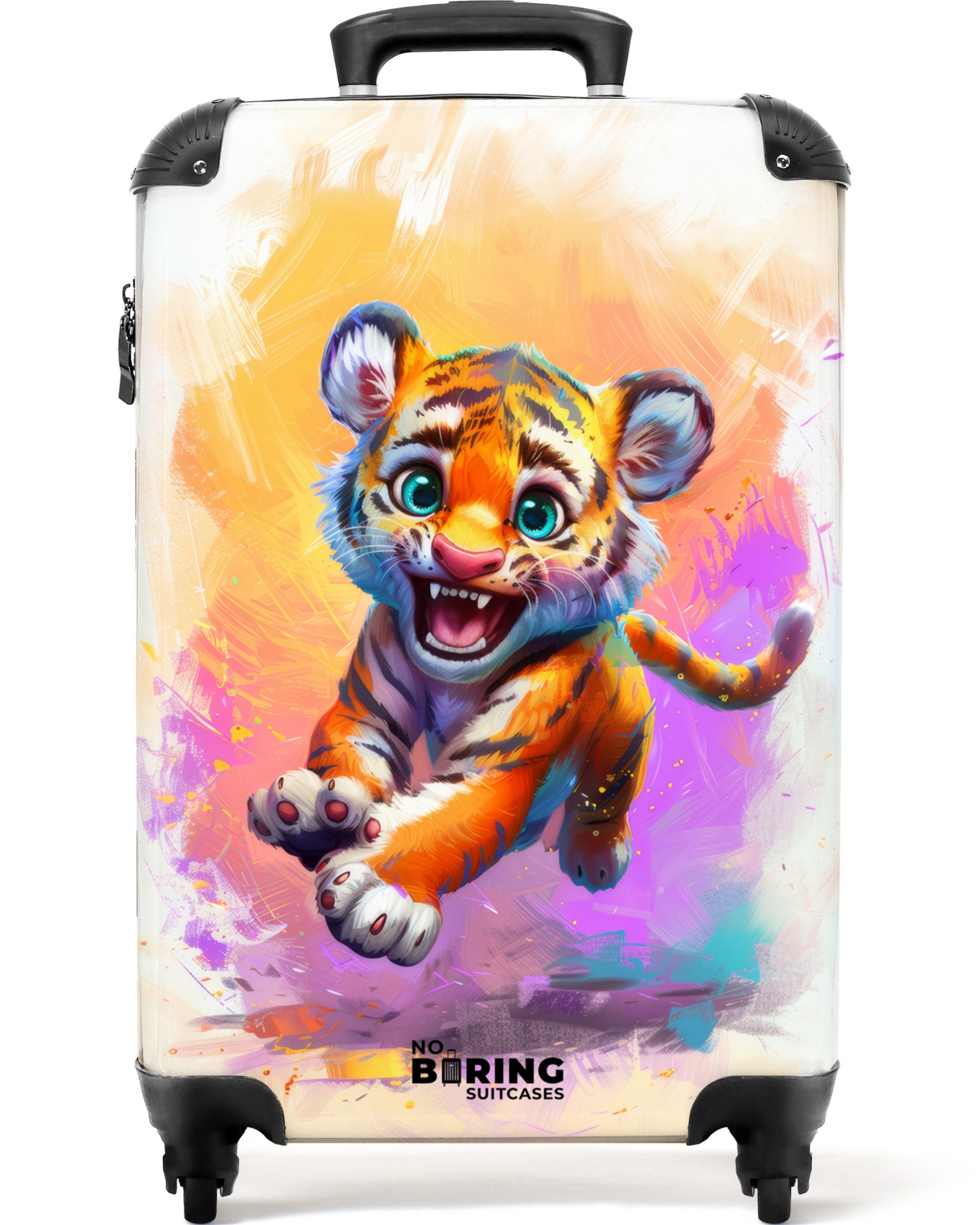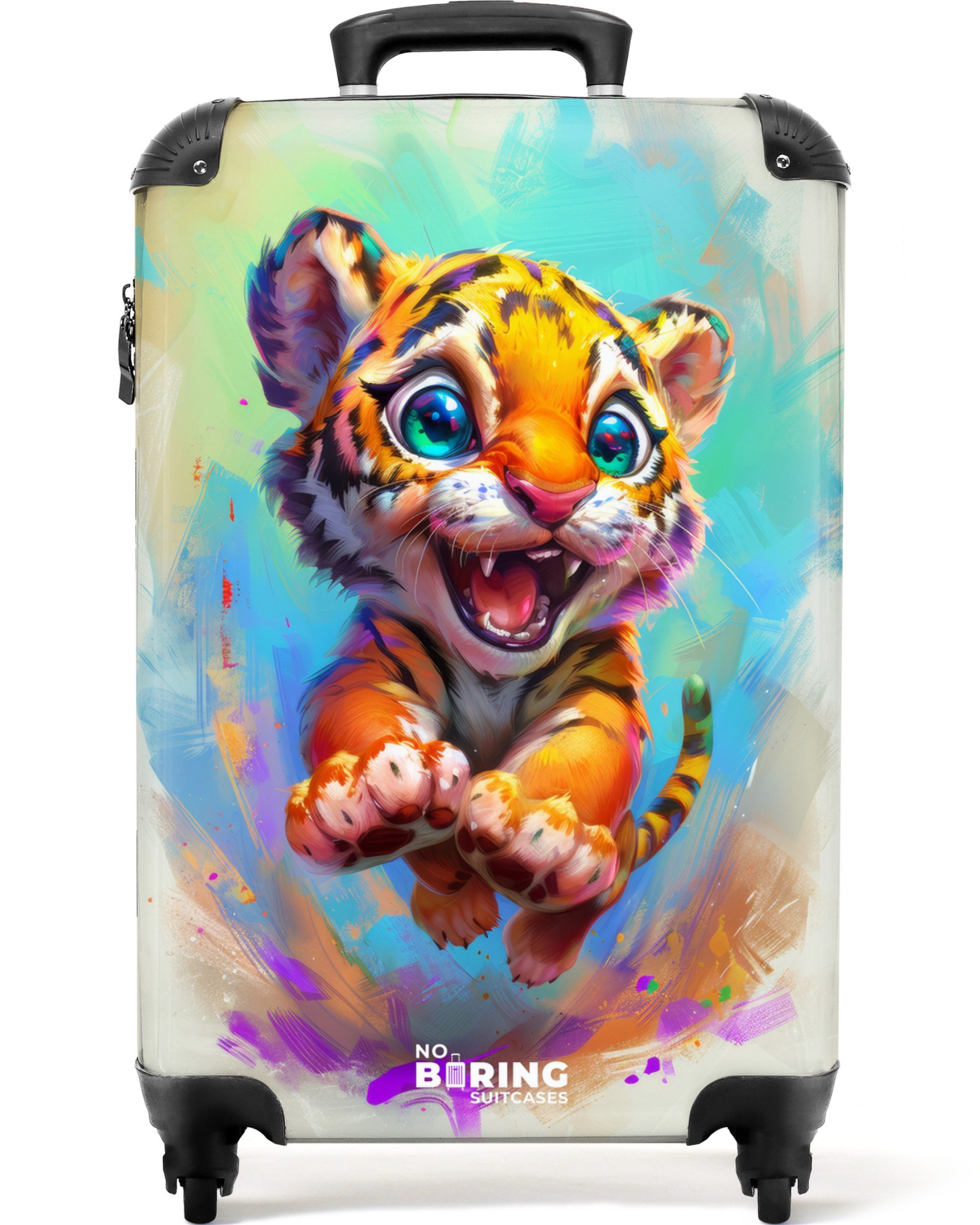 Das lustige Motiv dieses farbenfrohen Koffers wird in gestochen scharfer Premiumqualität gedruckt und stellt sicher, dass Du Deinen Koffer nie wieder an der Gepäckausgabe übersehen wirst. Zusätzlich bringt Dich das fröhlich bunte Design garantiert in Urlaubsstimmung! Deinen tristen Koffer kannst Du ab jetzt getrost zuhause lassen - dieser trendige Trolley ist das ultimative Gepäckstück und ein absoluter Hingucker für alle Reisen.