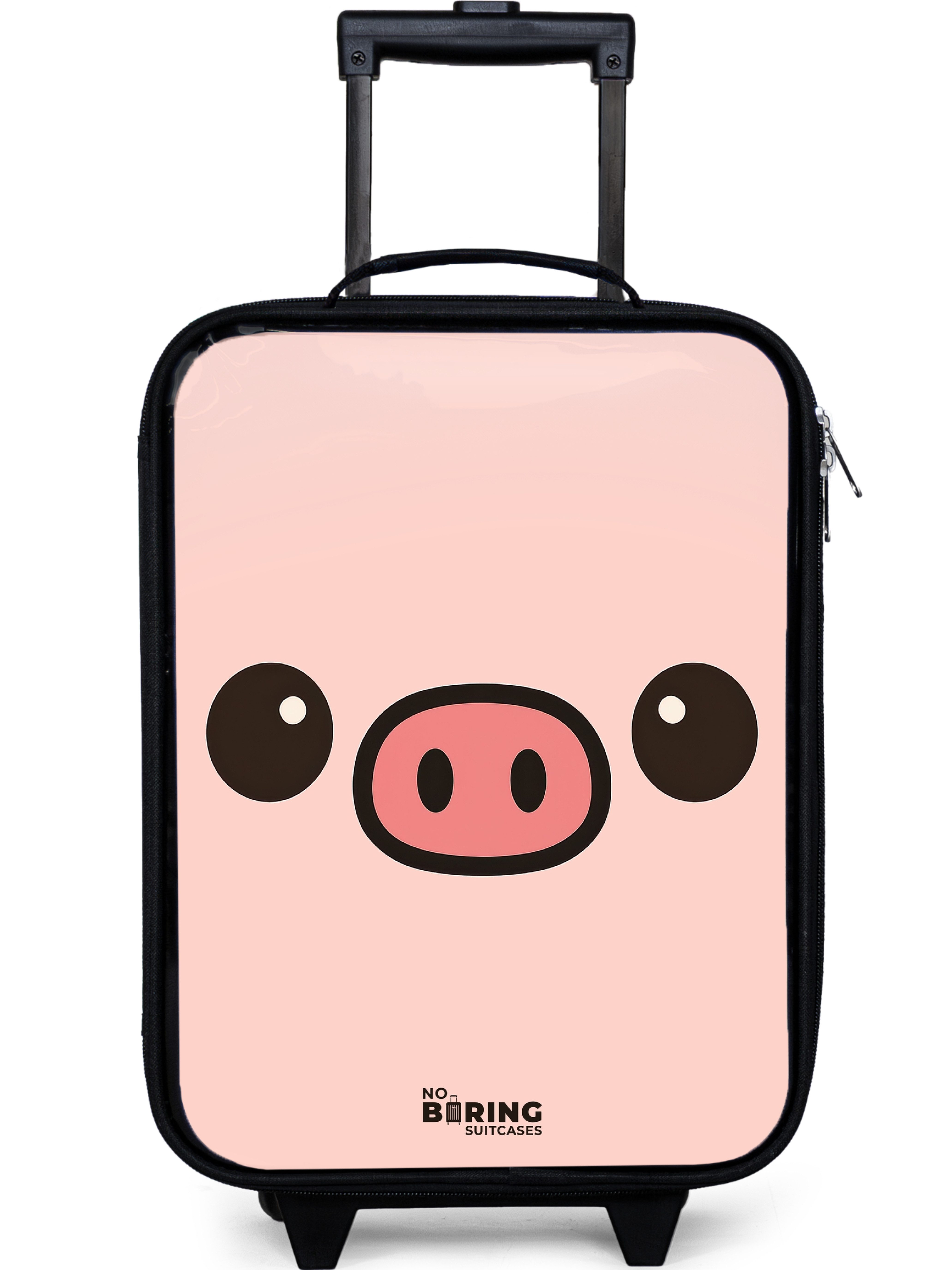 NoBoringSuitcases.com© Kinderkoffer mit leuchtende Räder - Schweinegesicht, 2 Rollen, Kinder Koffer Klein, Trolley Handgepäck, Reisekoffer