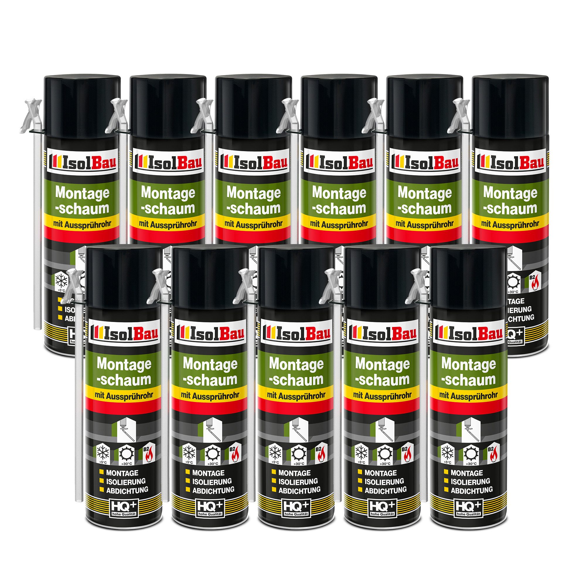 IsolBau Montageschaum ist ein einkomponentiger, feuchtigkeitshärtend, selbstexpandierender und gebrauchsfertiger Polyurethanschaum mit Applikator, zum professionellen Montieren, Abdichten, Kleben, zur Schalldämmung und zum Füllen von Spalten, Hohlräumen und Fugen. Der Schaum haftet sehr gut auf allen Untergründen. Ideal zum professionellen Abdichten und Montieren von Türen, Fenstern, Brüstungen, Treppenstufen, Trennwänden und vielen anderen Bauarbeiten. IsolBau Montageschaum ist Alterungs- und verrottungsbeständig, resistent gegen Chemikalien und Ungeziefer. Das Treibgas ist für die Ozonschicht unschädlich.