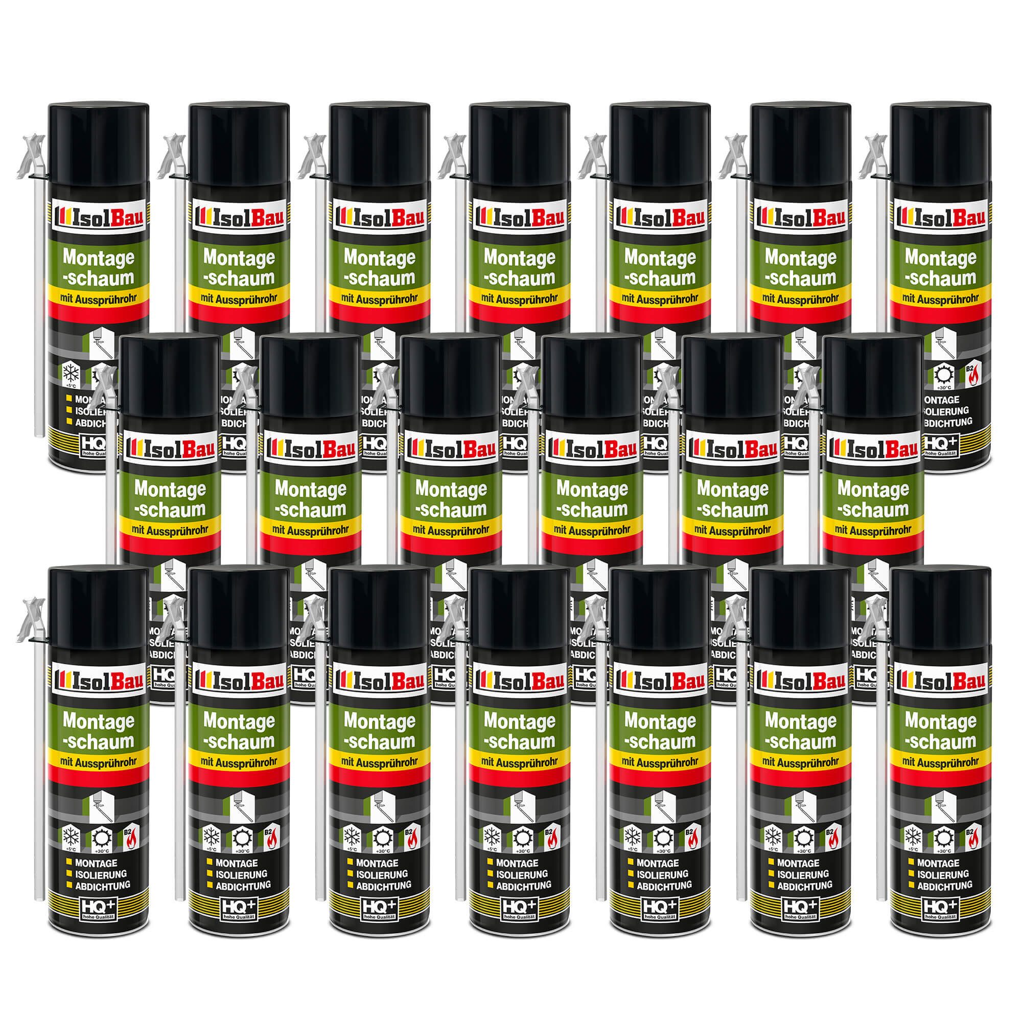 IsolBau Montageschaum ist ein einkomponentiger, feuchtigkeitshärtend, selbstexpandierender und gebrauchsfertiger Polyurethanschaum mit Applikator, zum professionellen Montieren, Abdichten, Kleben, zur Schalldämmung und zum Füllen von Spalten, Hohlräumen und Fugen. Der Schaum haftet sehr gut auf allen Untergründen. Ideal zum professionellen Abdichten und Montieren von Türen, Fenstern, Brüstungen, Treppenstufen, Trennwänden und vielen anderen Bauarbeiten. IsolBau Montageschaum ist Alterungs- und verrottungsbeständig, resistent gegen Chemikalien und Ungeziefer. Das Treibgas ist für die Ozonschicht unschädlich.