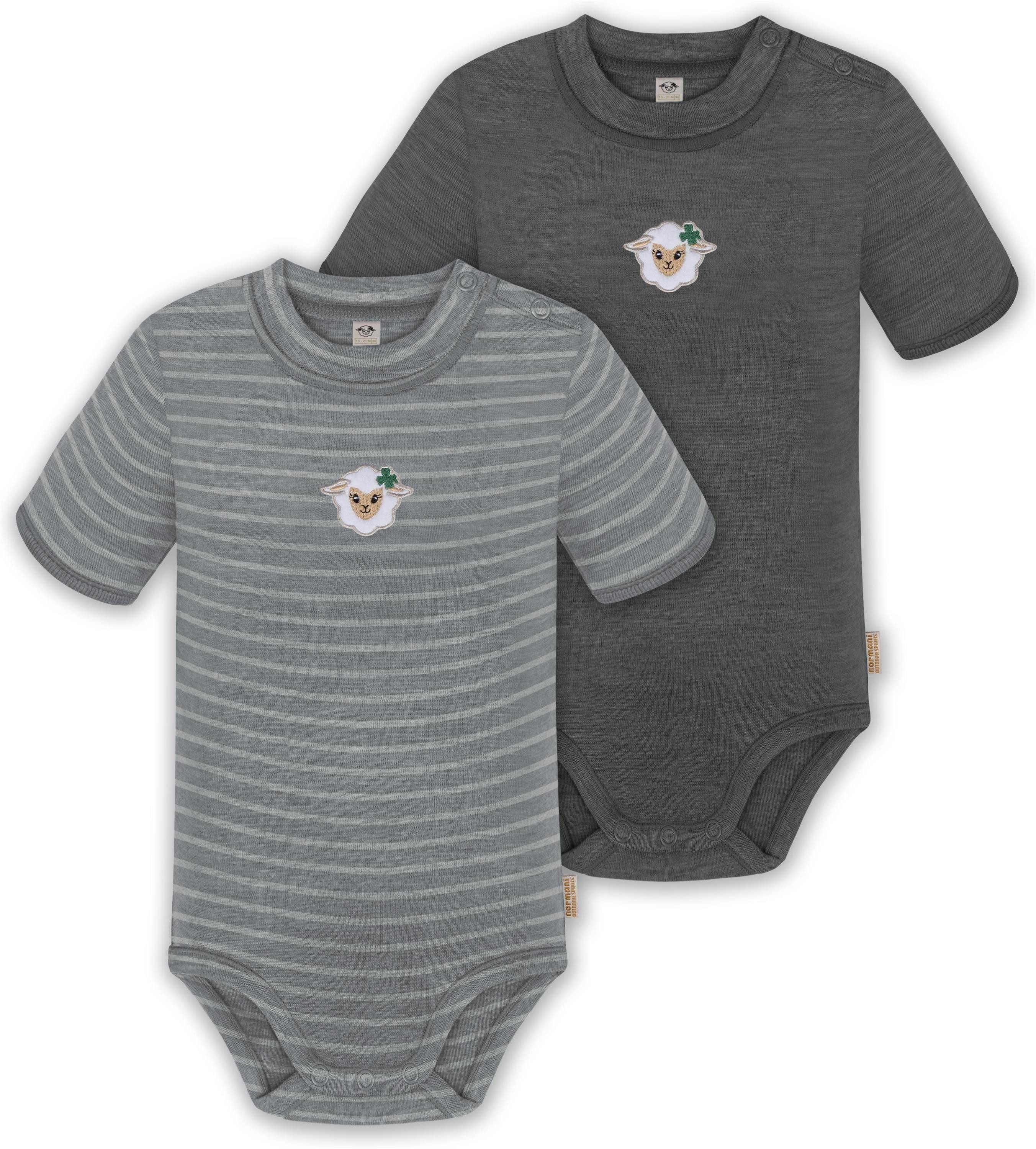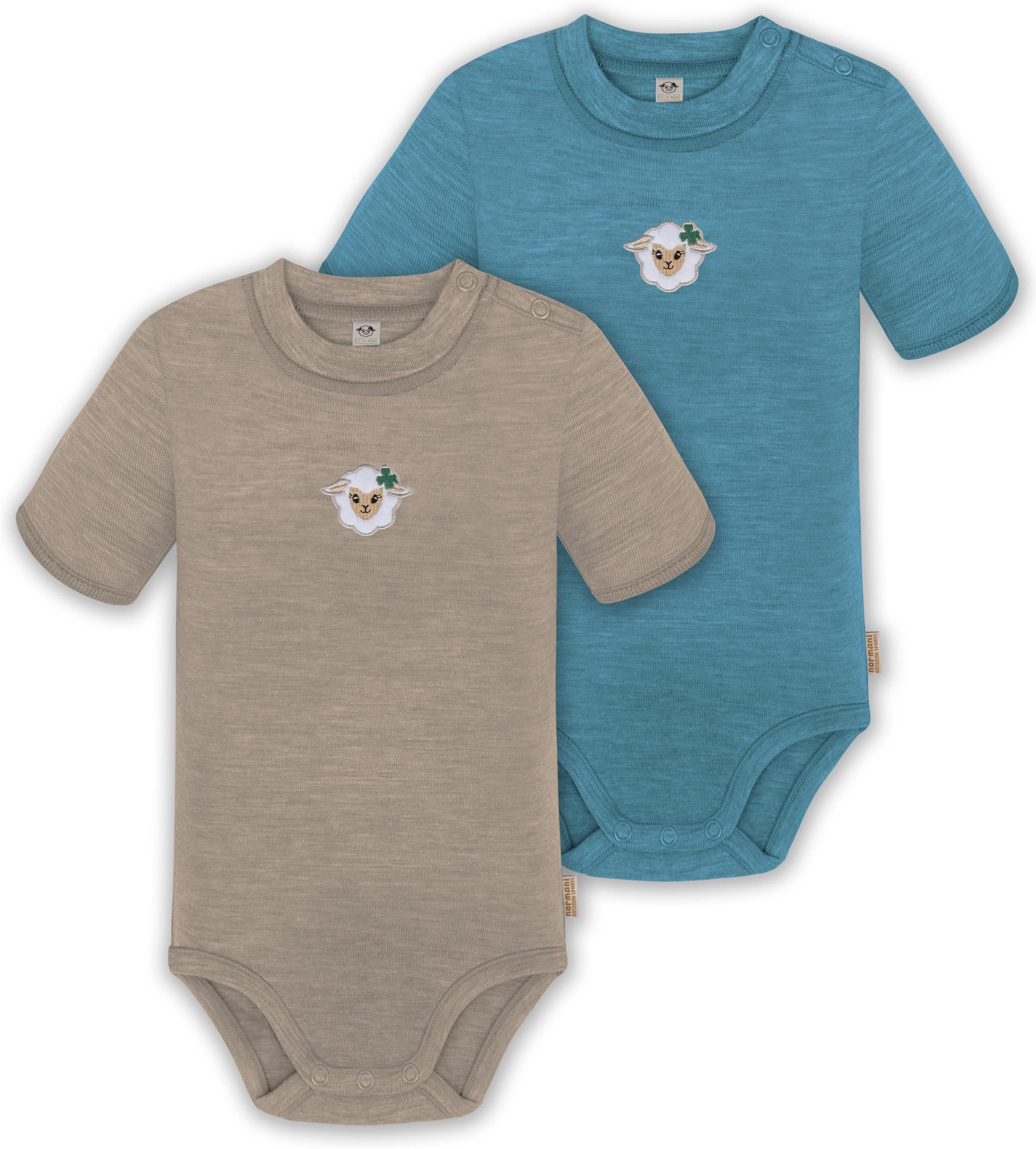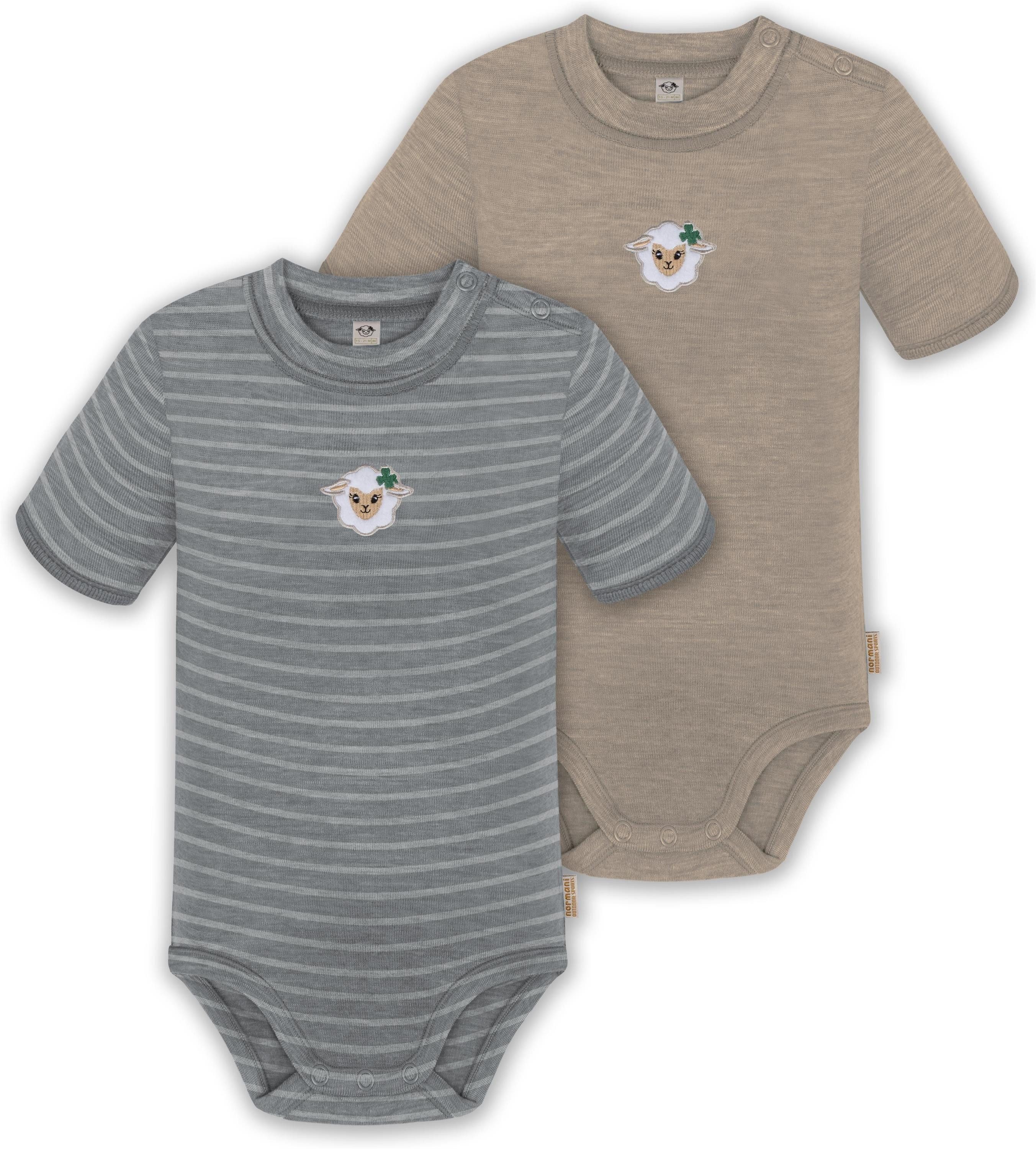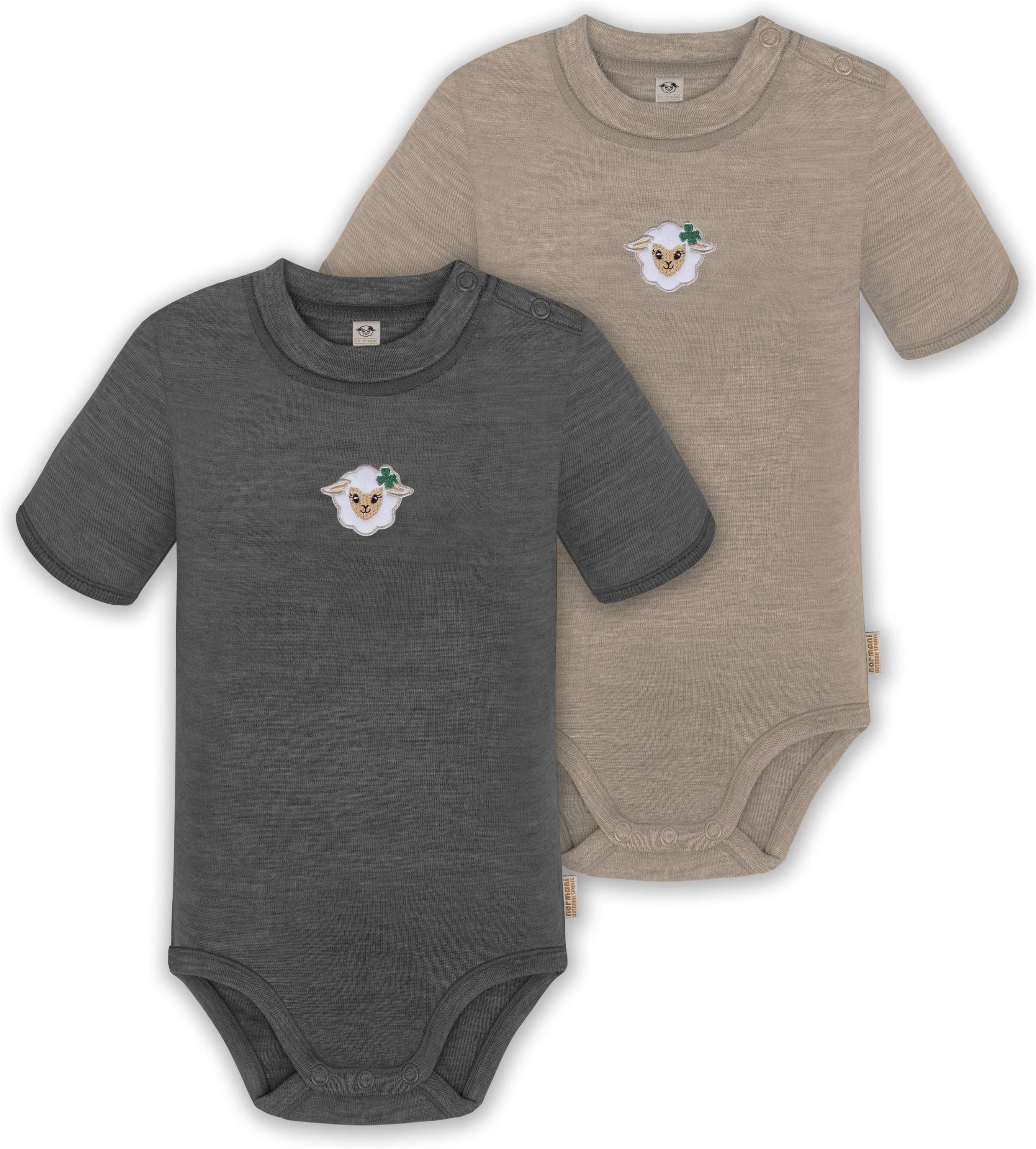 Unser Merino Kurzarm Body "Tihoi", im 2er Pack, ist mehr als nur ein einfacher Baby Body mit kurzen Ärmeln. Hinter seiner schlichten Erscheinung verbirgt sich ein Kleidungsstück, das sich perfekt für alle Wetterbedingungen eignet. Mit einer Grammatur von 200 g/m² bietet dieser Body eine optimale Wärmeisolierung, die ihn im Winter zur idealen wärmenden Schicht unter weiterer Kleidung macht. Auch im Sommer kann der Body wegen seiner natürlichen Thermoregulierung einzeln getragen werden. Die Wärmeregulierung und Atmungsaktivität der Merinowolle ermöglichen es Ihrem Baby, den Body den ganzen Tag über zu tragen – sei es beim Spielen oder beim Nickerchen. Die weiche Merinowolle ist besonders sanft zur empfindlichen Haut Ihres Babys und verursacht keine Hautirritationen. Zudem ist die Merinofaser geruchsneutralisierend, sodass der Body auch nach mehrmaligem Tragen frisch bleibt. Die Elastizität der Merinowolle sorgt für maximale Bewegungsfreiheit beim Spielen. Darüber hinaus ist der Body mit hochwertigen Marken-Druckknöpfen von YKK an den Schultern und zwischen den Beinen ausgestattet. Diese gewährleisten ein zuverlässiges Öffnen und Спрятать und erleichtern das Wickeln und Umziehen. Abgerundet wurde der Body mit einem kindgerechtem, flauschigem Schaf Stick, der als Eyecatcher dient.