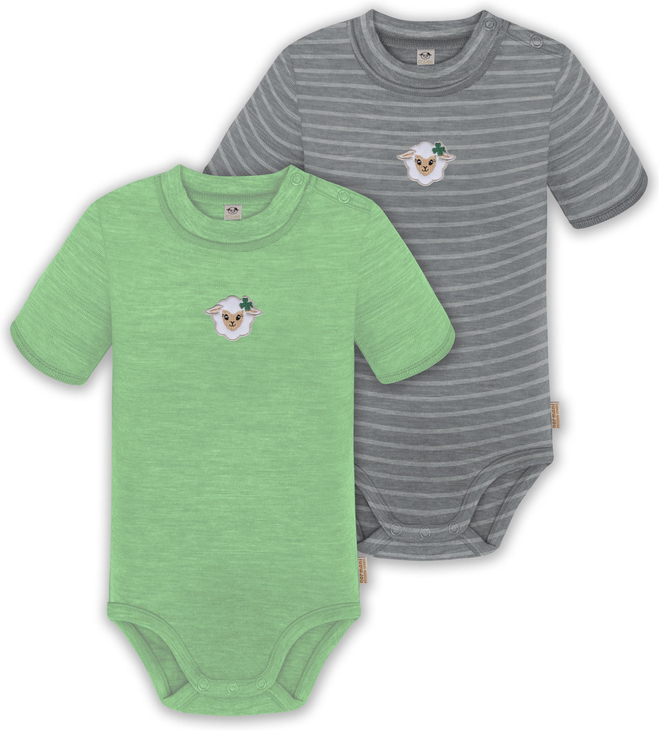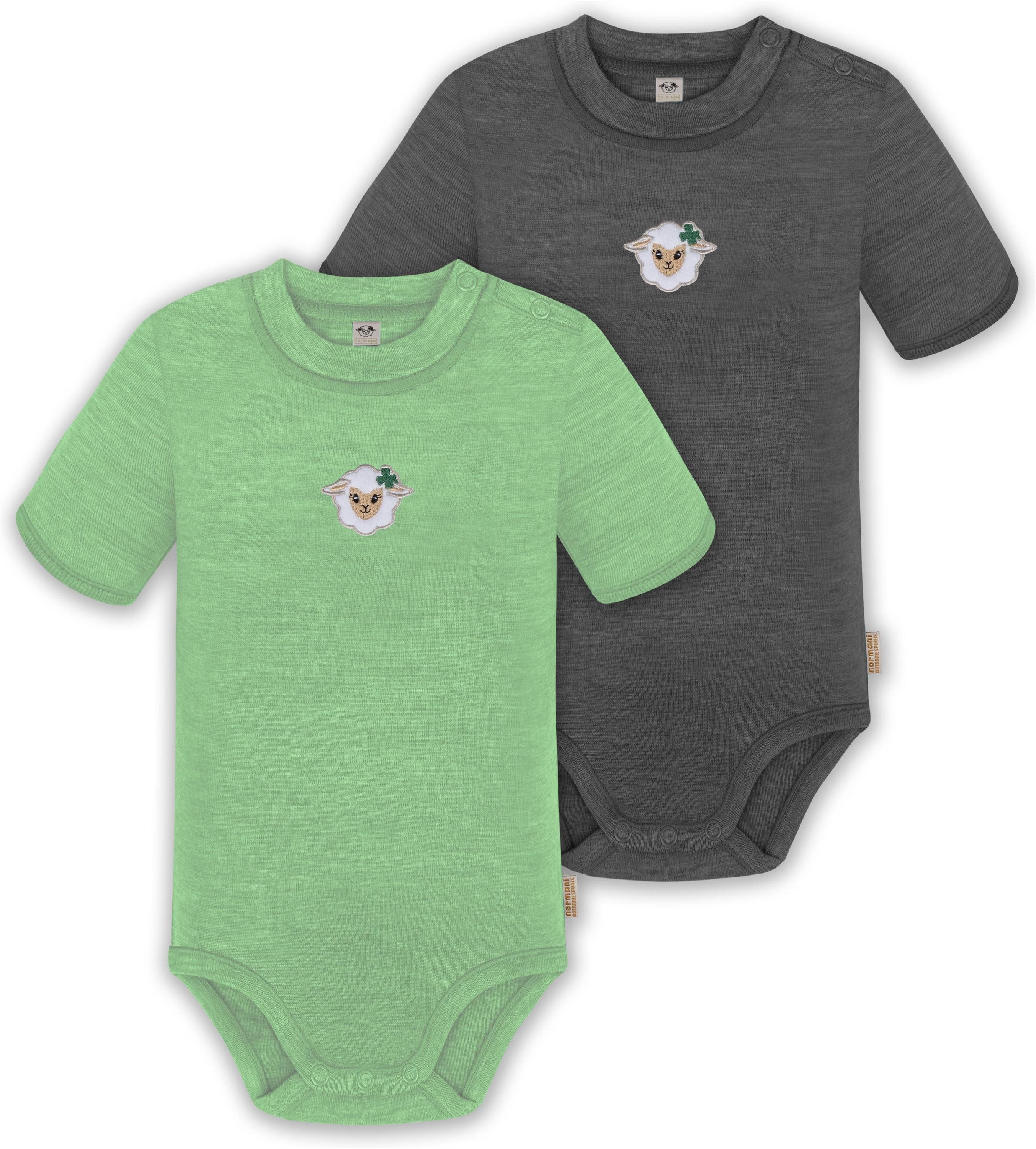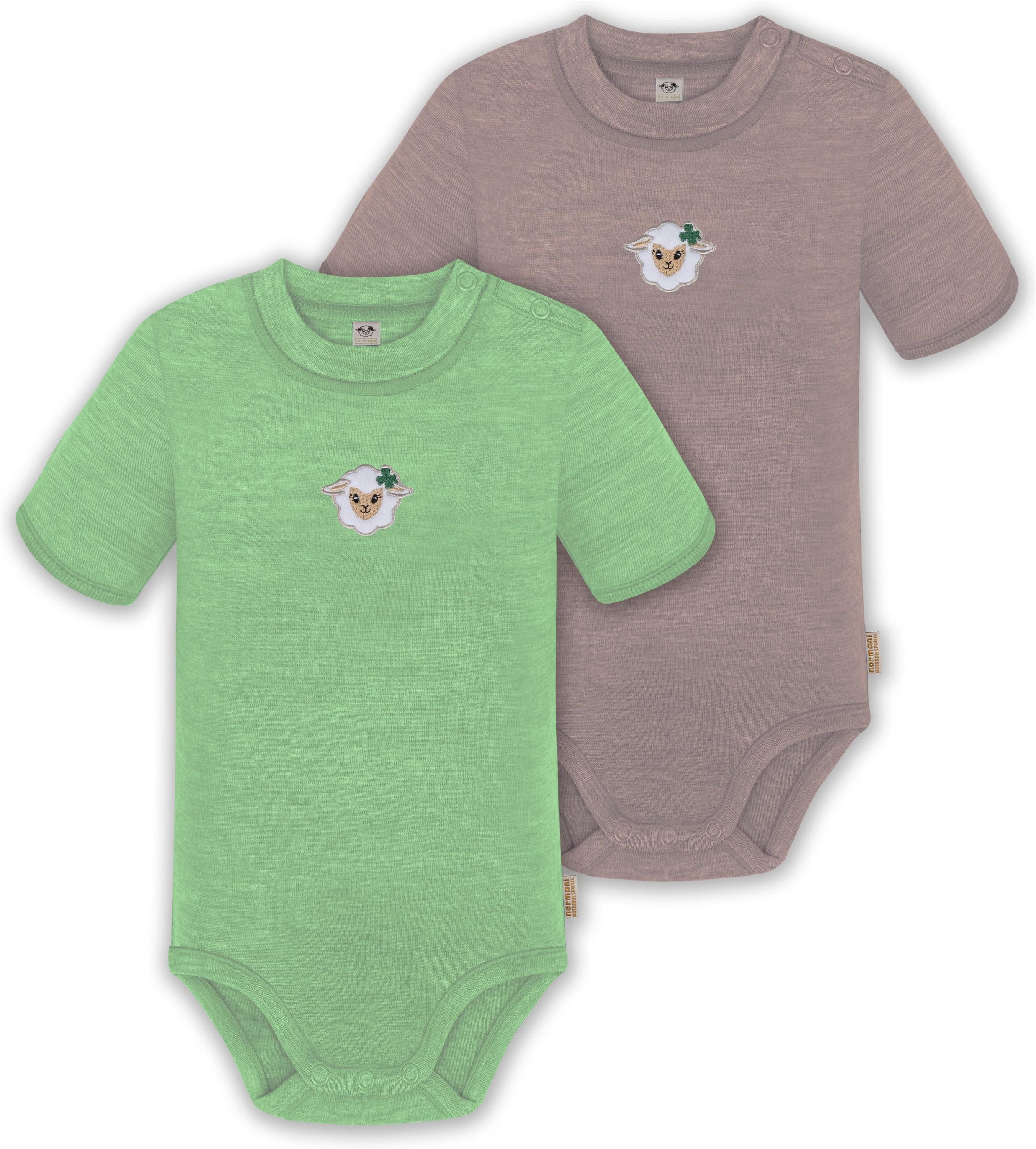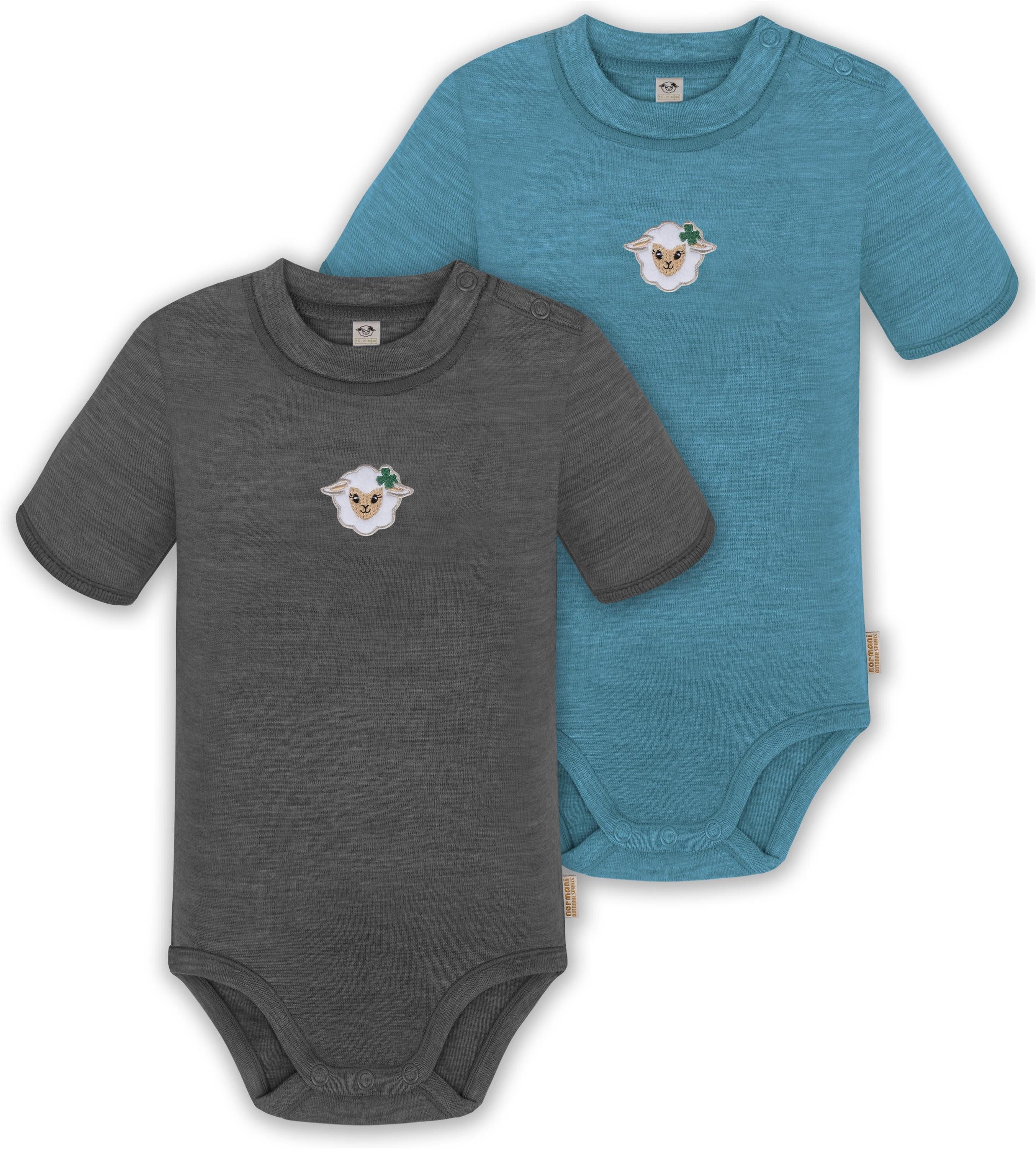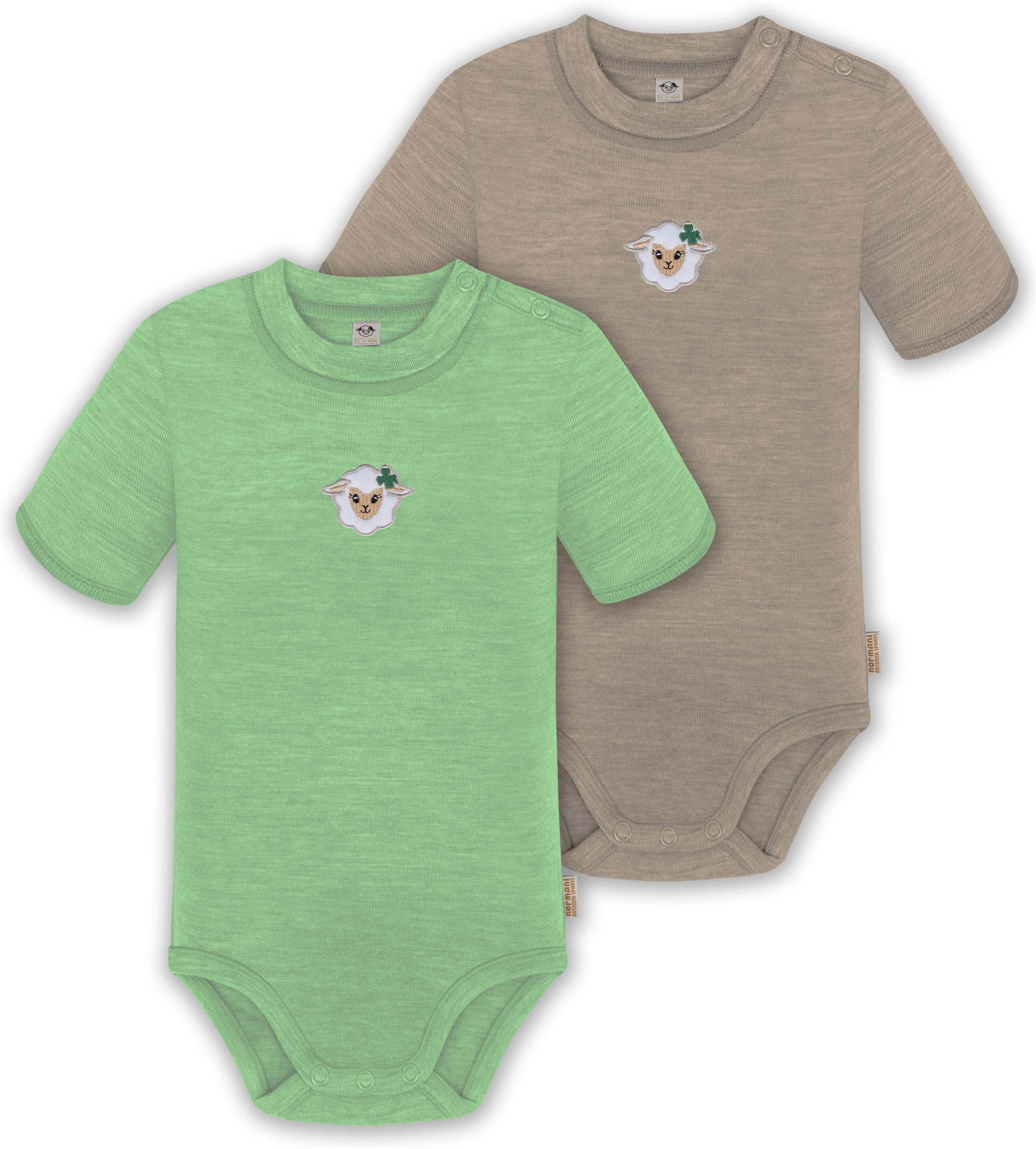 Unser Merino Kurzarm Body "Tihoi", im 2er Pack, ist mehr als nur ein einfacher Baby Body mit kurzen Ärmeln. Hinter seiner schlichten Erscheinung verbirgt sich ein Kleidungsstück, das sich perfekt für alle Wetterbedingungen eignet. Mit einer Grammatur von 200 g/m² bietet dieser Body eine optimale Wärmeisolierung, die ihn im Winter zur idealen wärmenden Schicht unter weiterer Kleidung macht. Auch im Sommer kann der Body wegen seiner natürlichen Thermoregulierung einzeln getragen werden. Die Wärmeregulierung und Atmungsaktivität der Merinowolle ermöglichen es Ihrem Baby, den Body den ganzen Tag über zu tragen – sei es beim Spielen oder beim Nickerchen. Die weiche Merinowolle ist besonders sanft zur empfindlichen Haut Ihres Babys und verursacht keine Hautirritationen. Zudem ist die Merinofaser geruchsneutralisierend, sodass der Body auch nach mehrmaligem Tragen frisch bleibt. Die Elastizität der Merinowolle sorgt für maximale Bewegungsfreiheit beim Spielen. Darüber hinaus ist der Body mit hochwertigen Marken-Druckknöpfen von YKK an den Schultern und zwischen den Beinen ausgestattet. Diese gewährleisten ein zuverlässiges Öffnen und Спрятать und erleichtern das Wickeln und Umziehen. Abgerundet wurde der Body mit einem kindgerechtem, flauschigem Schaf Stick, der als Eyecatcher dient.