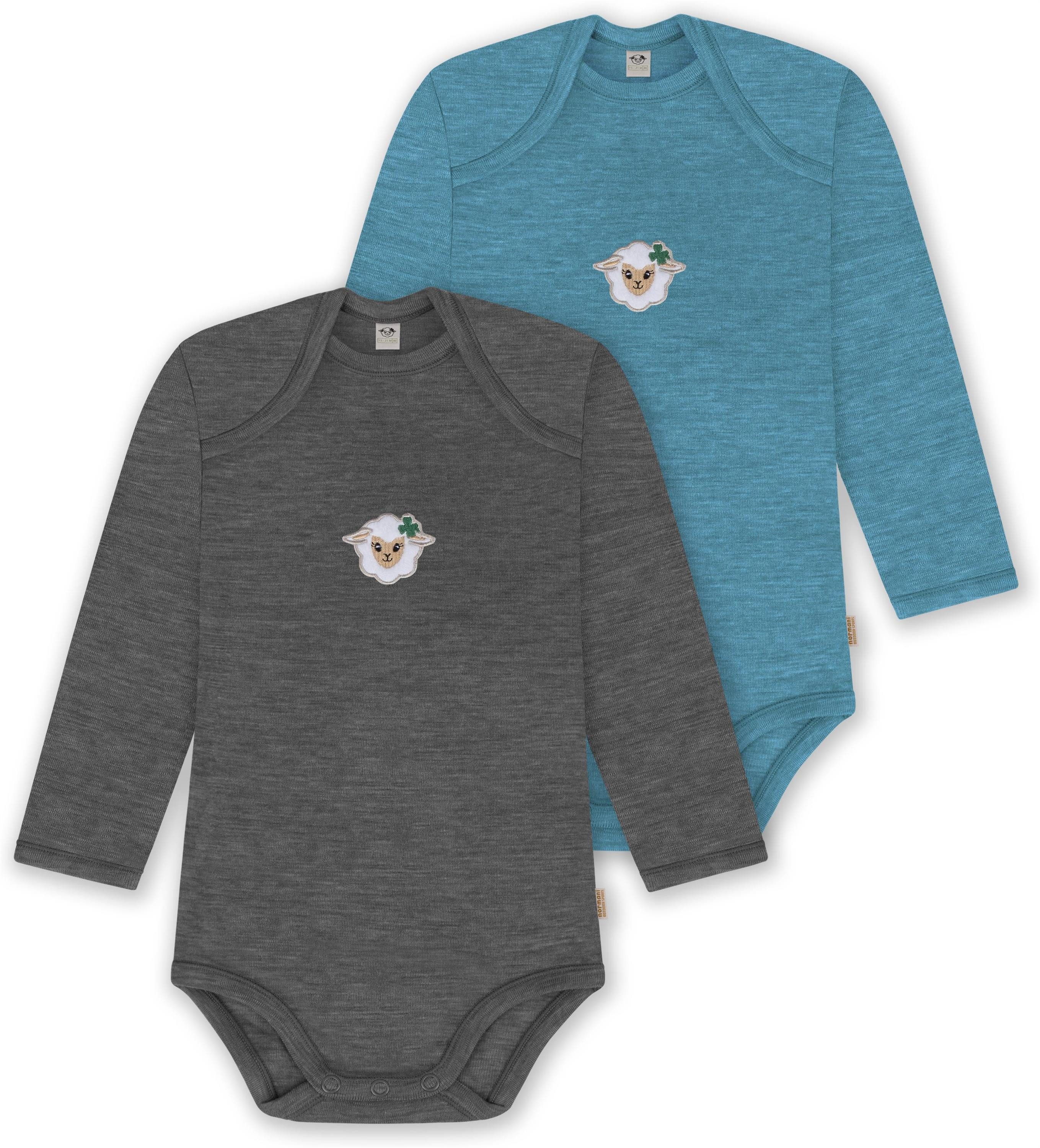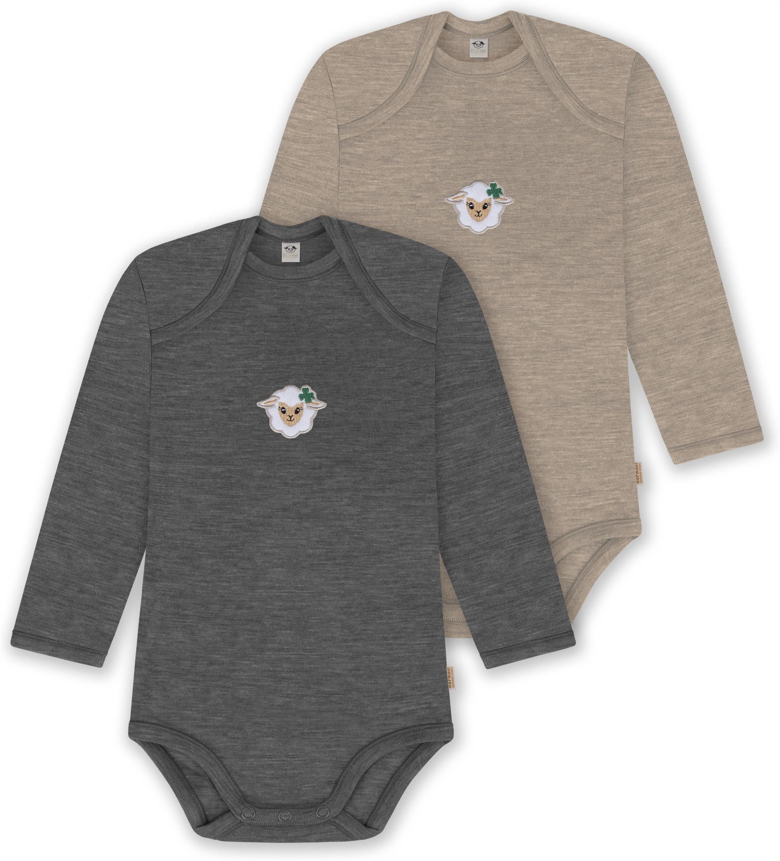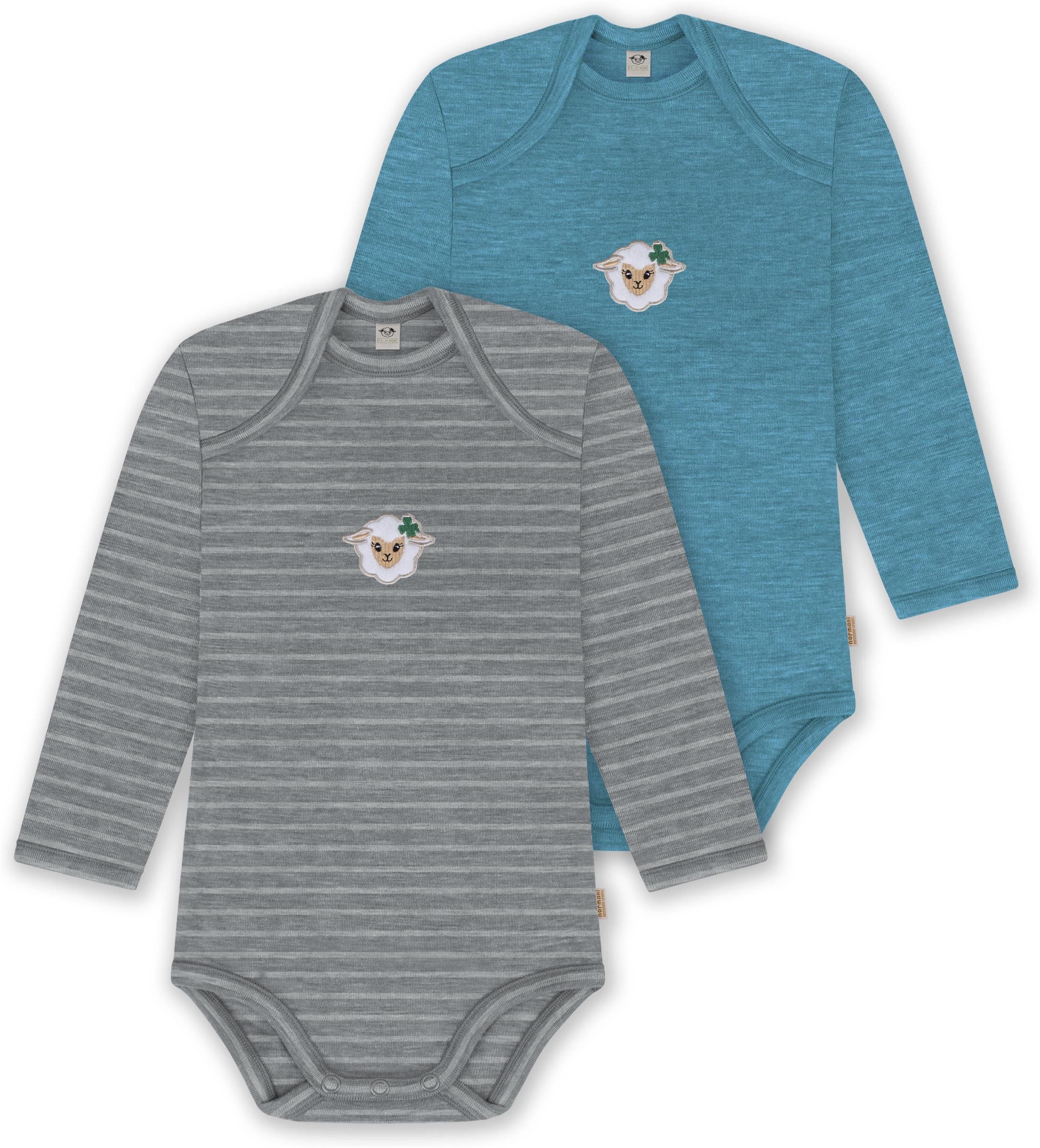 Unser Merino Langarm Body „Auckland", im 2er Pack, ist mehr als nur ein einfacher Baby Body mit langen Ärmeln und amerikanischem Ausschnitt. Hinter seiner schlichten Erscheinung verbirgt sich ein Kleidungsstück, das sich perfekt für alle Wetterbedingungen eignet. Mit einer Grammatur von 200 g/m² bietet dieser Body eine optimale Wärmeisolierung, die ihn im Winter zur idealen wärmenden Schicht unter weiterer Kleidung macht. Auch im Sommer kann der Body wegen seiner natürlichen Thermoregulierung einzeln getragen werden. Die Wärmeregulierung und Atmungsaktivität der Merinowolle ermöglichen es Ihrem Baby, den Body den ganzen Tag über zu tragen – sei es beim Spielen oder beim Nickerchen. Die weiche Merinowolle ist besonders sanft zur empfindlichen Haut Ihres Babys und verursacht keine Hautirritationen. Zudem ist die Merinofaser geruchsneutralisierend, sodass der Body auch nach mehrmaligem Tragen frisch bleibt. Die Elastizität der Merinowolle und der amerikanische Ausschnitt sorgen für maximale Bewegungsfreiheit beim Spielen und Umziehen. Впередhin ist der Body mit Marken-Druckknöpfen von YKK zwischen den Beinen ausgestattet. Diese ermöglichen ein zuverlässiges Öffnen und Спрятать und erleichtern das Wickeln. Abgerundet wurde der Body mit einem kindgerechtem, flauschigem Schaf Stick, der als Eyecatcher dient.