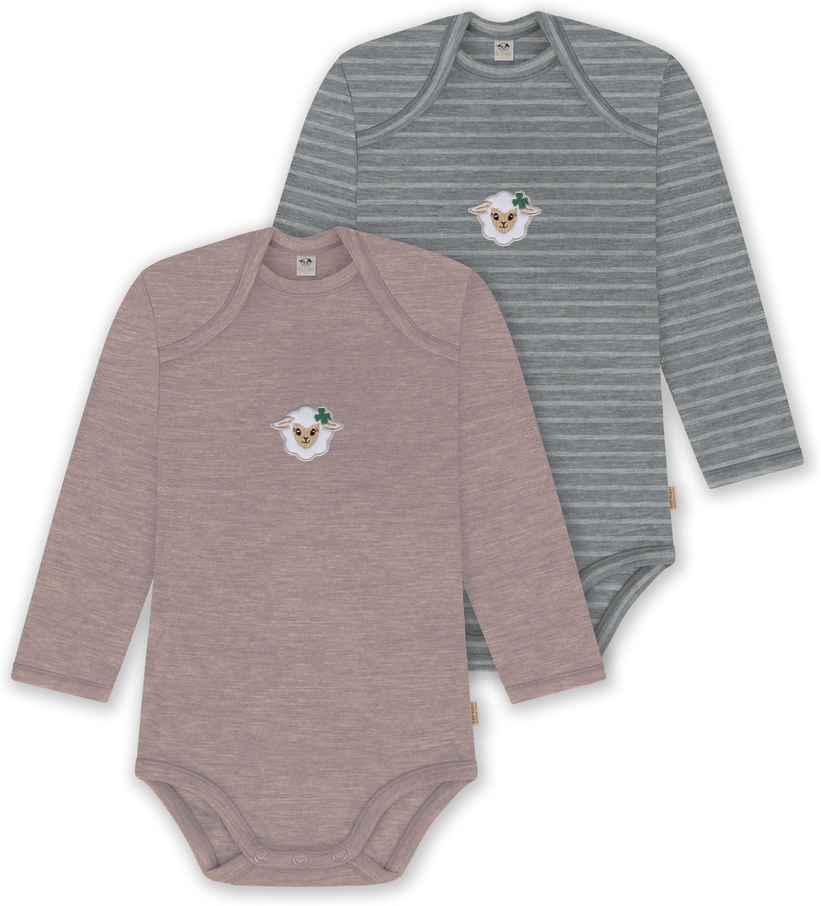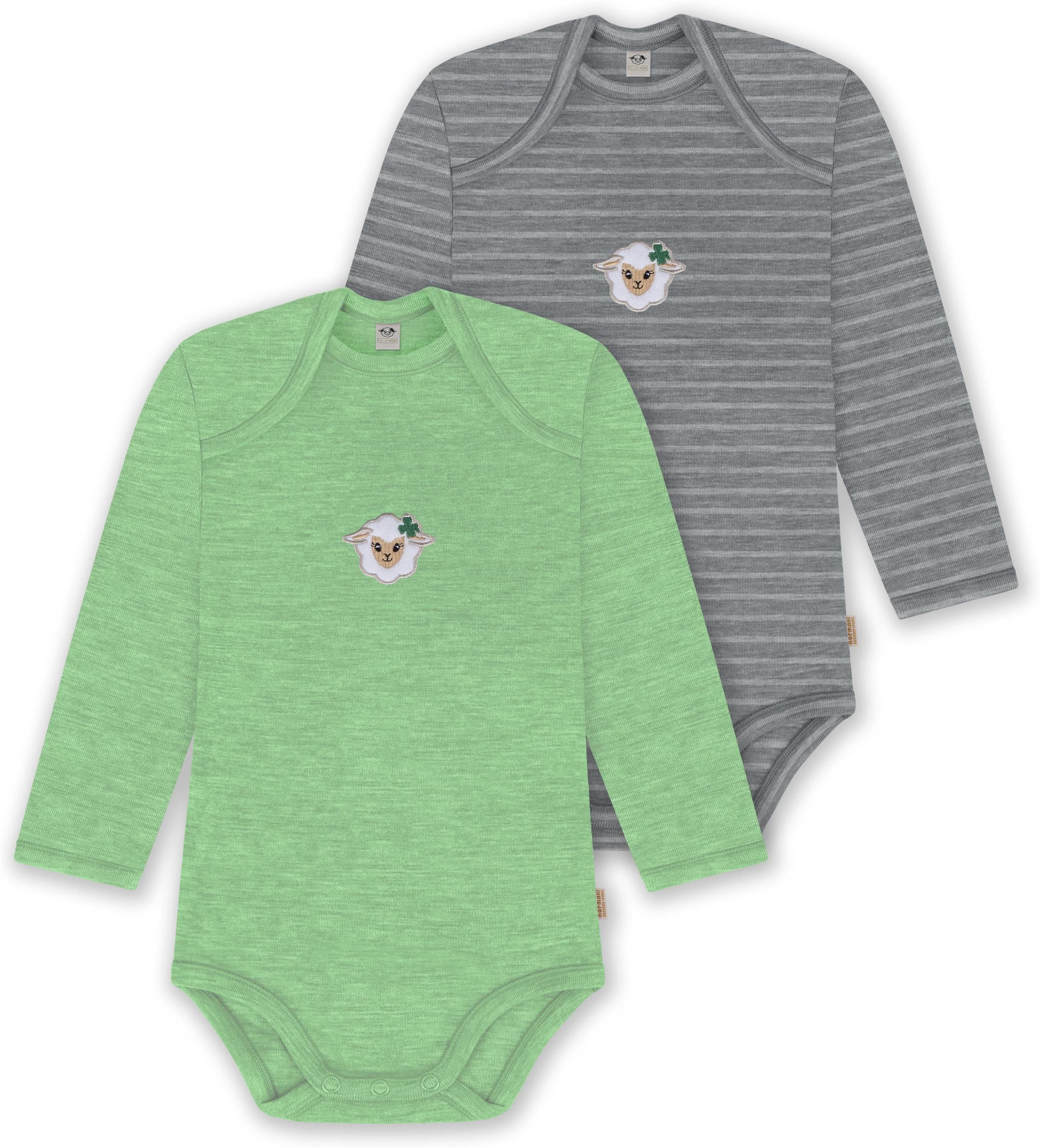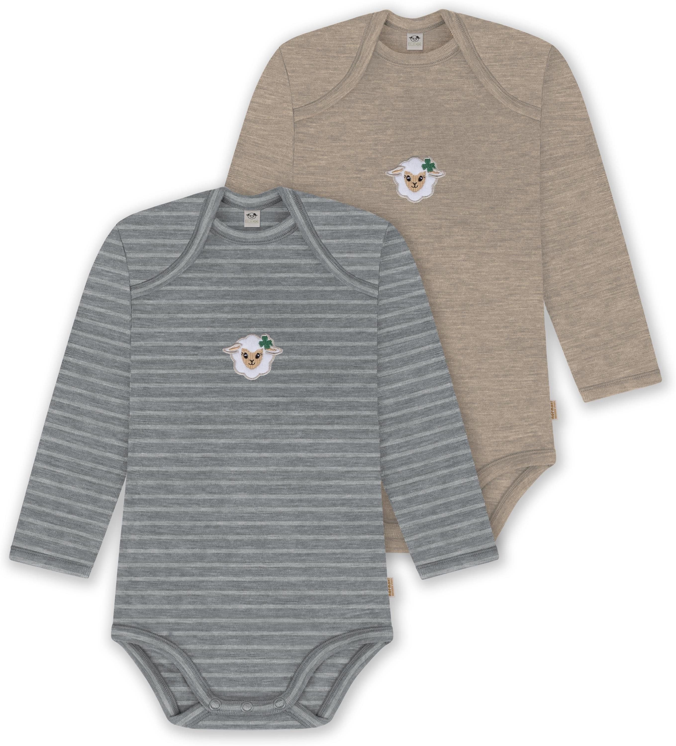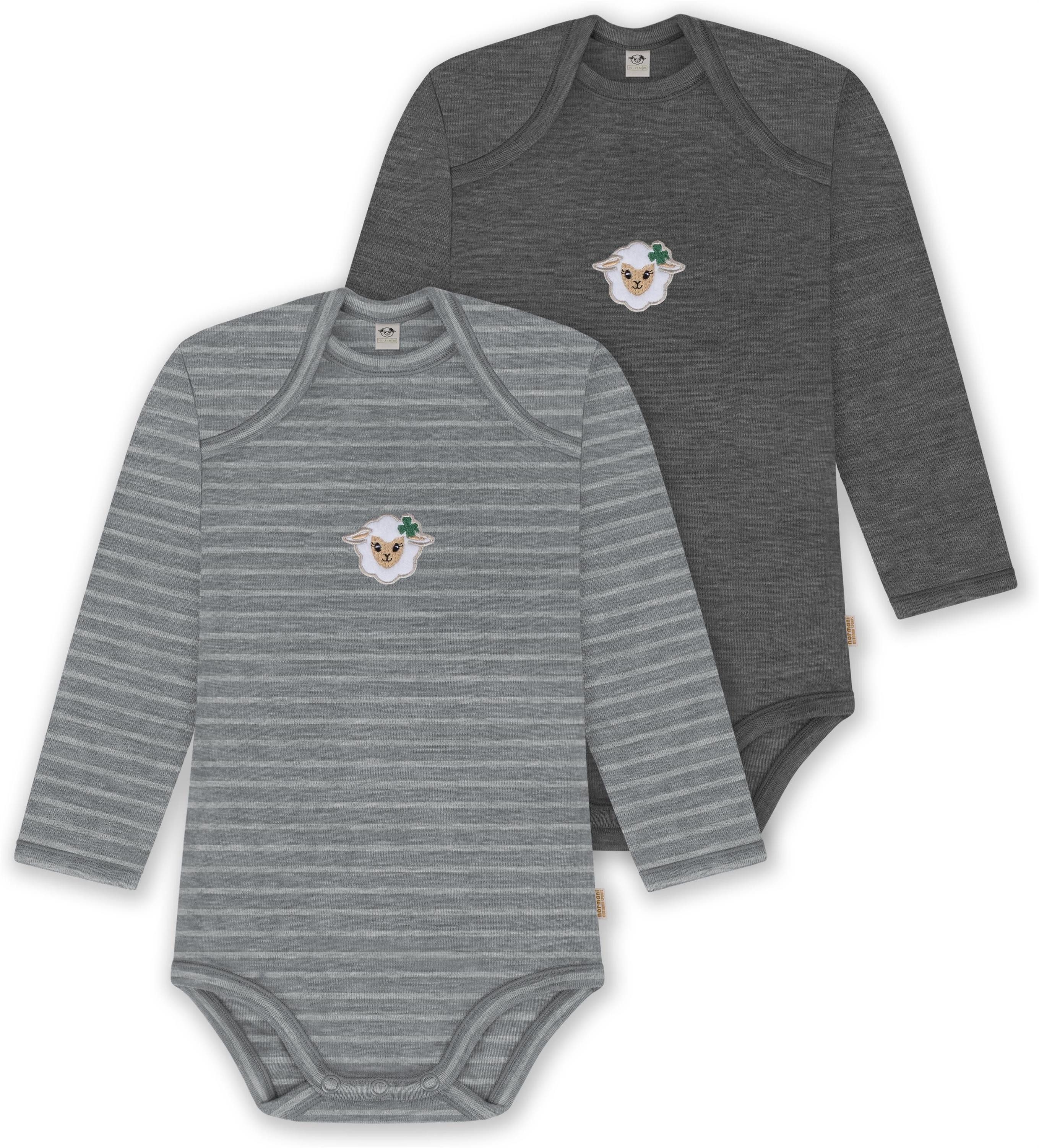 Unser Merino Langarm Body „Auckland", im 2er Pack, ist mehr als nur ein einfacher Baby Body mit langen Ärmeln und amerikanischem Ausschnitt. Hinter seiner schlichten Erscheinung verbirgt sich ein Kleidungsstück, das sich perfekt für alle Wetterbedingungen eignet. Mit einer Grammatur von 200 g/m² bietet dieser Body eine optimale Wärmeisolierung, die ihn im Winter zur idealen wärmenden Schicht unter weiterer Kleidung macht. Auch im Sommer kann der Body wegen seiner natürlichen Thermoregulierung einzeln getragen werden. Die Wärmeregulierung und Atmungsaktivität der Merinowolle ermöglichen es Ihrem Baby, den Body den ganzen Tag über zu tragen – sei es beim Spielen oder beim Nickerchen. Die weiche Merinowolle ist besonders sanft zur empfindlichen Haut Ihres Babys und verursacht keine Hautirritationen. Zudem ist die Merinofaser geruchsneutralisierend, sodass der Body auch nach mehrmaligem Tragen frisch bleibt. Die Elastizität der Merinowolle und der amerikanische Ausschnitt sorgen für maximale Bewegungsfreiheit beim Spielen und Umziehen. Впередhin ist der Body mit Marken-Druckknöpfen von YKK zwischen den Beinen ausgestattet. Diese ermöglichen ein zuverlässiges Öffnen und Спрятать und erleichtern das Wickeln. Abgerundet wurde der Body mit einem kindgerechtem, flauschigem Schaf Stick, der als Eyecatcher dient.