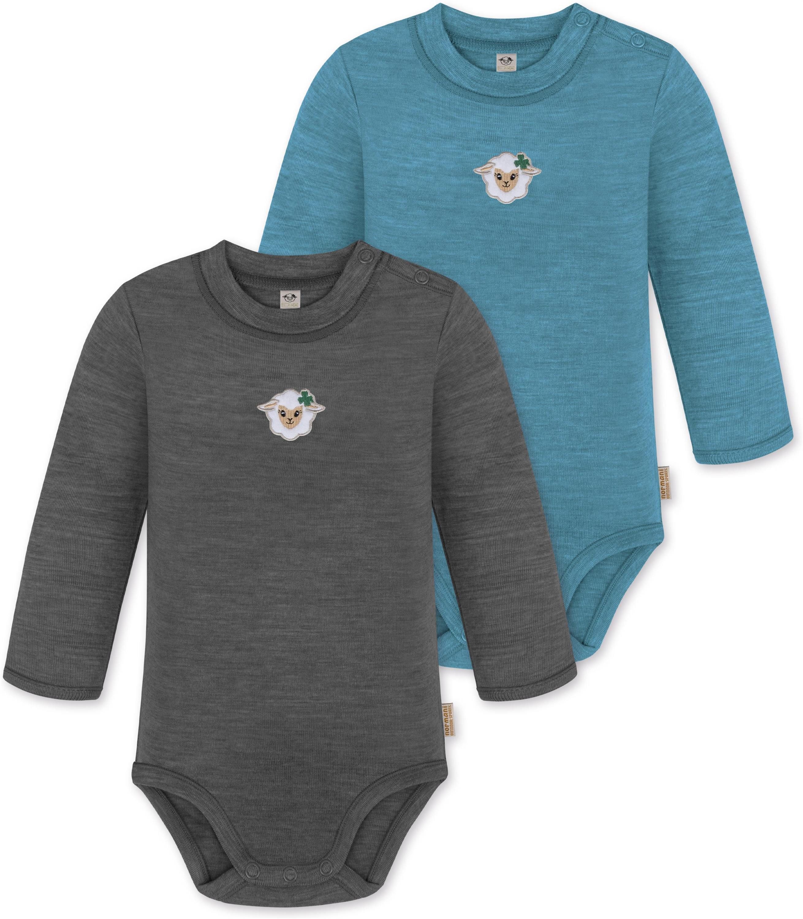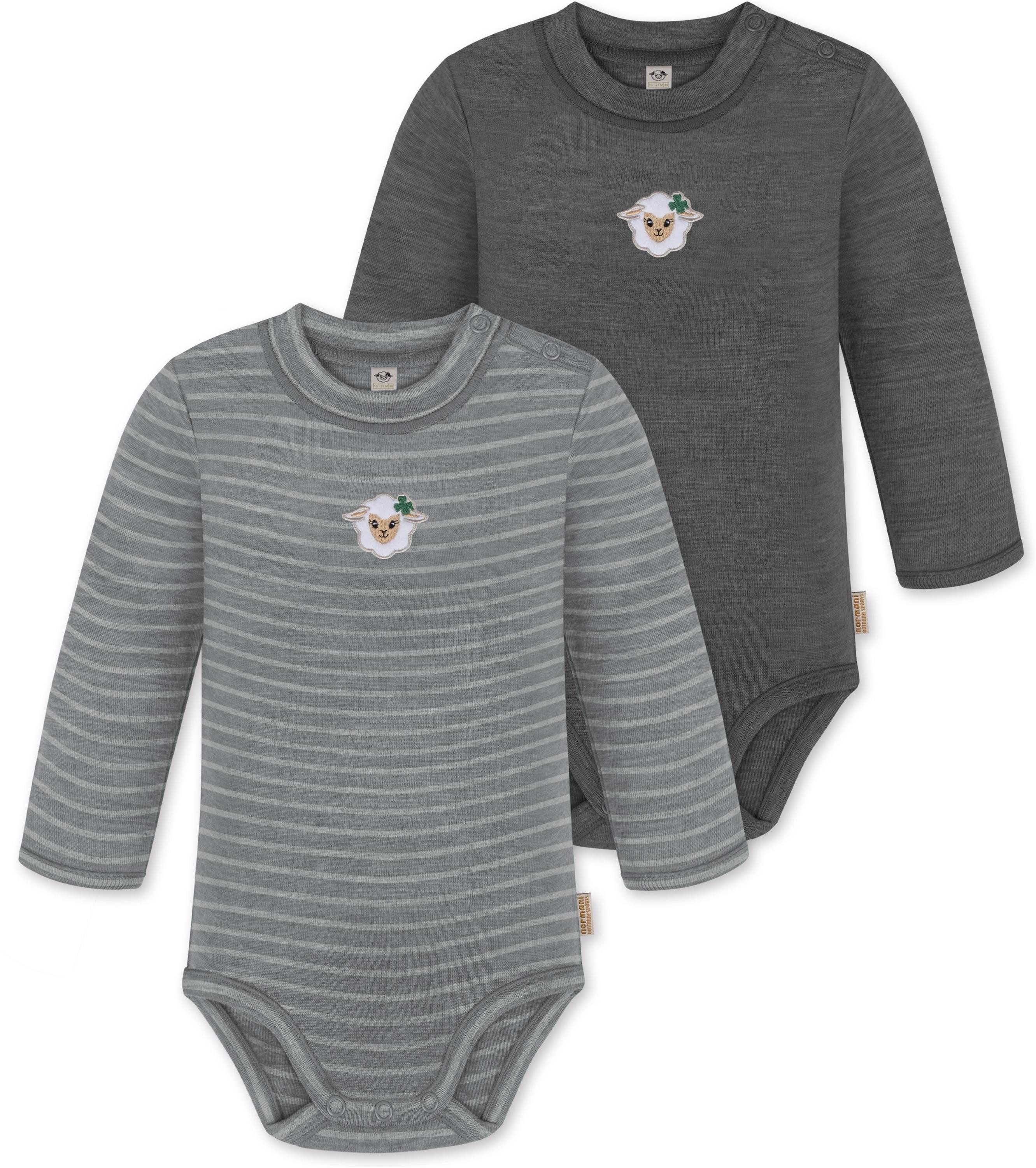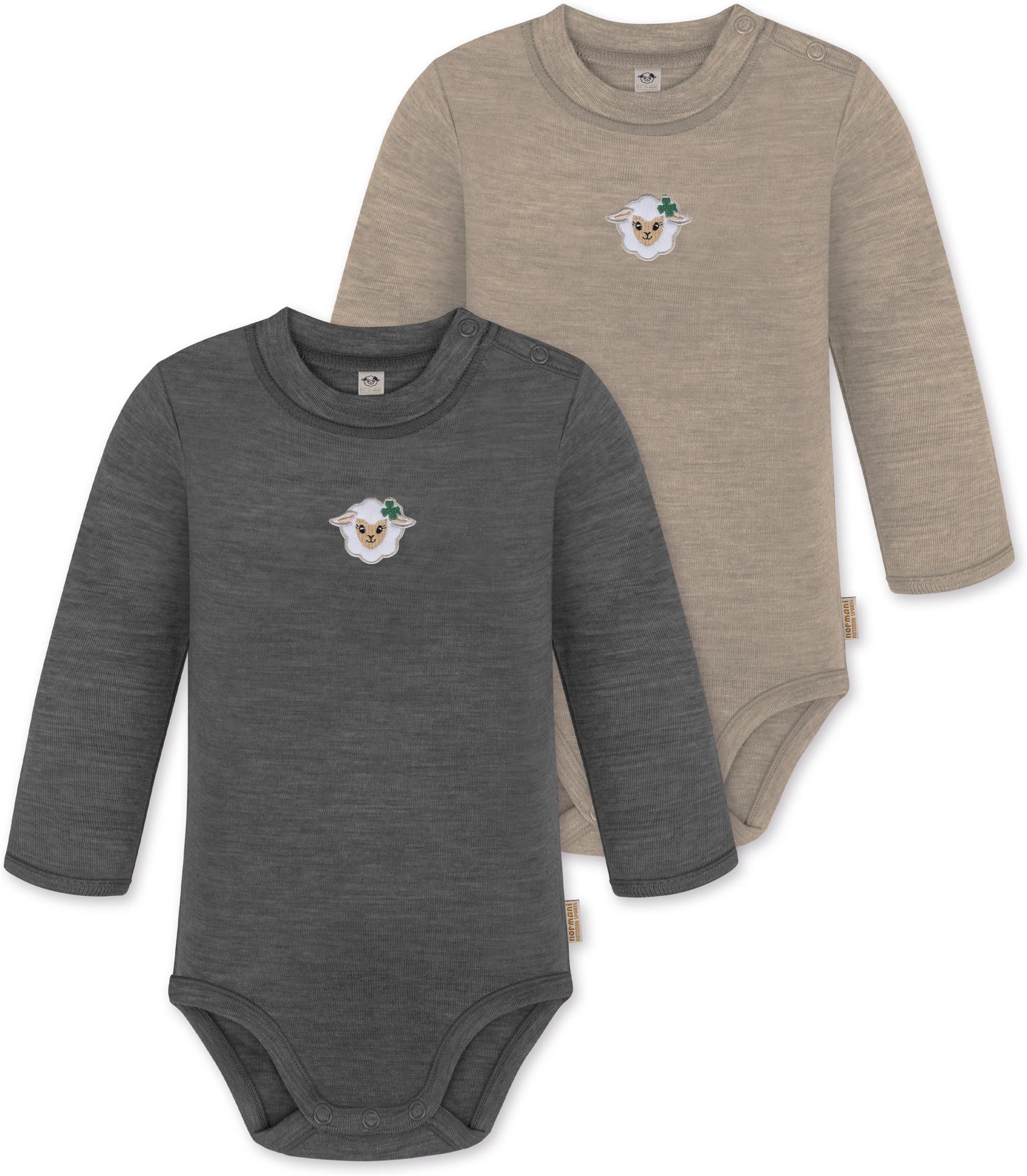 Unser Merino Langarm Body "Tuai", im 2er Pack, ist mehr als nur ein einfacher Baby Body mit langen Ärmeln. Hinter seiner schlichten Erscheinung verbirgt sich ein Kleidungsstück, das sich perfekt für alle Wetterbedingungen eignet. Mit einer Grammatur von 200 g/m² bietet dieser Body eine optimale Wärmeisolierung, die ihn im Winter zur idealen wärmenden Schicht unter weiterer Kleidung macht. Auch im Sommer kann der Body wegen seiner natürlichen Thermoregulierung einzeln getragen werden. Die Wärmeregulierung und Atmungsaktivität der Merinowolle ermöglichen es Ihrem Baby, den Body den ganzen Tag über zu tragen – sei es beim Spielen oder beim Nickerchen. Die weiche Merinowolle ist besonders sanft zur empfindlichen Haut Ihres Babys und verursacht keine Hautirritationen. Zudem ist die Merinofaser geruchsneutralisierend, sodass der Body auch nach mehrmaligem Tragen frisch bleibt. Die Elastizität der Merinowolle sorgt für maximale Bewegungsfreiheit beim Spielen. Darüber hinaus ist der Body mit hochwertigen Marken-Druckknöpfen von YKK an den Schultern und zwischen den Beinen ausgestattet. Diese gewährleisten ein zuverlässiges Öffnen und Спрятать und erleichtern das Wickeln und Umziehen. Abgerundet wurde der Body mit einem kindgerechtem, flauschigem Schaf Stick, der als Eyecatcher dient.