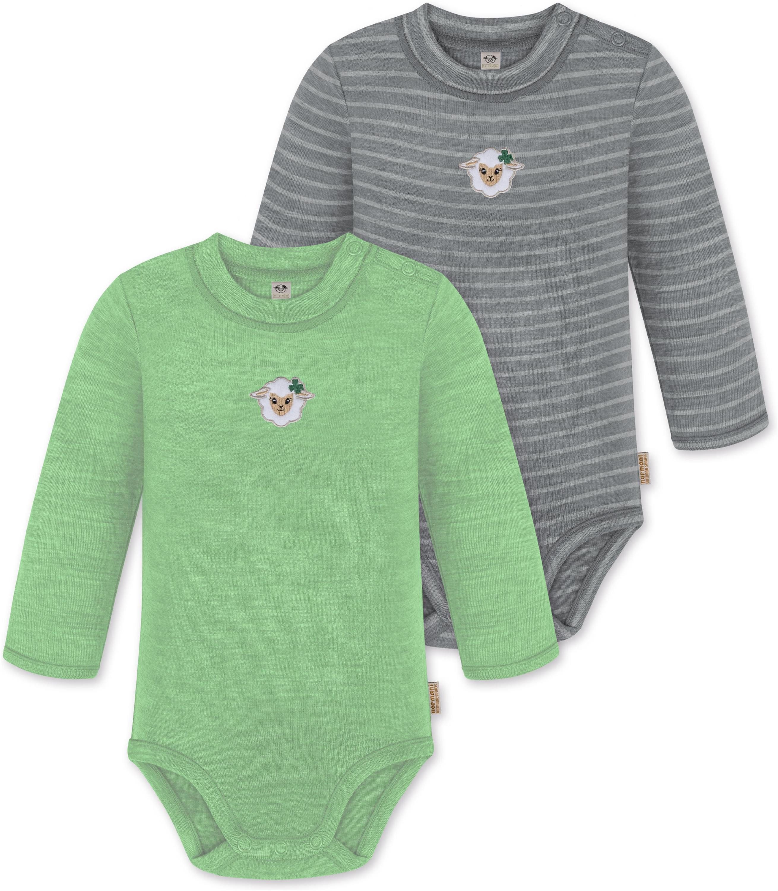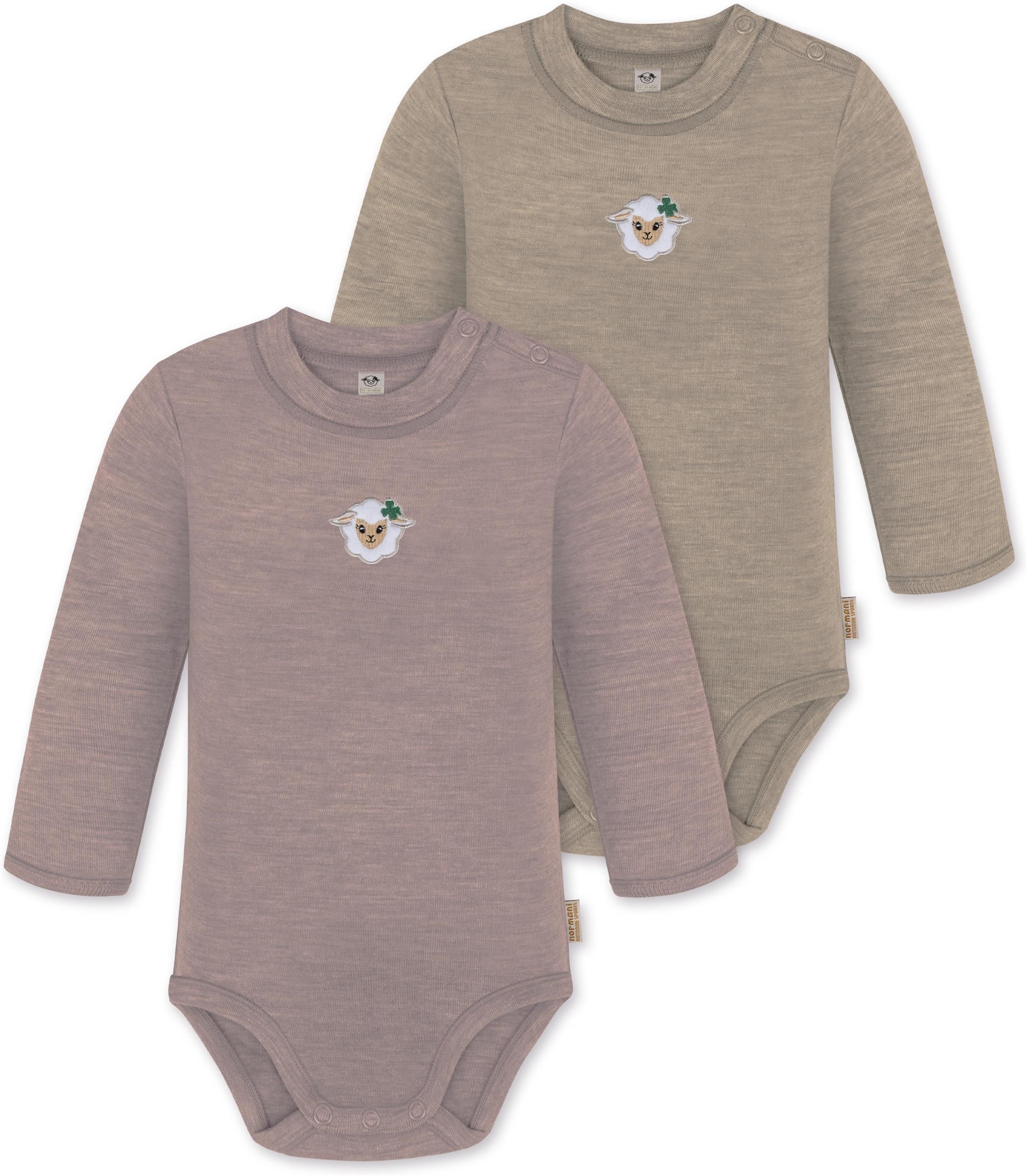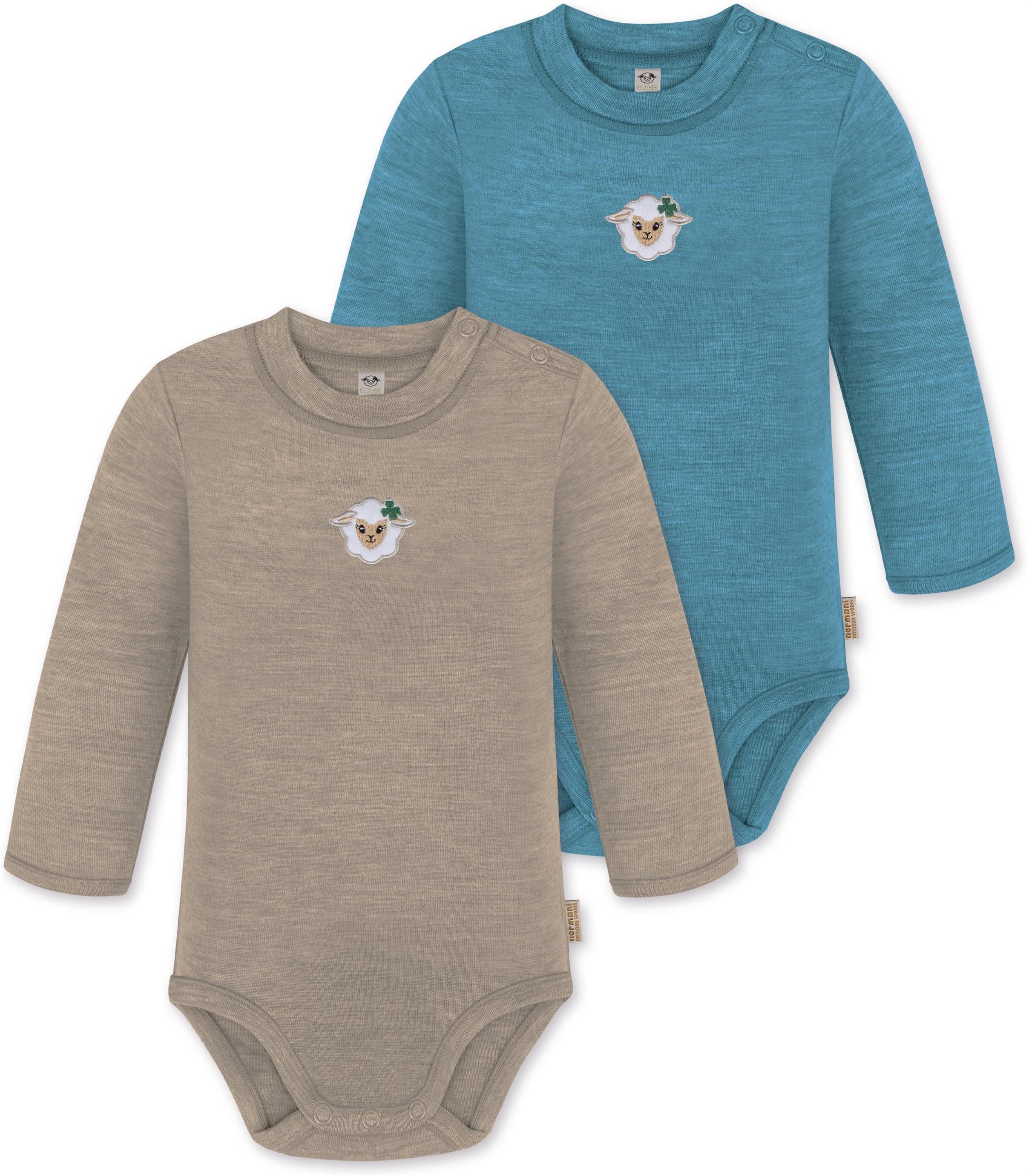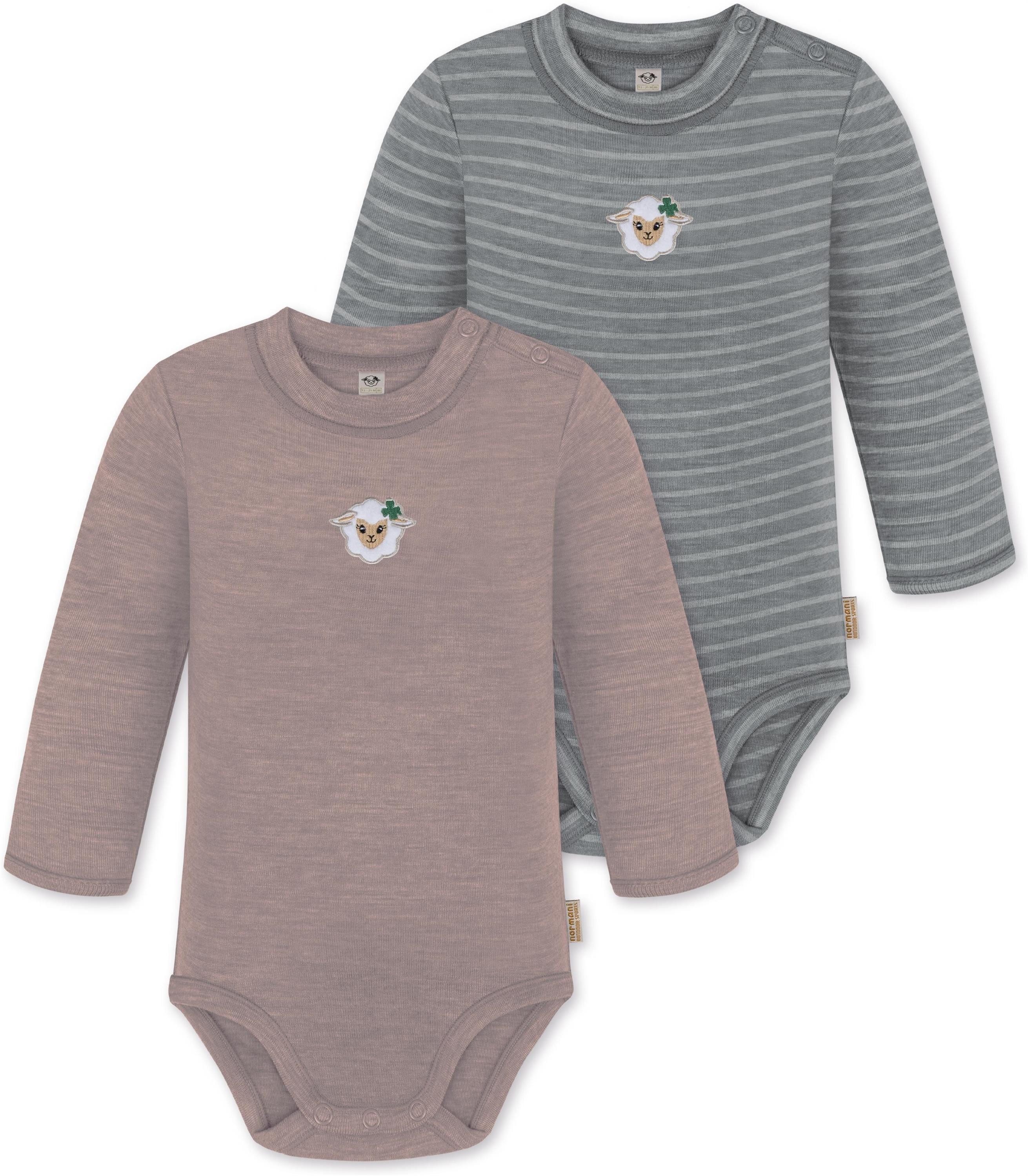 Unser Merino Langarm Body "Tuai", im 2er Pack, ist mehr als nur ein einfacher Baby Body mit langen Ärmeln. Hinter seiner schlichten Erscheinung verbirgt sich ein Kleidungsstück, das sich perfekt für alle Wetterbedingungen eignet. Mit einer Grammatur von 200 g/m² bietet dieser Body eine optimale Wärmeisolierung, die ihn im Winter zur idealen wärmenden Schicht unter weiterer Kleidung macht. Auch im Sommer kann der Body wegen seiner natürlichen Thermoregulierung einzeln getragen werden. Die Wärmeregulierung und Atmungsaktivität der Merinowolle ermöglichen es Ihrem Baby, den Body den ganzen Tag über zu tragen – sei es beim Spielen oder beim Nickerchen. Die weiche Merinowolle ist besonders sanft zur empfindlichen Haut Ihres Babys und verursacht keine Hautirritationen. Zudem ist die Merinofaser geruchsneutralisierend, sodass der Body auch nach mehrmaligem Tragen frisch bleibt. Die Elastizität der Merinowolle sorgt für maximale Bewegungsfreiheit beim Spielen. Darüber hinaus ist der Body mit hochwertigen Marken-Druckknöpfen von YKK an den Schultern und zwischen den Beinen ausgestattet. Diese gewährleisten ein zuverlässiges Öffnen und Спрятать und erleichtern das Wickeln und Umziehen. Abgerundet wurde der Body mit einem kindgerechtem, flauschigem Schaf Stick, der als Eyecatcher dient.