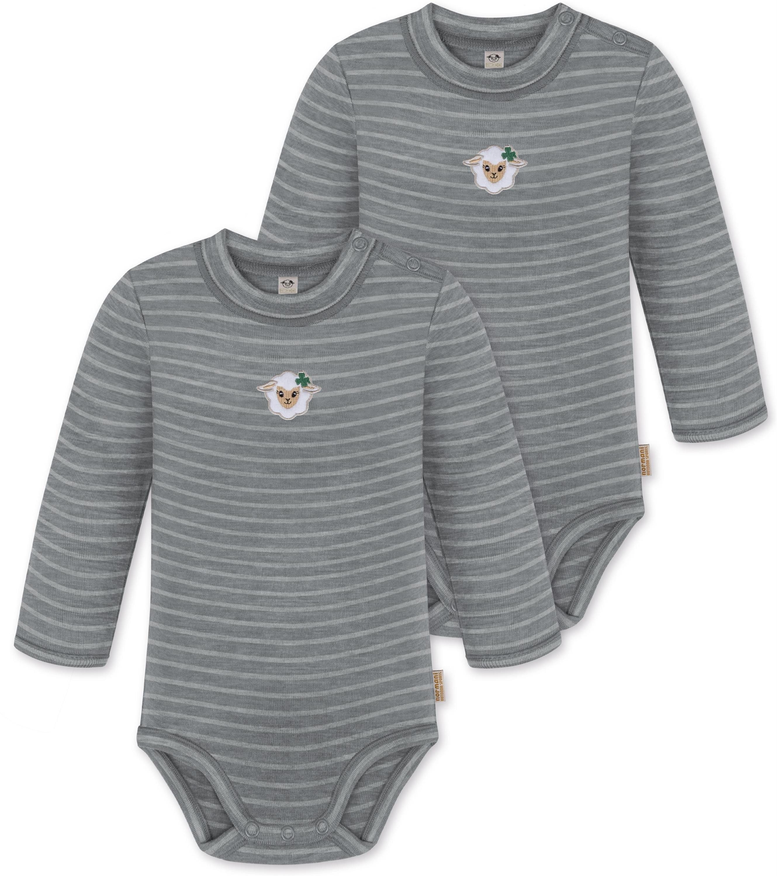 Unser Merino Langarm Body "Tuai", im 2er Pack, ist mehr als nur ein einfacher Baby Body mit langen Ärmeln. Hinter seiner schlichten Erscheinung verbirgt sich ein Kleidungsstück, das sich perfekt für alle Wetterbedingungen eignet. Mit einer Grammatur von 200 g/m² bietet dieser Body eine optimale Wärmeisolierung, die ihn im Winter zur idealen wärmenden Schicht unter weiterer Kleidung macht. Auch im Sommer kann der Body wegen seiner natürlichen Thermoregulierung einzeln getragen werden. Die Wärmeregulierung und Atmungsaktivität der Merinowolle ermöglichen es Ihrem Baby, den Body den ganzen Tag über zu tragen – sei es beim Spielen oder beim Nickerchen. Die weiche Merinowolle ist besonders sanft zur empfindlichen Haut Ihres Babys und verursacht keine Hautirritationen. Zudem ist die Merinofaser geruchsneutralisierend, sodass der Body auch nach mehrmaligem Tragen frisch bleibt. Die Elastizität der Merinowolle sorgt für maximale Bewegungsfreiheit beim Spielen. Darüber hinaus ist der Body mit hochwertigen Marken-Druckknöpfen von YKK an den Schultern und zwischen den Beinen ausgestattet. Diese gewährleisten ein zuverlässiges Öffnen und Спрятать und erleichtern das Wickeln und Umziehen. Abgerundet wurde der Body mit einem kindgerechtem, flauschigem Schaf Stick, der als Eyecatcher dient.