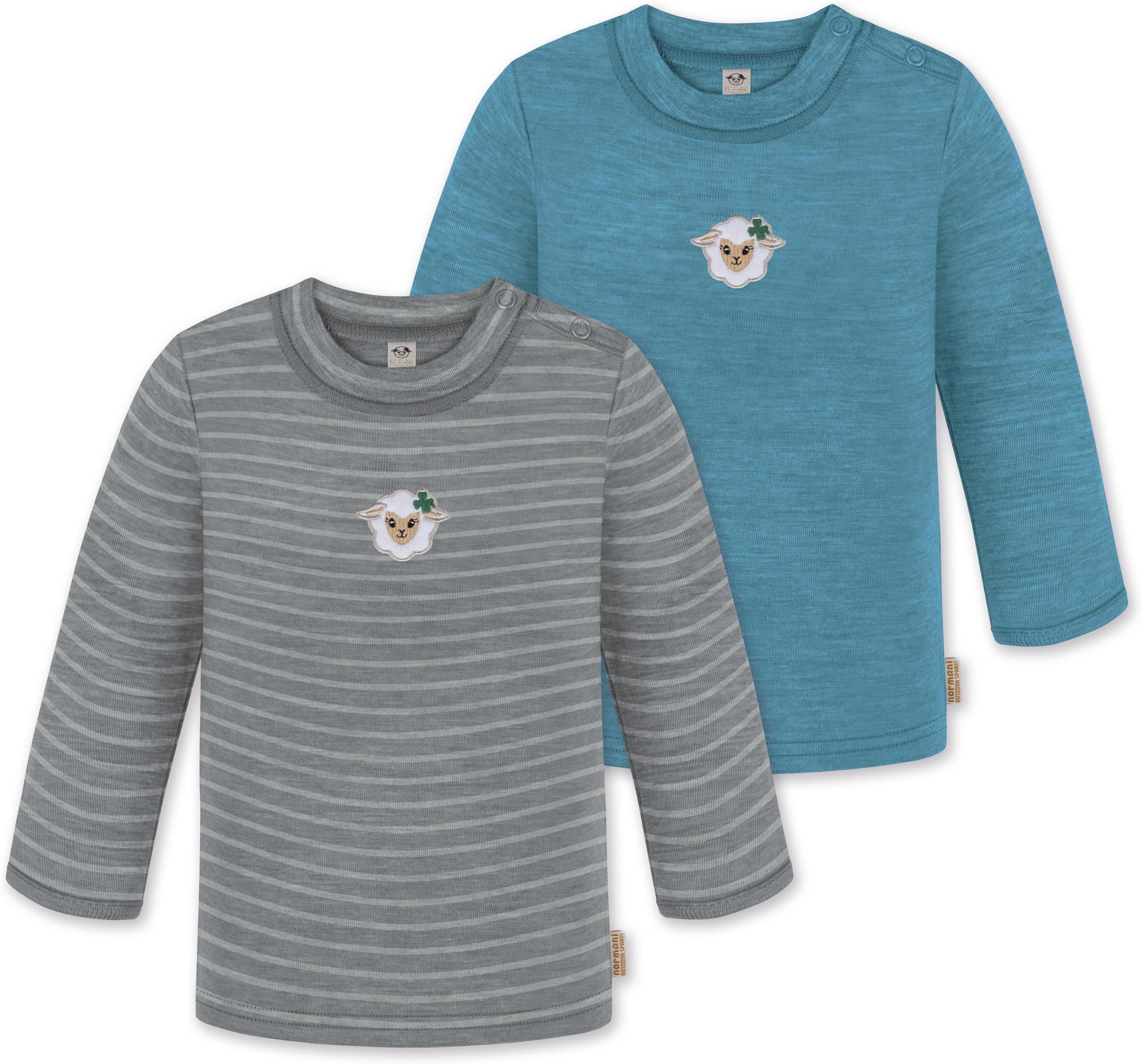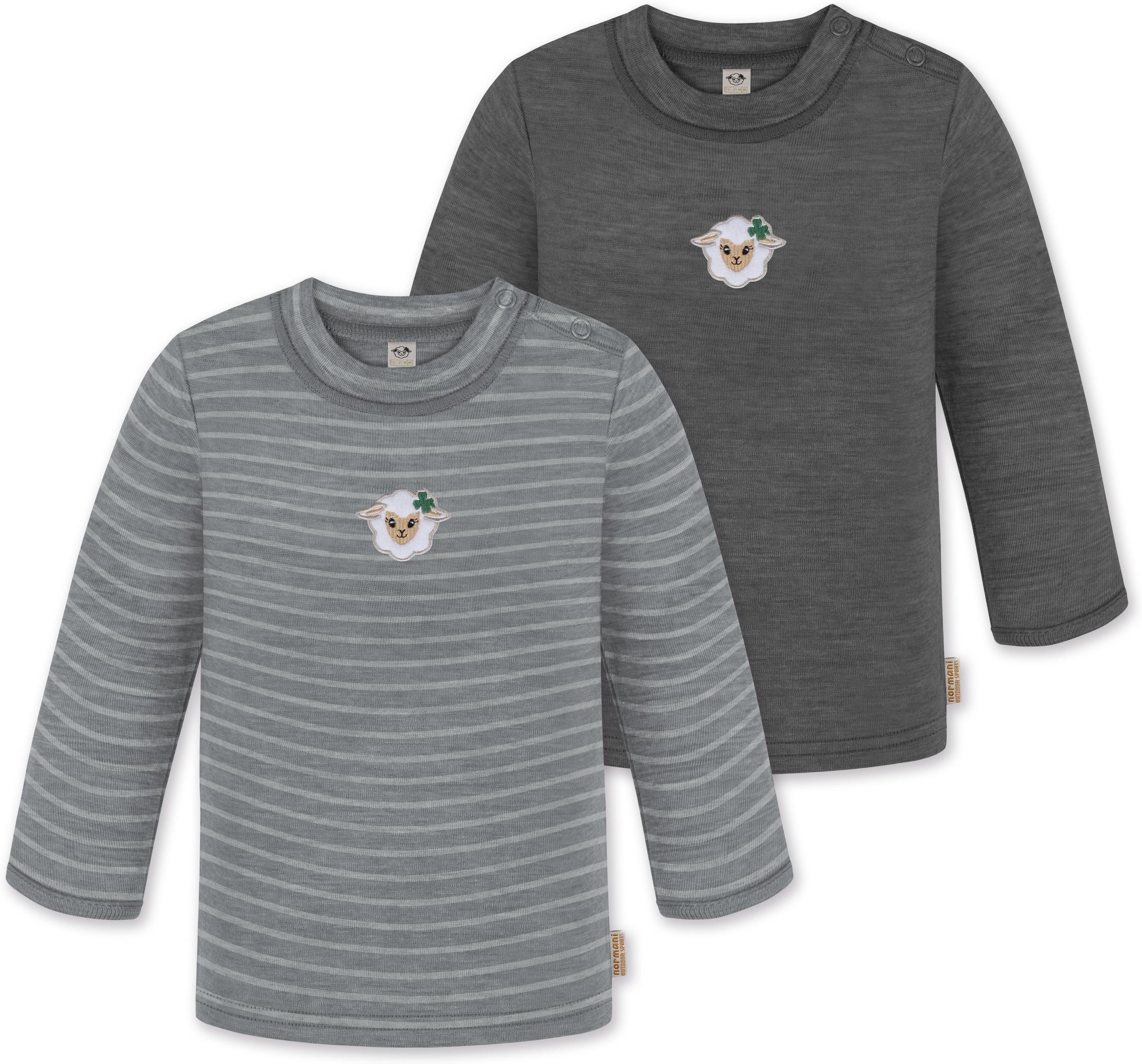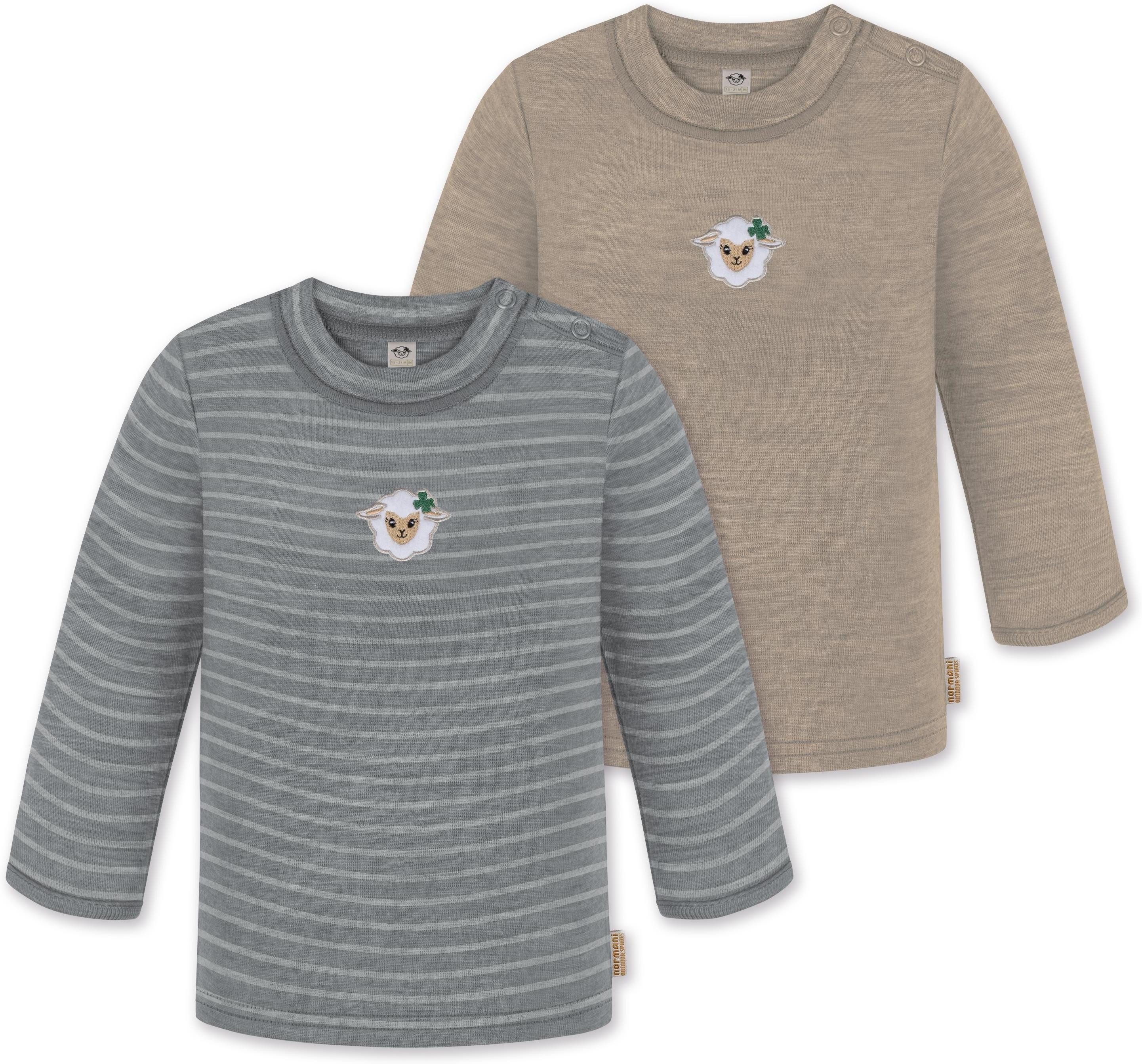 Unser Merino Langarm Oberteil „Taupo", im 2er Pack, ist mehr als nur ein einfaches Oberteil für Babys und Kleinkinder. Hinter seiner schlichten Erscheinung verbirgt sich ein Kleidungsstück, das sich perfekt für alle Wetterbedingungen eignet. Mit einer Grammatur von 200 g/m² bietet dieses Oberteil eine optimale Wärmeisolierung, die es im Winter zur idealen wärmenden Schicht unter weiterer Kleidung macht. Dank seiner natürlichen Thermoregulierung kann das Oberteil auch im Sommer einzeln getragen werden, was es zum idealen Begleiter für das ganze Jahr macht. Ob beim Klettern auf dem Spielplatz, beim Kinderturnen, zu Hause, im Kindergarten oder in der Kita, dieses Oberteil ist vielseitig einsetzbar und sorgt stets für angenehme Temperaturen und höchsten Tragekomfort. Die Wärmeregulierung und Atmungsaktivität der Merinowolle ermöglichen es Ihrem Kind, das Oberteil den ganzen Tag über zu tragen – sei es beim Spielen, Toben oder Mittagsschläfchen. Die weiche Merinowolle ist besonders sanft zur empfindlichen Haut Ihres Kindes und verursacht keine Hautirritationen. Zudem ist die Merinofaser geruchsneutralisierend, sodass das Oberteil auch nach mehrmaligem Tragen frisch bleibt. Die Elastizität der Merinowolle sorgt für maximale Bewegungsfreiheit beim Spielen. Darüber hinaus ist das Oberteil mit hochwertigen Marken-Druckknöpfen von YKK an den Schultern ausgestattet. Diese gewährleisten ein zuverlässiges Öffnen und Спрятать und erleichtern das Umziehen. Abgerundet wurde das Oberteil mit einem kindgerechtem, flauschigem Schaf Stick, der als Eyecatcher dient.