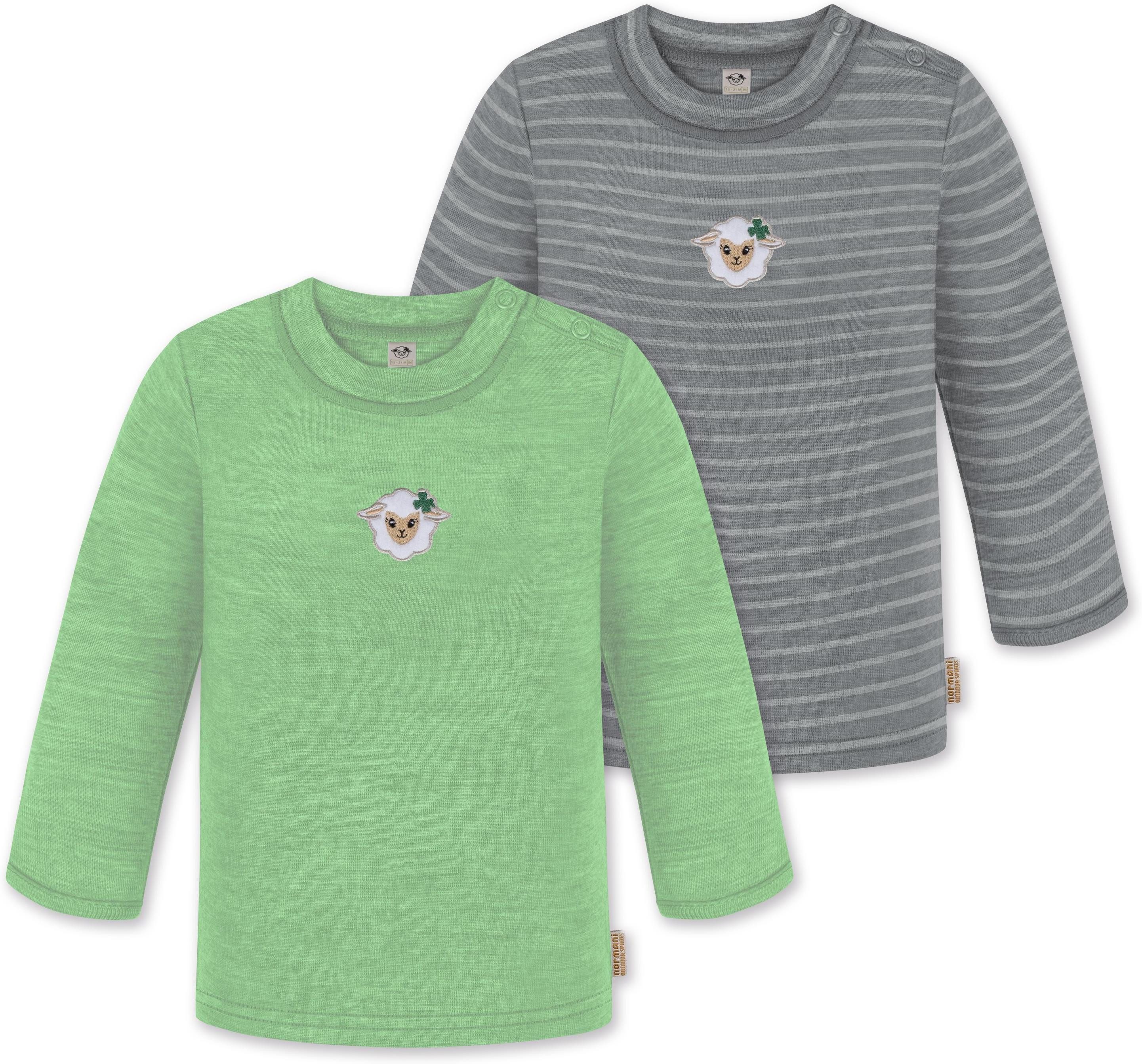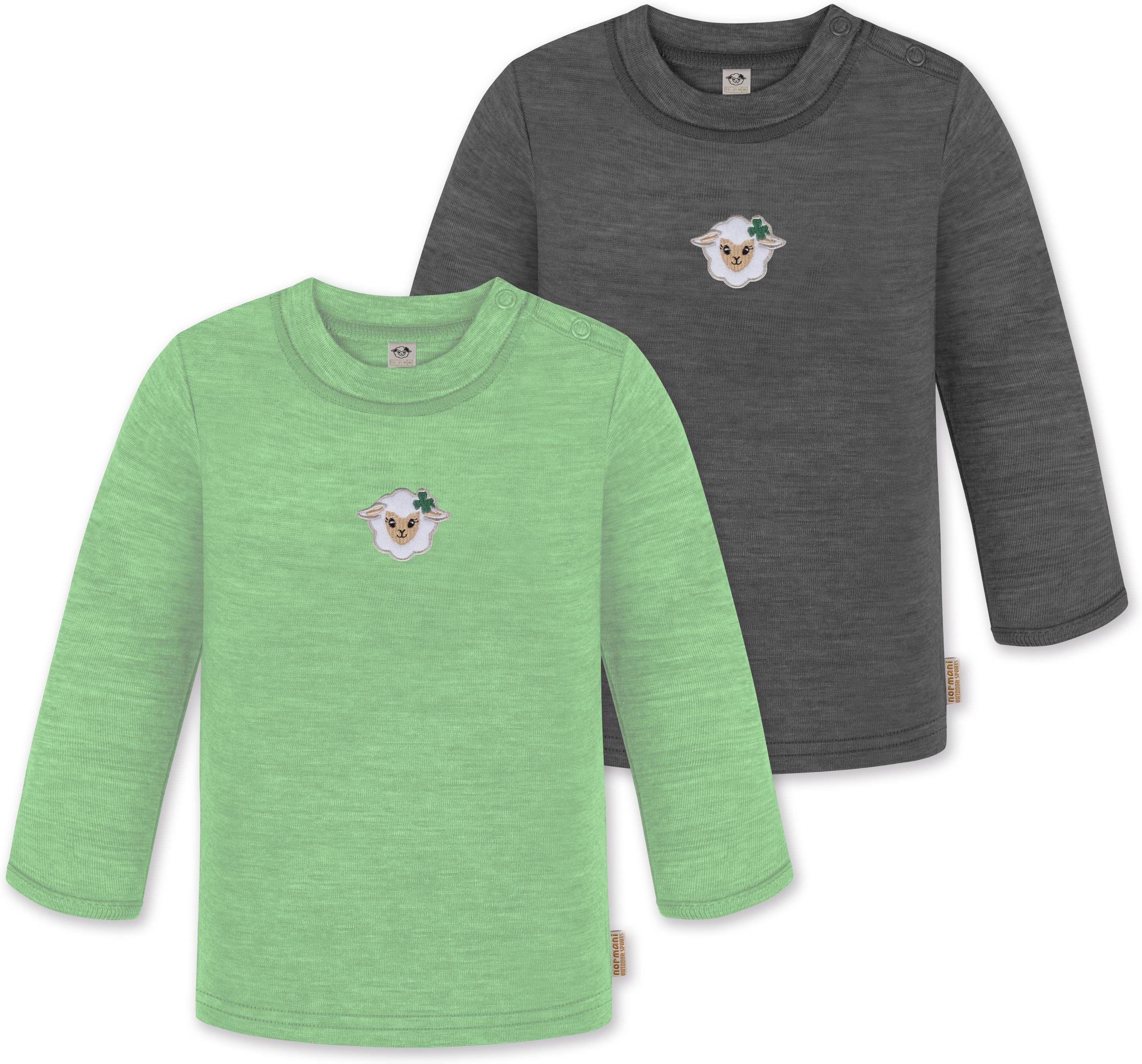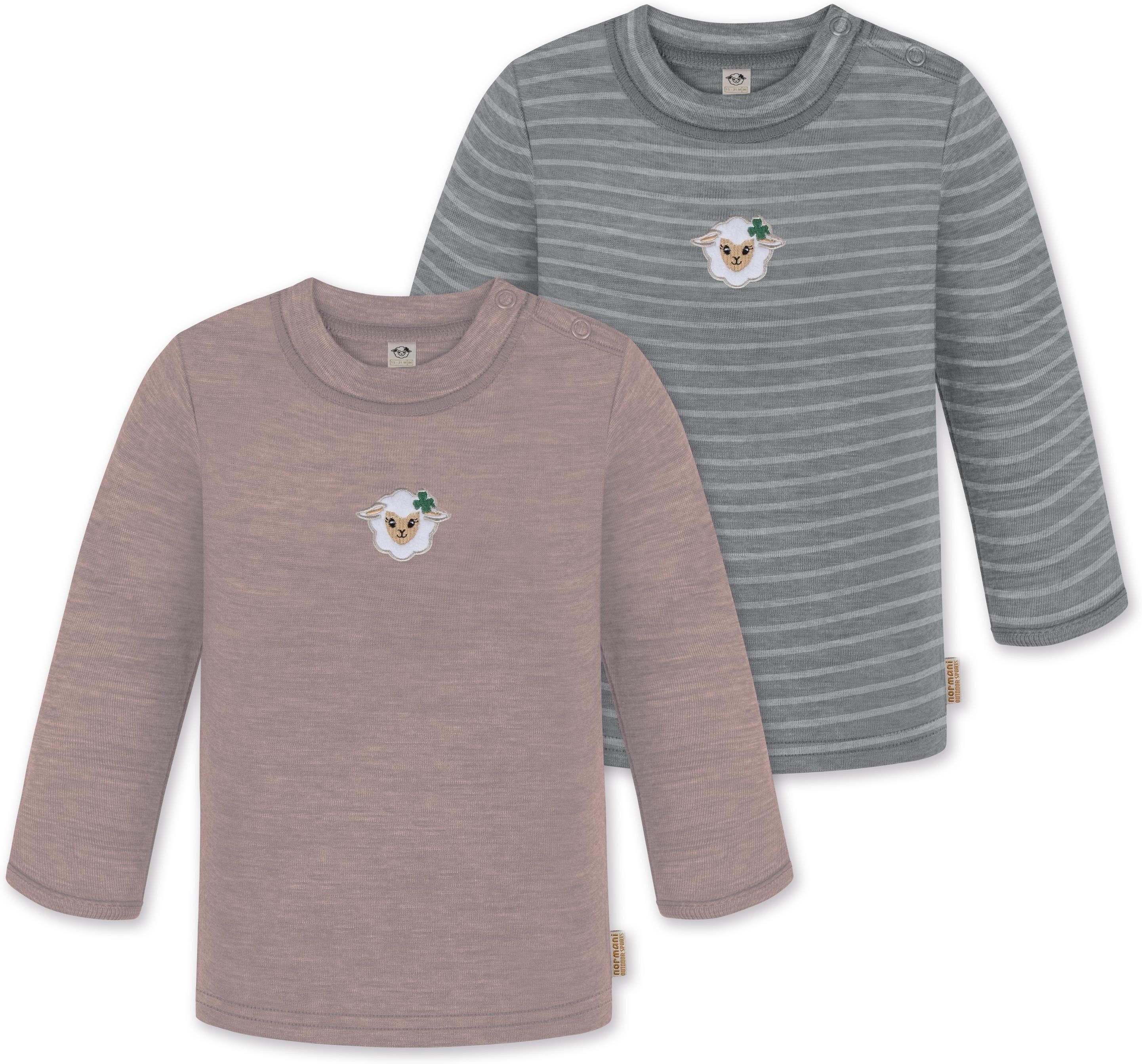 Unser Merino Langarm Oberteil „Taupo", im 2er Pack, ist mehr als nur ein einfaches Oberteil für Babys und Kleinkinder. Hinter seiner schlichten Erscheinung verbirgt sich ein Kleidungsstück, das sich perfekt für alle Wetterbedingungen eignet. Mit einer Grammatur von 200 g/m² bietet dieses Oberteil eine optimale Wärmeisolierung, die es im Winter zur idealen wärmenden Schicht unter weiterer Kleidung macht. Dank seiner natürlichen Thermoregulierung kann das Oberteil auch im Sommer einzeln getragen werden, was es zum idealen Begleiter für das ganze Jahr macht. Ob beim Klettern auf dem Spielplatz, beim Kinderturnen, zu Hause, im Kindergarten oder in der Kita, dieses Oberteil ist vielseitig einsetzbar und sorgt stets für angenehme Temperaturen und höchsten Tragekomfort. Die Wärmeregulierung und Atmungsaktivität der Merinowolle ermöglichen es Ihrem Kind, das Oberteil den ganzen Tag über zu tragen – sei es beim Spielen, Toben oder Mittagsschläfchen. Die weiche Merinowolle ist besonders sanft zur empfindlichen Haut Ihres Kindes und verursacht keine Hautirritationen. Zudem ist die Merinofaser geruchsneutralisierend, sodass das Oberteil auch nach mehrmaligem Tragen frisch bleibt. Die Elastizität der Merinowolle sorgt für maximale Bewegungsfreiheit beim Spielen. Darüber hinaus ist das Oberteil mit hochwertigen Marken-Druckknöpfen von YKK an den Schultern ausgestattet. Diese gewährleisten ein zuverlässiges Öffnen und Спрятать und erleichtern das Umziehen. Abgerundet wurde das Oberteil mit einem kindgerechtem, flauschigem Schaf Stick, der als Eyecatcher dient.