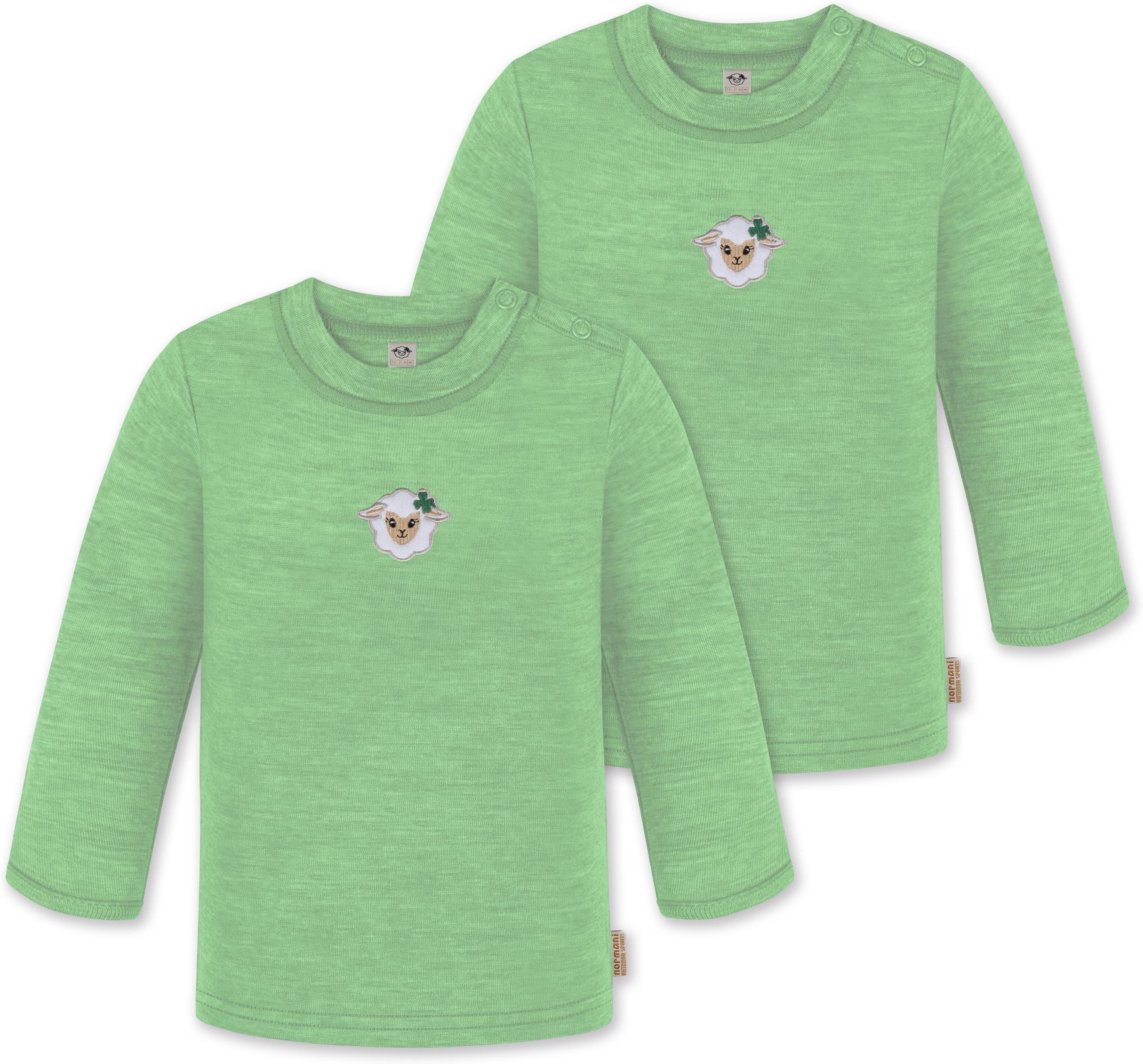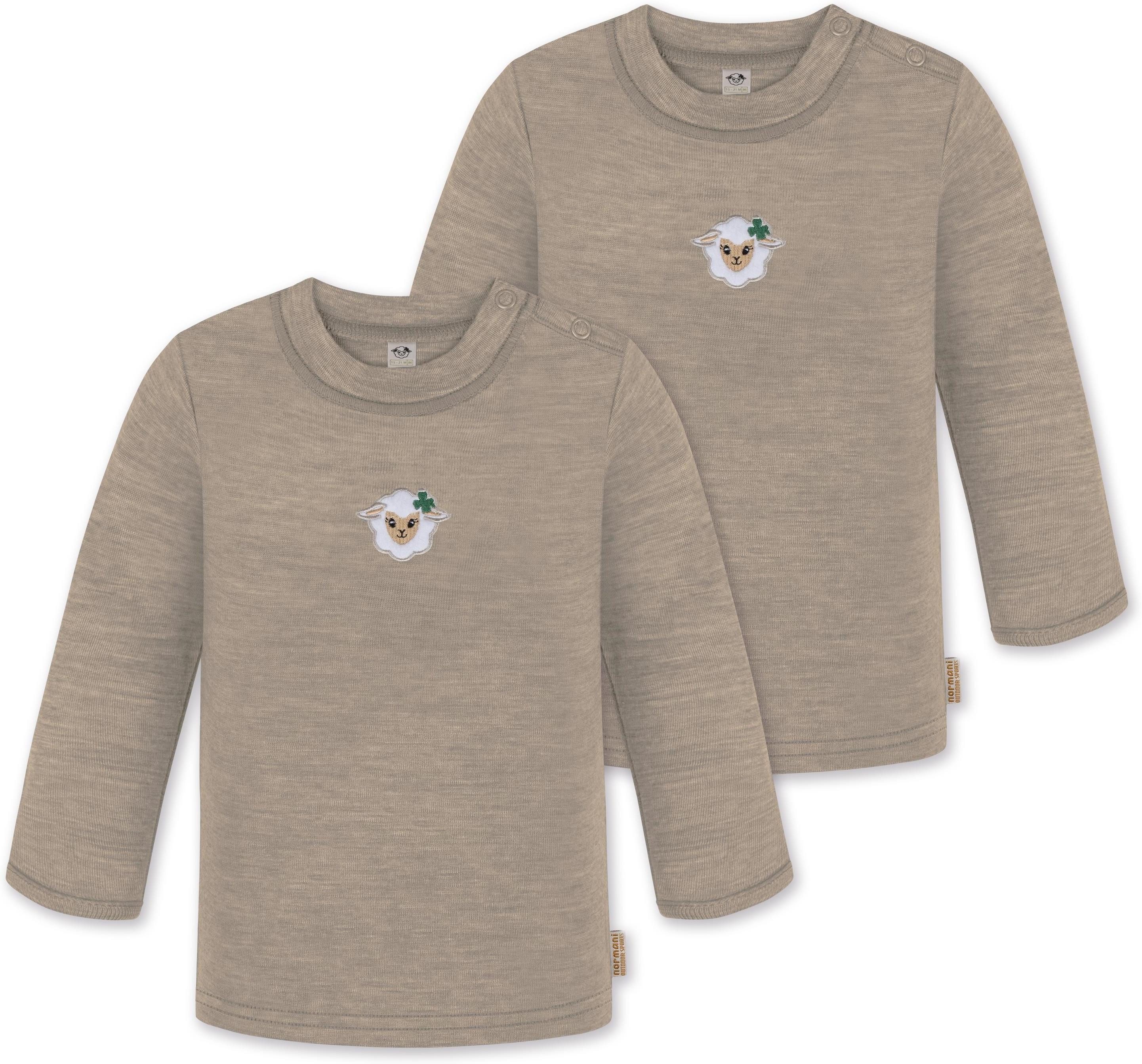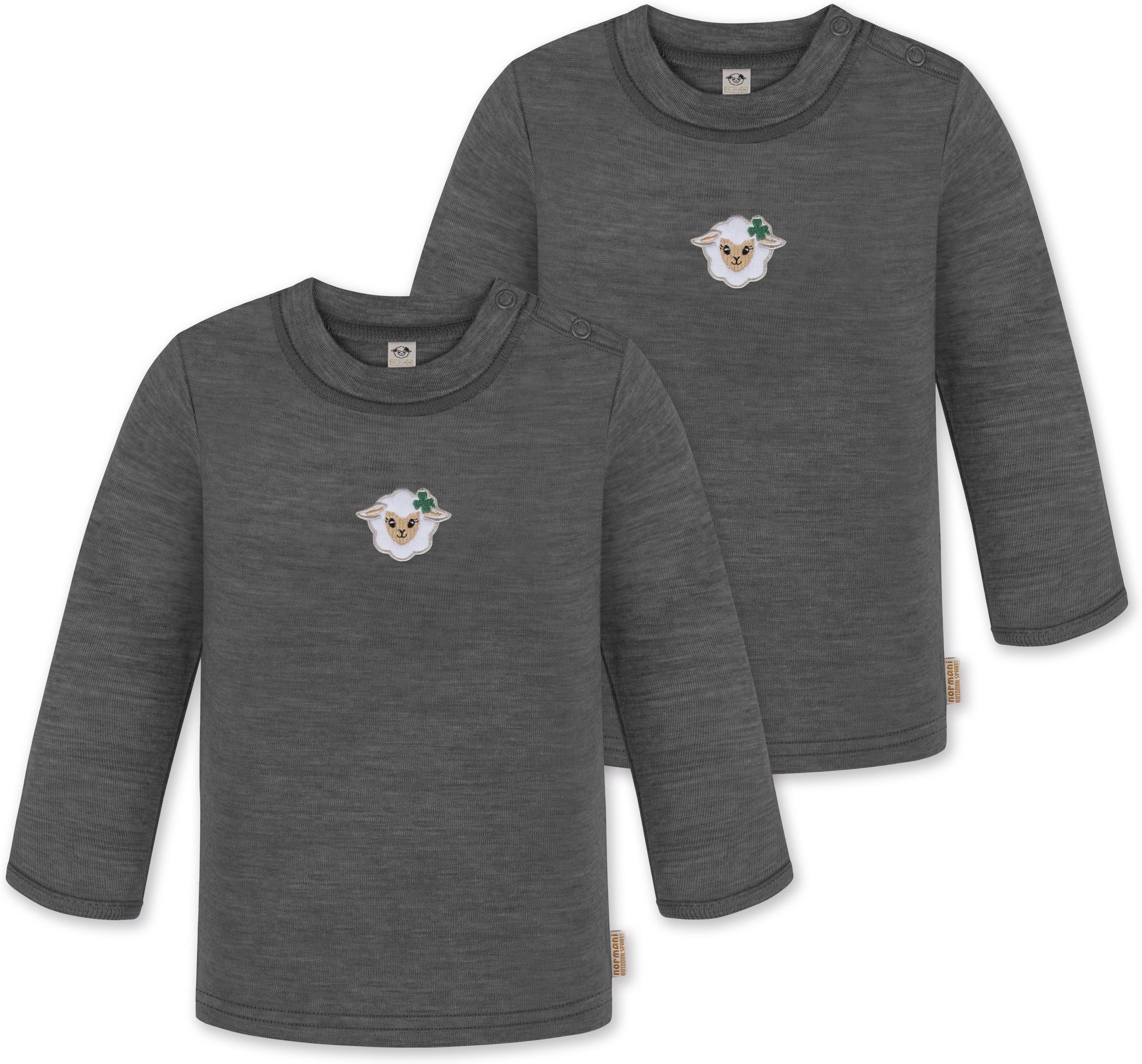 Unser Merino Langarm Oberteil „Taupo", im 2er Pack, ist mehr als nur ein einfaches Oberteil für Babys und Kleinkinder. Hinter seiner schlichten Erscheinung verbirgt sich ein Kleidungsstück, das sich perfekt für alle Wetterbedingungen eignet. Mit einer Grammatur von 200 g/m² bietet dieses Oberteil eine optimale Wärmeisolierung, die es im Winter zur idealen wärmenden Schicht unter weiterer Kleidung macht. Dank seiner natürlichen Thermoregulierung kann das Oberteil auch im Sommer einzeln getragen werden, was es zum idealen Begleiter für das ganze Jahr macht. Ob beim Klettern auf dem Spielplatz, beim Kinderturnen, zu Hause, im Kindergarten oder in der Kita, dieses Oberteil ist vielseitig einsetzbar und sorgt stets für angenehme Temperaturen und höchsten Tragekomfort. Die Wärmeregulierung und Atmungsaktivität der Merinowolle ermöglichen es Ihrem Kind, das Oberteil den ganzen Tag über zu tragen – sei es beim Spielen, Toben oder Mittagsschläfchen. Die weiche Merinowolle ist besonders sanft zur empfindlichen Haut Ihres Kindes und verursacht keine Hautirritationen. Zudem ist die Merinofaser geruchsneutralisierend, sodass das Oberteil auch nach mehrmaligem Tragen frisch bleibt. Die Elastizität der Merinowolle sorgt für maximale Bewegungsfreiheit beim Spielen. Darüber hinaus ist das Oberteil mit hochwertigen Marken-Druckknöpfen von YKK an den Schultern ausgestattet. Diese gewährleisten ein zuverlässiges Öffnen und Спрятать und erleichtern das Umziehen. Abgerundet wurde das Oberteil mit einem kindgerechtem, flauschigem Schaf Stick, der als Eyecatcher dient.