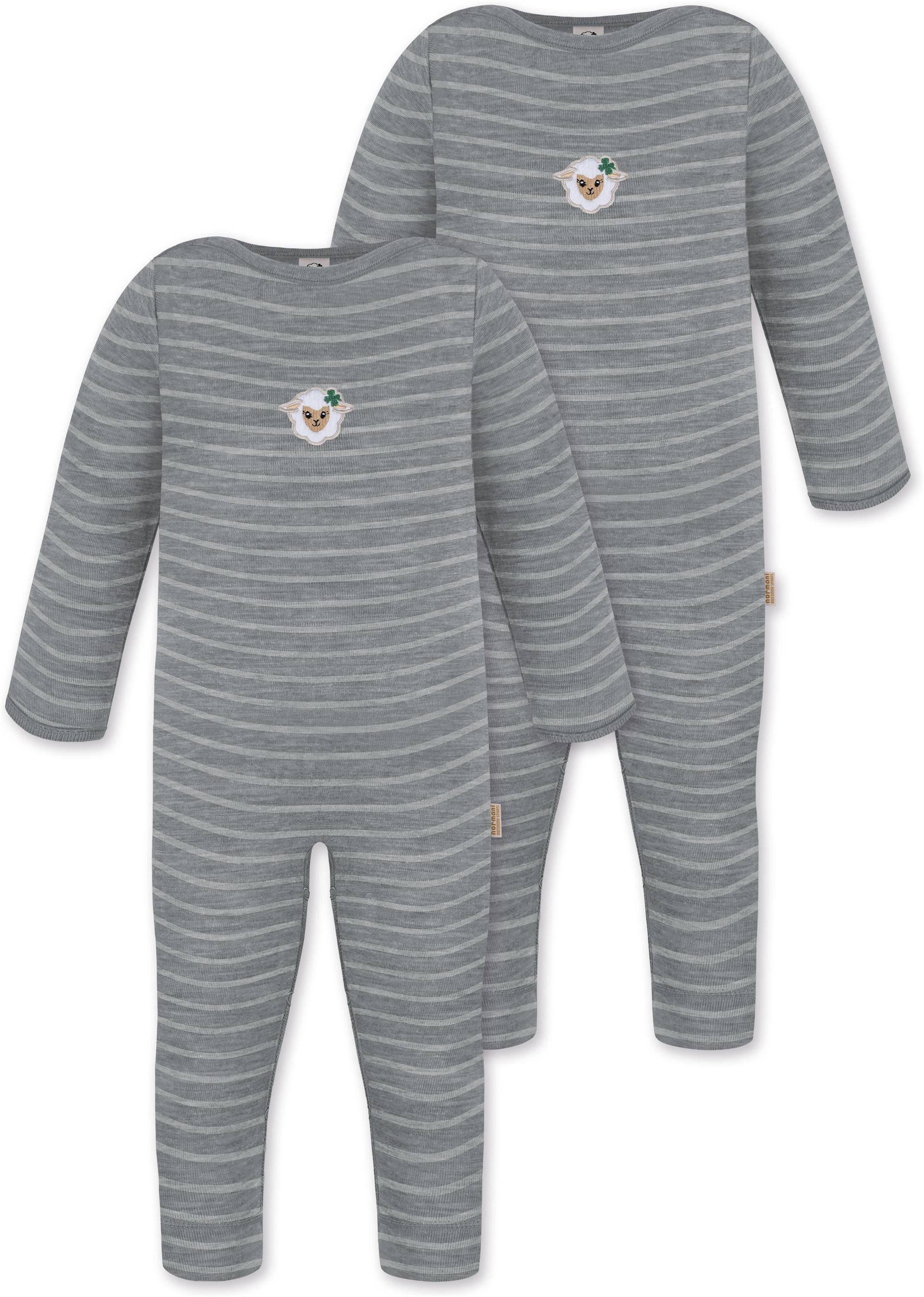 Unser Merino Strampler „Tangoio", im 2er Pack, ist mehr als nur ein einfacher Baby Strampler. Hinter seiner schlichten Erscheinung verbirgt sich ein Kleidungsstück, das sich perfekt für alle Wetterbedingungen eignet. Mit einer Grammatur von 200 g/m² bietet dieser Strampler eine optimale Wärmeisolierung, die ihn im Winter zur idealen wärmenden Schicht unter weiterer Kleidung macht. Auch im Sommer kann der Strampler wegen seiner natürlichen Thermoregulierung einzeln getragen werden. Die Wärmeregulierung und Atmungsaktivität der Merinowolle ermöglichen es Ihrem Baby, den Strampler den ganzen Tag über zu tragen – sei es beim Spielen oder beim Nickerchen. Die weiche Merinowolle ist besonders sanft zur empfindlichen Haut Ihres Babys und verursacht keine Hautirritationen. Zudem ist die Merinofaser geruchsneutralisierend, sodass der Strampler auch nach mehrmaligem Tragen frisch bleibt. Die Elastizität der Merinowolle sorgt für maximale Bewegungsfreiheit beim Spielen. Darüber hinaus ist der Strampler mit hochwertigen Marken-Druckknöpfen von YKK an den Schultern und zwischen den Beinen ausgestattet. Diese gewährleisten ein zuverlässiges Öffnen und Спрятать und erleichtern das Wickeln und Umziehen. Abgerundet wurde der Strampler mit einem kindgerechtem, flauschigem Schaf Stick, der als Eyecatcher dient.