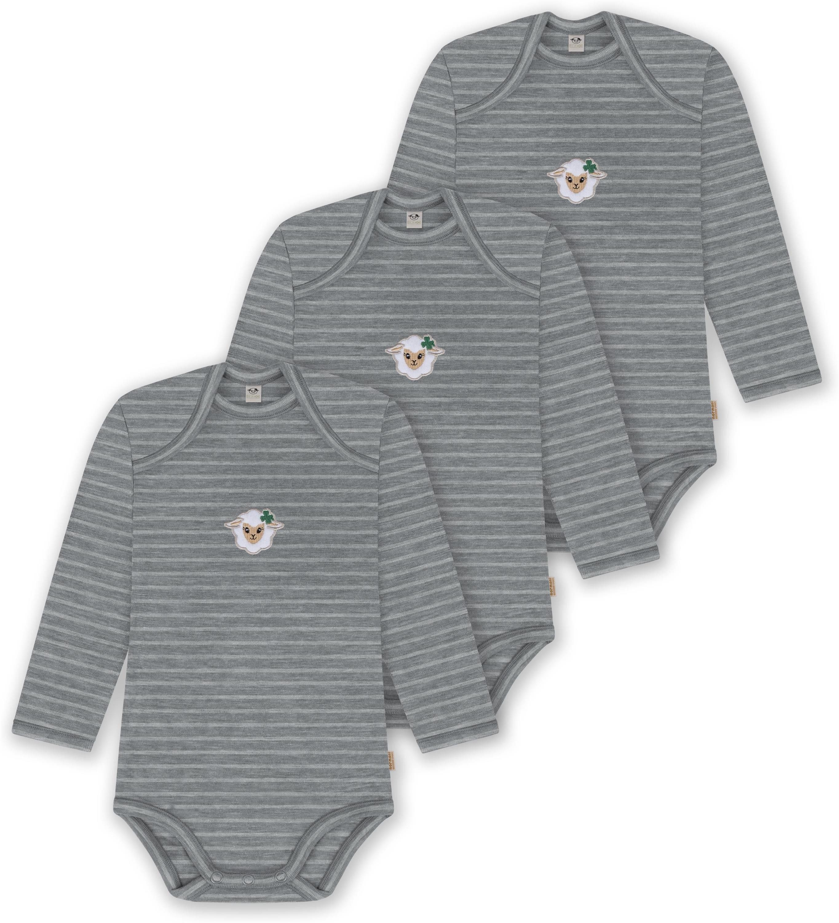 Unser Merino Langarm Body „Auckland", im 3er Pack, ist mehr als nur ein einfacher Baby Body mit langen Ärmeln und amerikanischem Ausschnitt. Hinter seiner schlichten Erscheinung verbirgt sich ein Kleidungsstück, das sich perfekt für alle Wetterbedingungen eignet. Mit einer Grammatur von 200 g/m² bietet dieser Body eine optimale Wärmeisolierung, die ihn im Winter zur idealen wärmenden Schicht unter weiterer Kleidung macht. Auch im Sommer kann der Body wegen seiner natürlichen Thermoregulierung einzeln getragen werden. Die Wärmeregulierung und Atmungsaktivität der Merinowolle ermöglichen es Ihrem Baby, den Body den ganzen Tag über zu tragen – sei es beim Spielen oder beim Nickerchen. Die weiche Merinowolle ist besonders sanft zur empfindlichen Haut Ihres Babys und verursacht keine Hautirritationen. Zudem ist die Merinofaser geruchsneutralisierend, sodass der Body auch nach mehrmaligem Tragen frisch bleibt. Die Elastizität der Merinowolle und der amerikanische Ausschnitt sorgen für maximale Bewegungsfreiheit beim Spielen und Umziehen. Впередhin ist der Body mit Marken-Druckknöpfen von YKK zwischen den Beinen ausgestattet. Diese ermöglichen ein zuverlässiges Öffnen und Спрятать und erleichtern das Wickeln. Abgerundet wurde der Body mit einem kindgerechtem, flauschigem Schaf Stick, der als Eyecatcher dient.