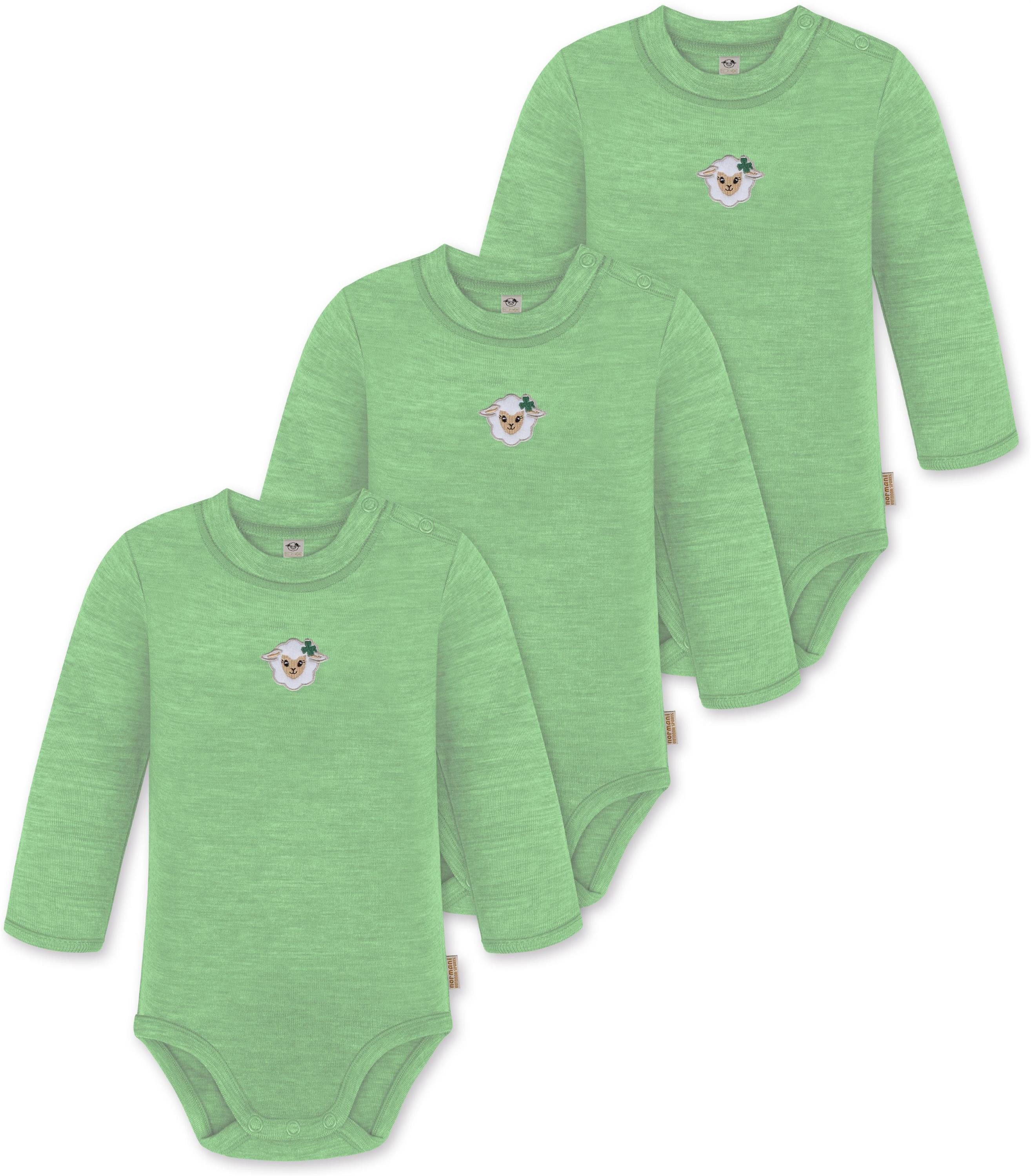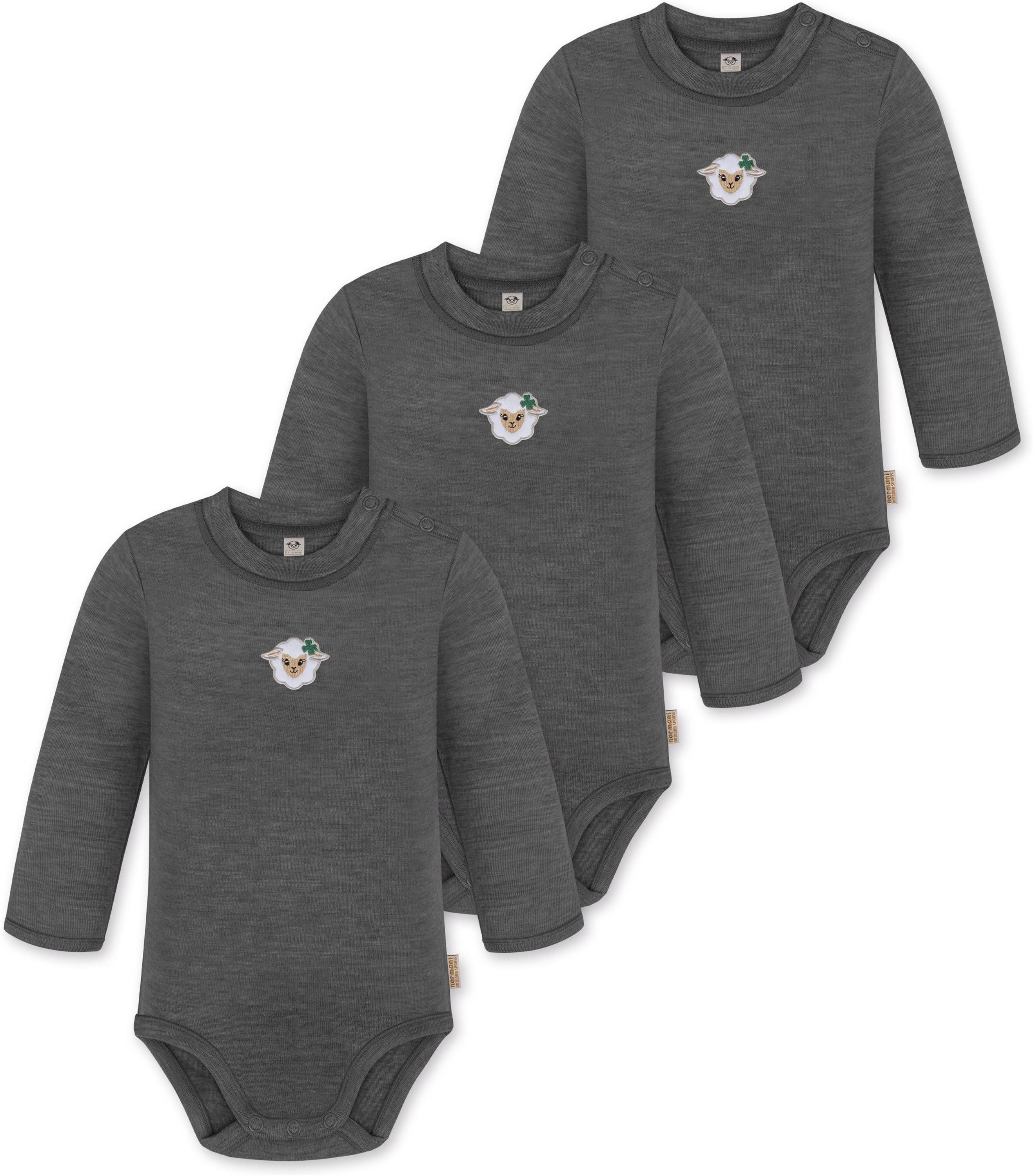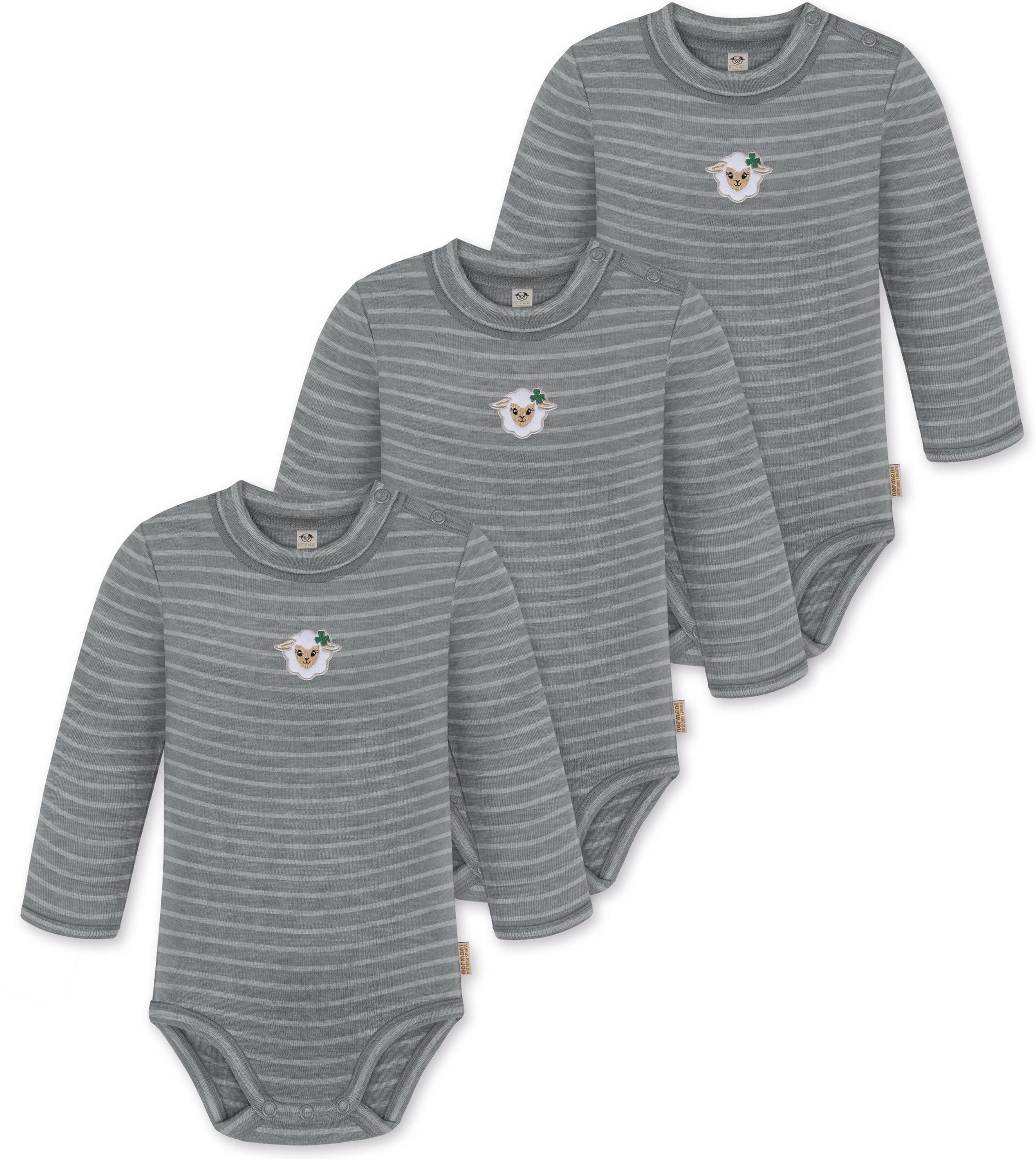 Unser Merino Langarm Body "Tuai", im 3er Pack, ist mehr als nur ein einfacher Baby Body mit langen Ärmeln. Hinter seiner schlichten Erscheinung verbirgt sich ein Kleidungsstück, das sich perfekt für alle Wetterbedingungen eignet. Mit einer Grammatur von 200 g/m² bietet dieser Body eine optimale Wärmeisolierung, die ihn im Winter zur idealen wärmenden Schicht unter weiterer Kleidung macht. Auch im Sommer kann der Body wegen seiner natürlichen Thermoregulierung einzeln getragen werden. Die Wärmeregulierung und Atmungsaktivität der Merinowolle ermöglichen es Ihrem Baby, den Body den ganzen Tag über zu tragen – sei es beim Spielen oder beim Nickerchen. Die weiche Merinowolle ist besonders sanft zur empfindlichen Haut Ihres Babys und verursacht keine Hautirritationen. Zudem ist die Merinofaser geruchsneutralisierend, sodass der Body auch nach mehrmaligem Tragen frisch bleibt. Die Elastizität der Merinowolle sorgt für maximale Bewegungsfreiheit beim Spielen. Darüber hinaus ist der Body mit hochwertigen Marken-Druckknöpfen von YKK an den Schultern und zwischen den Beinen ausgestattet. Diese gewährleisten ein zuverlässiges Öffnen und Спрятать und erleichtern das Wickeln und Umziehen. Abgerundet wurde der Body mit einem kindgerechtem, flauschigem Schaf Stick, der als Eyecatcher dient.
