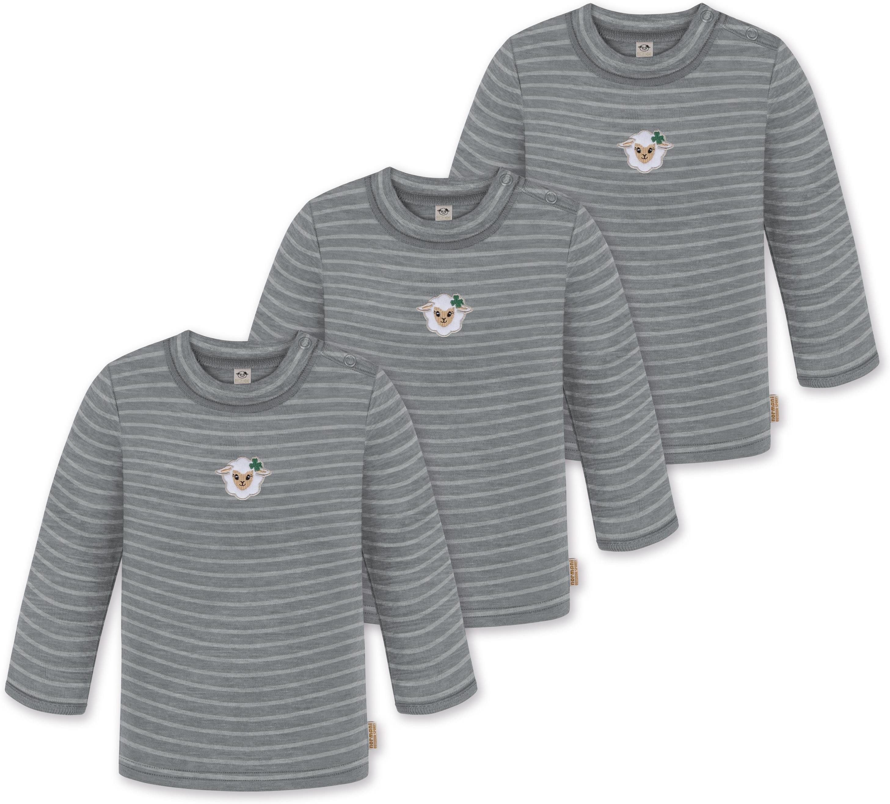 Unser Merino Langarm Oberteil „Taupo", im 3er Pack, ist mehr als nur ein einfaches Oberteil für Babys und Kleinkinder. Hinter seiner schlichten Erscheinung verbirgt sich ein Kleidungsstück, das sich perfekt für alle Wetterbedingungen eignet. Mit einer Grammatur von 200 g/m² bietet dieses Oberteil eine optimale Wärmeisolierung, die es im Winter zur idealen wärmenden Schicht unter weiterer Kleidung macht. Dank seiner natürlichen Thermoregulierung kann das Oberteil auch im Sommer einzeln getragen werden, was es zum idealen Begleiter für das ganze Jahr macht. Ob beim Klettern auf dem Spielplatz, beim Kinderturnen, zu Hause, im Kindergarten oder in der Kita, dieses Oberteil ist vielseitig einsetzbar und sorgt stets für angenehme Temperaturen und höchsten Tragekomfort. Die Wärmeregulierung und Atmungsaktivität der Merinowolle ermöglichen es Ihrem Kind, das Oberteil den ganzen Tag über zu tragen – sei es beim Spielen, Toben oder Mittagsschläfchen. Die weiche Merinowolle ist besonders sanft zur empfindlichen Haut Ihres Kindes und verursacht keine Hautirritationen. Zudem ist die Merinofaser geruchsneutralisierend, sodass das Oberteil auch nach mehrmaligem Tragen frisch bleibt. Die Elastizität der Merinowolle sorgt für maximale Bewegungsfreiheit beim Spielen. Darüber hinaus ist das Oberteil mit hochwertigen Marken-Druckknöpfen von YKK an den Schultern ausgestattet. Diese gewährleisten ein zuverlässiges Öffnen und Спрятать und erleichtern das Umziehen. Abgerundet wurde das Oberteil mit einem kindgerechtem, flauschigem Schaf Stick, der als Eyecatcher dient.