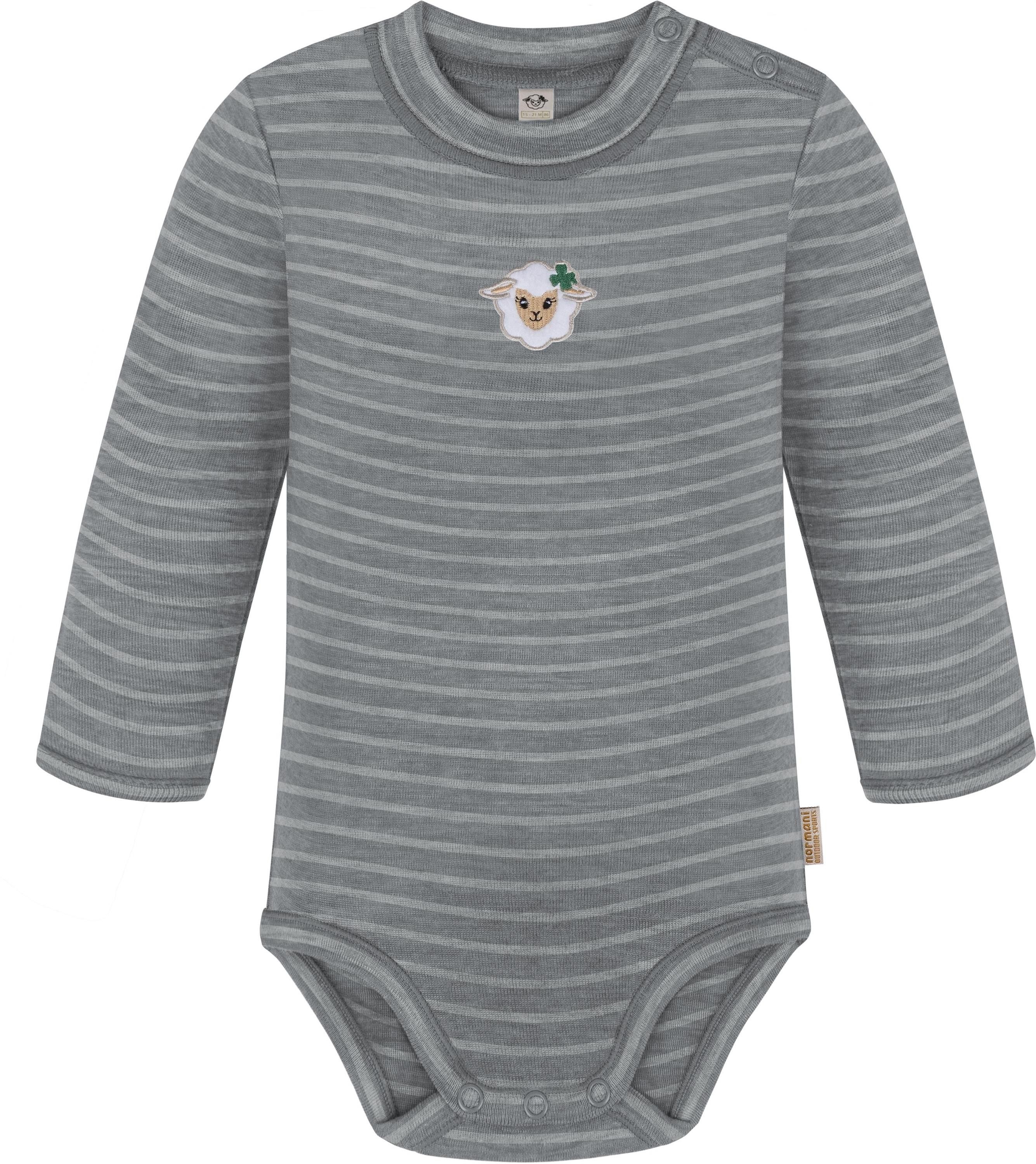 Unser Merino Langarm Body "Tuai" ist mehr als nur ein einfacher Baby Body mit langen Ärmeln. Hinter seiner schlichten Erscheinung verbirgt sich ein Kleidungsstück, das sich perfekt für alle Wetterbedingungen eignet. Mit einer Grammatur von 200 g/m² bietet dieser Body eine optimale Wärmeisolierung, die ihn im Winter zur idealen wärmenden Schicht unter weiterer Kleidung macht. Auch im Sommer kann der Body wegen seiner natürlichen Thermoregulierung einzeln getragen werden. Die Wärmeregulierung und Atmungsaktivität der Merinowolle ermöglichen es Ihrem Baby, den Body den ganzen Tag über zu tragen – sei es beim Spielen oder beim Nickerchen. Die weiche Merinowolle ist besonders sanft zur empfindlichen Haut Ihres Babys und verursacht keine Hautirritationen. Zudem ist die Merinofaser geruchsneutralisierend, sodass der Body auch nach mehrmaligem Tragen frisch bleibt. Die Elastizität der Merinowolle sorgt für maximale Bewegungsfreiheit beim Spielen. Darüber hinaus ist der Body mit hochwertigen Marken-Druckknöpfen von YKK an den Schultern und zwischen den Beinen ausgestattet. Diese gewährleisten ein zuverlässiges Öffnen und Спрятать und erleichtern das Wickeln und Umziehen. Abgerundet wurde der Body mit einem kindgerechtem, flauschigem Schaf Stick, der als Eyecatcher dient.