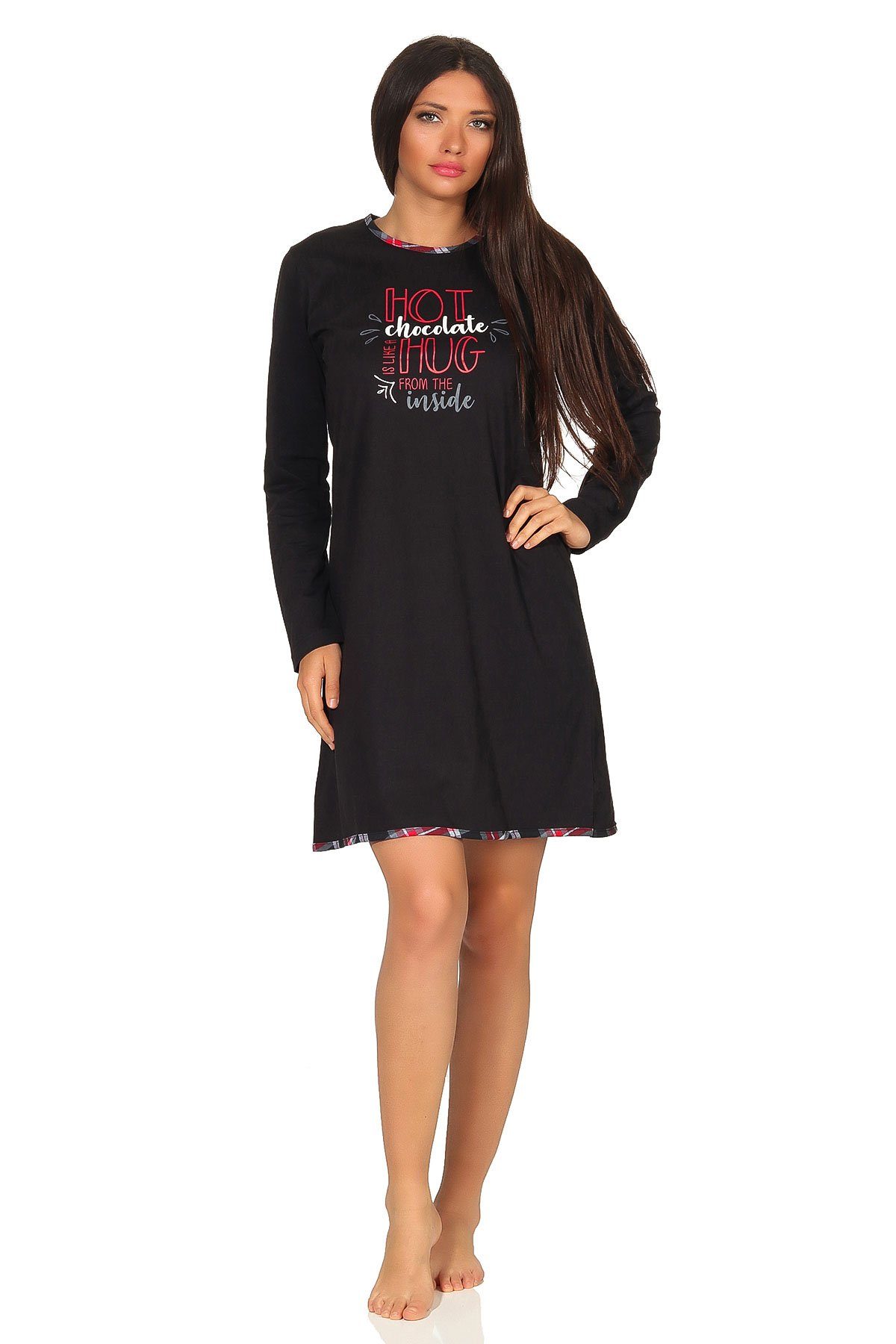 Lässiges Damen Nachthemd langarm mit einem Frontprint als Motiv und mit 95 cm Длина. Dieses Nachthemd besticht durch seine tolle Optik und ist lässt sich bequem tragen.