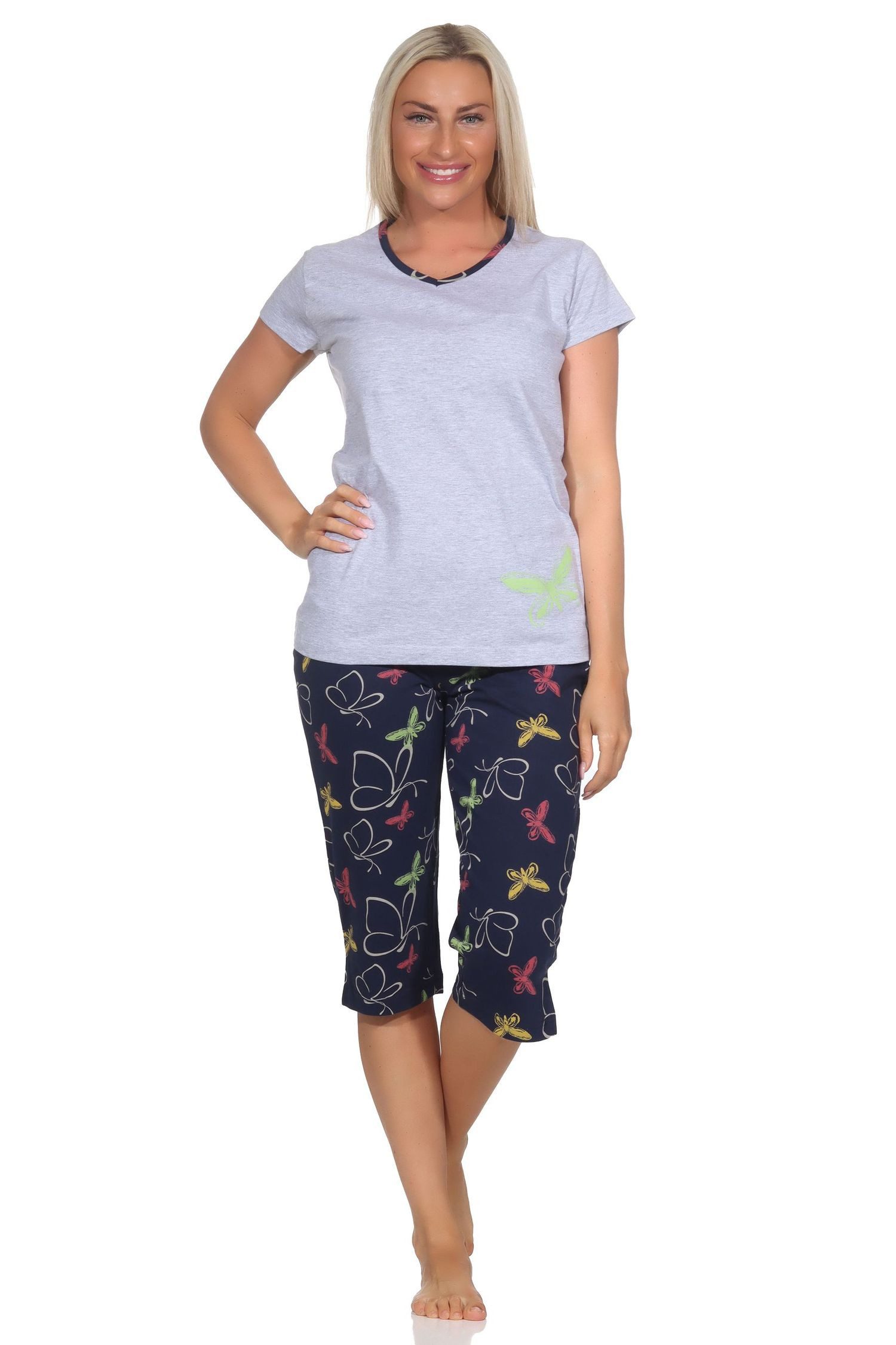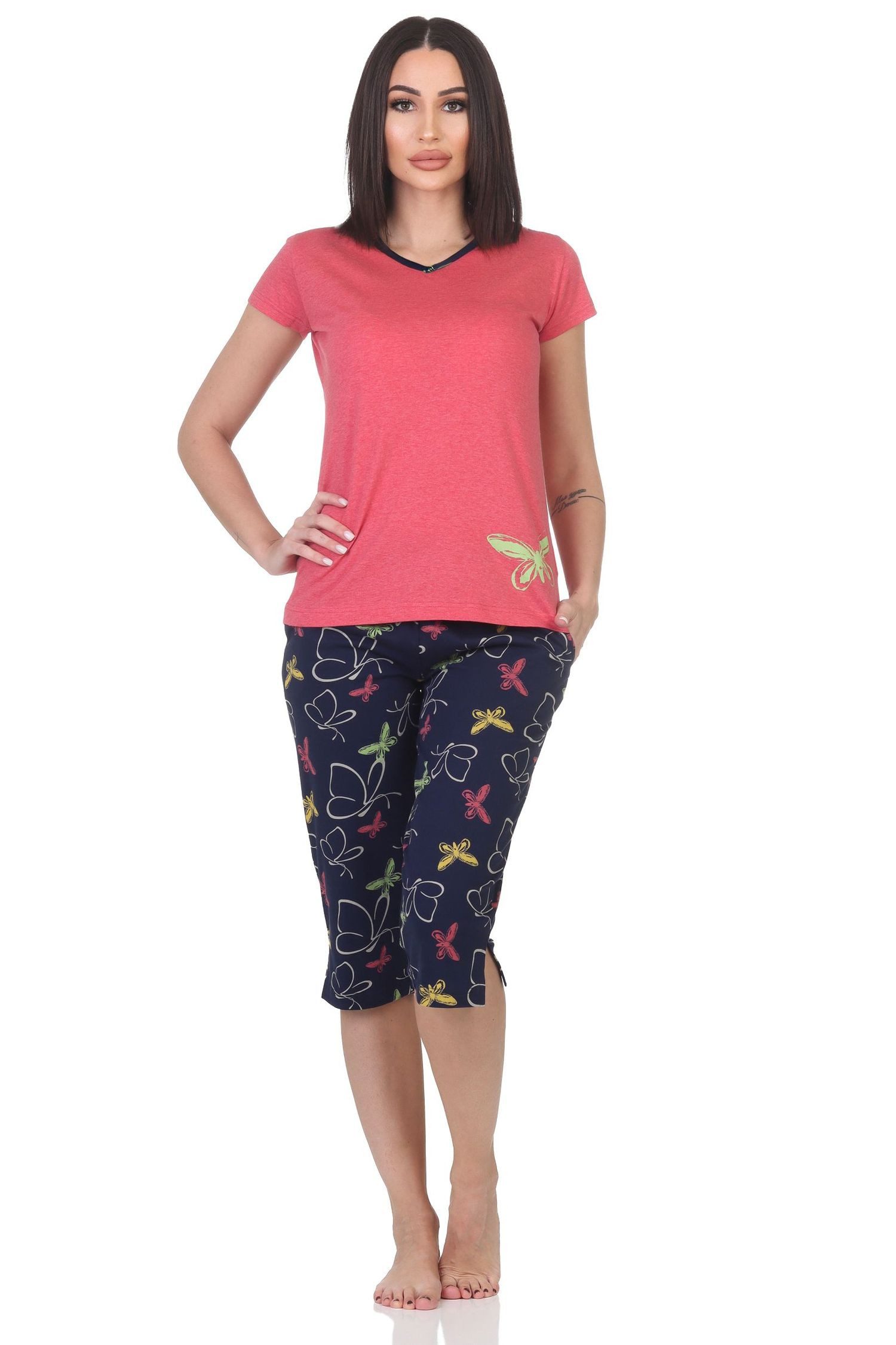 Pyjama Damen Capri Pyjama mit Schmetterling als Motiv - auch in Übergrößen