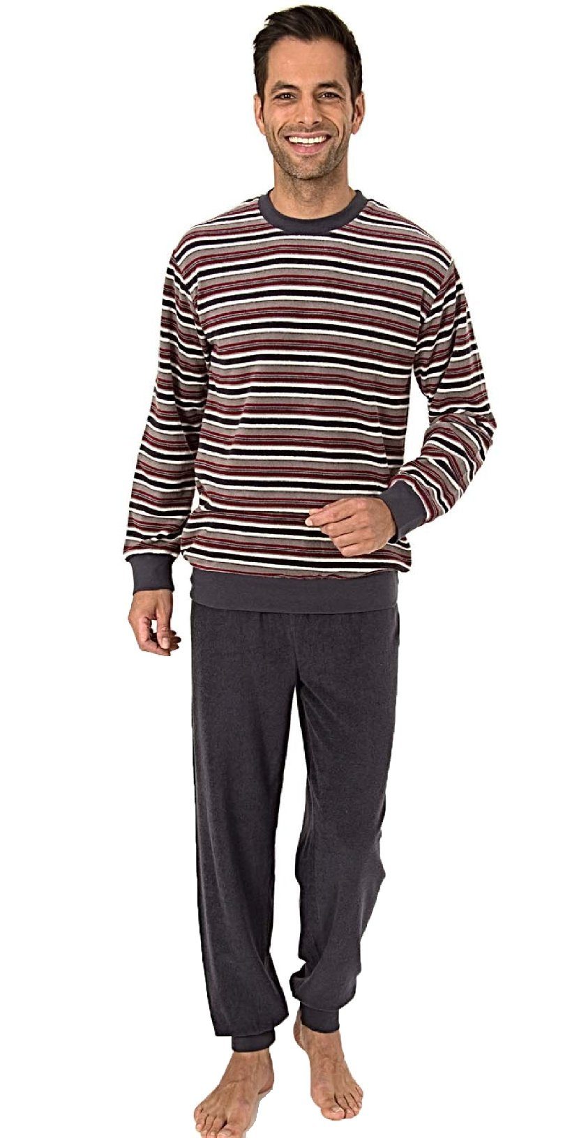 Herren Frottee Pyjama langarm Schlafanzug mit Bündchen in Streifenoptik - 291 101 13 576