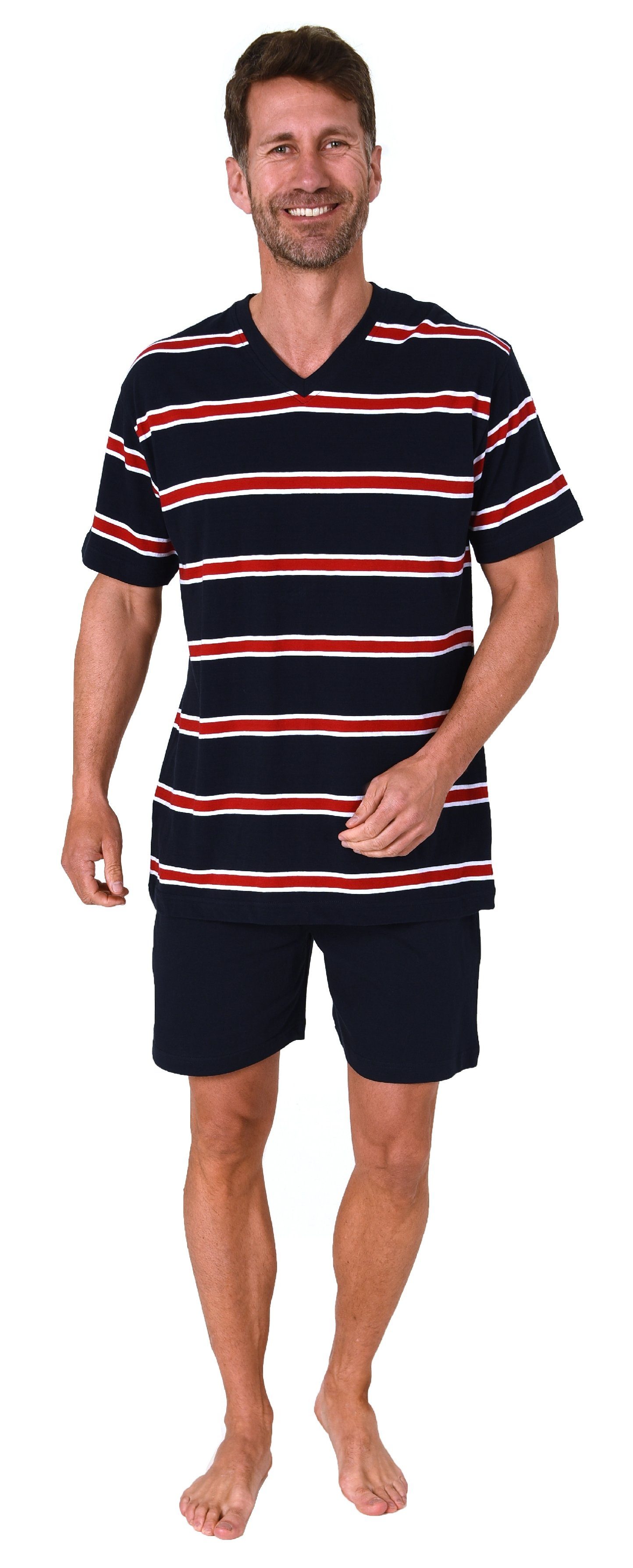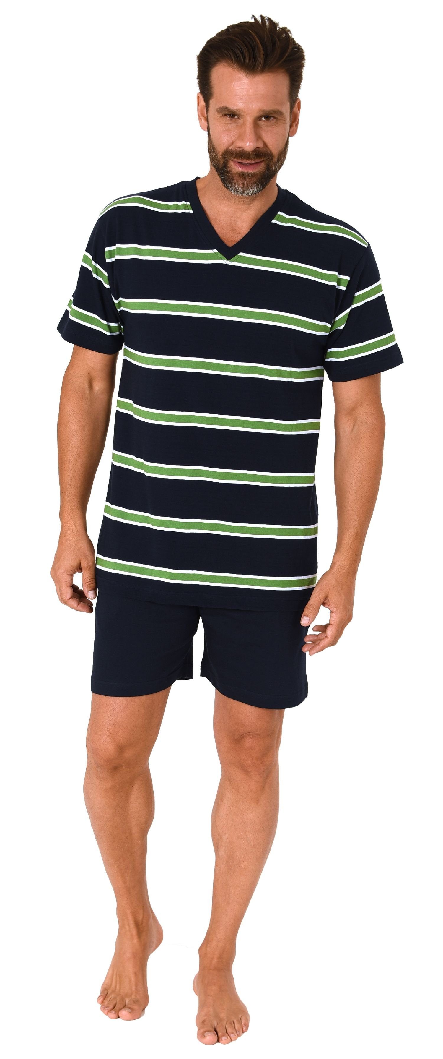 Normann Herren kurzarm Schlafanzug Shorty in edler Streifenoptik – auch in Übergrößen