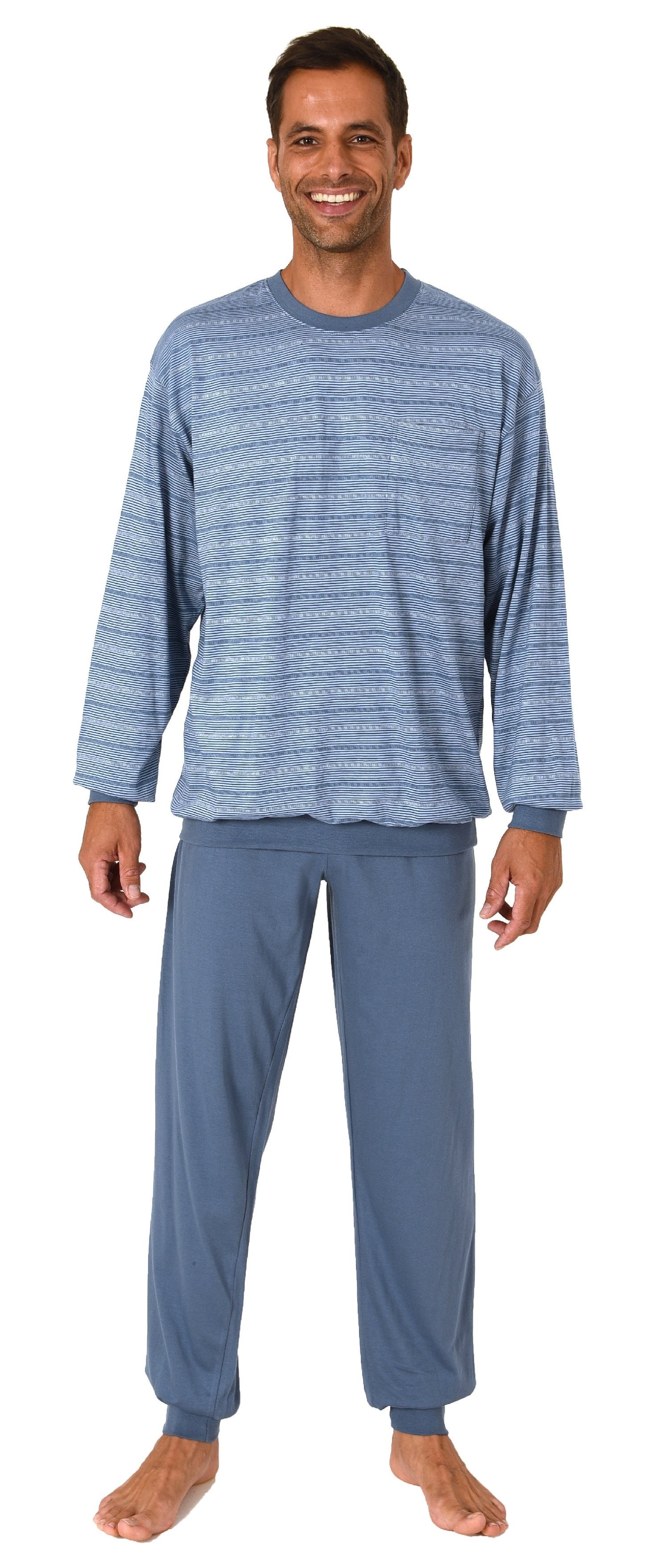 Herren Pyjama langarm mit Bündchen in wunderschöner Streifenoptik - auch in Übergrössen