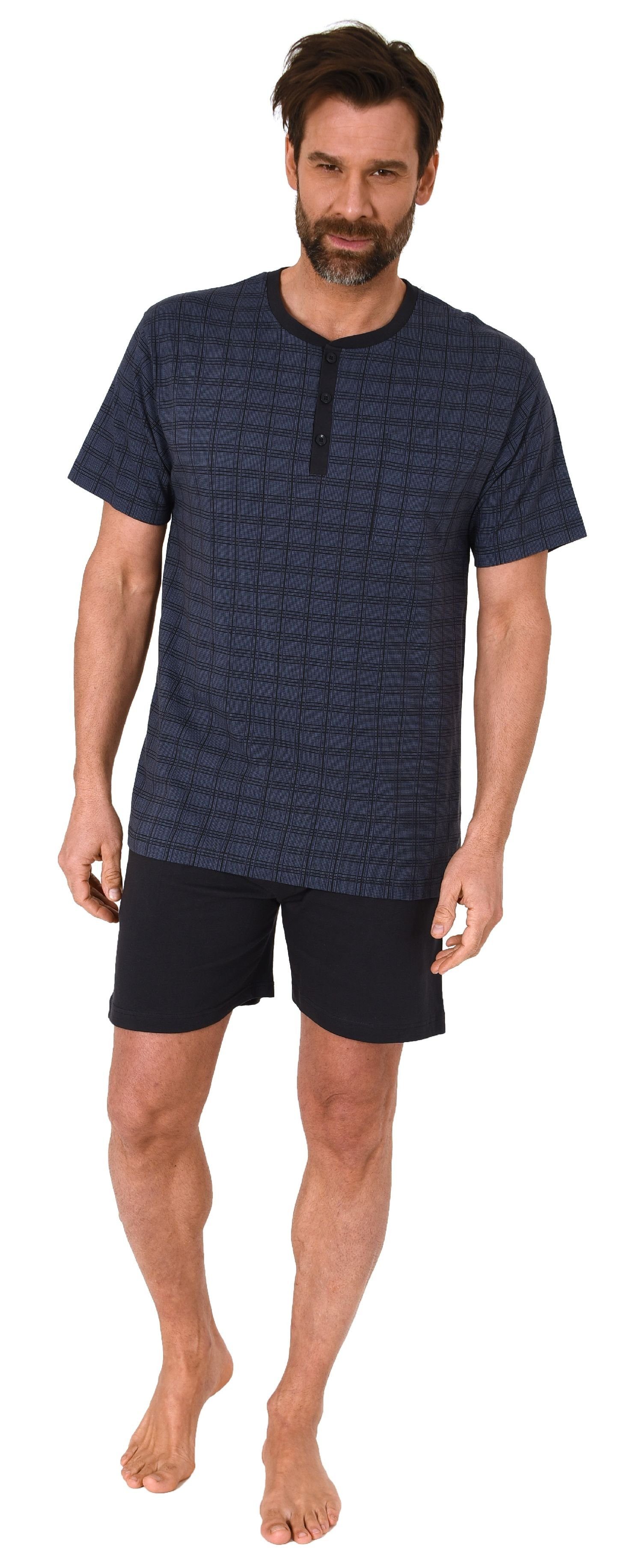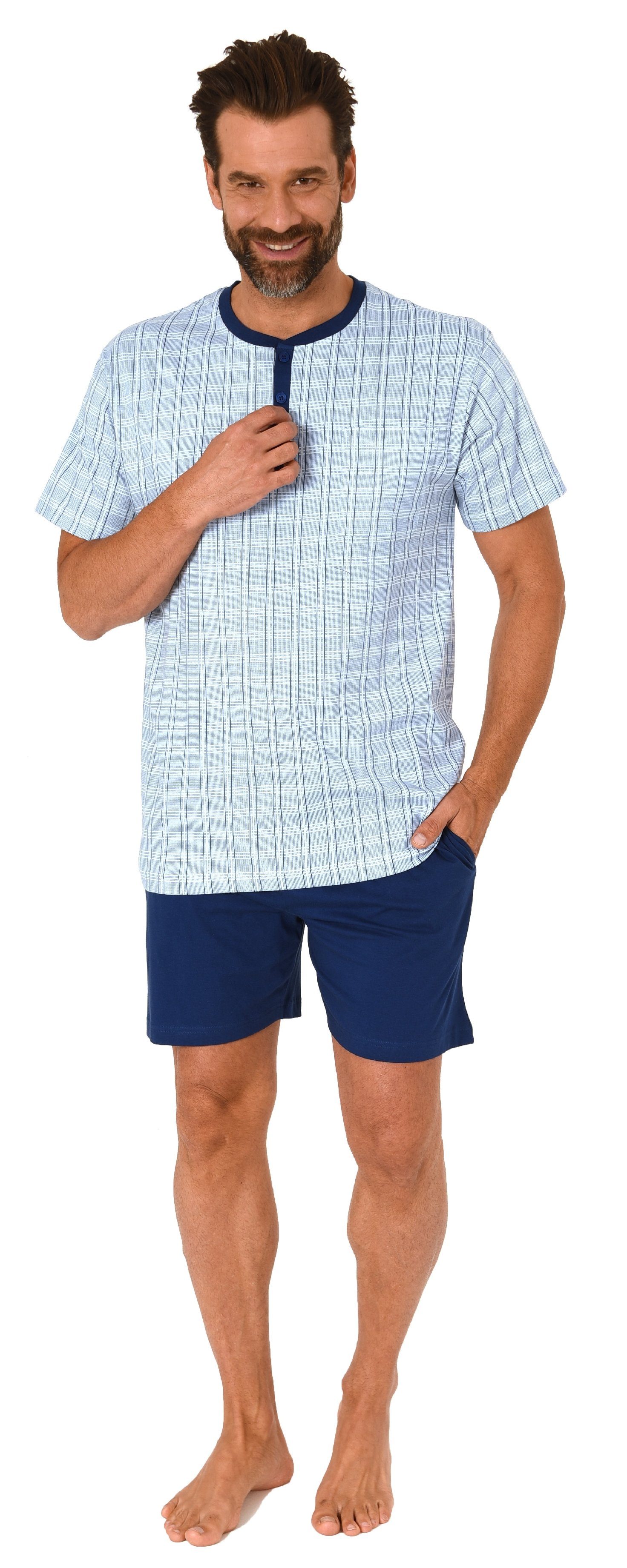 Herren Schlafanzug kurzarm Shorty mit Knopfleiste am Hals – auch in Übergrössen