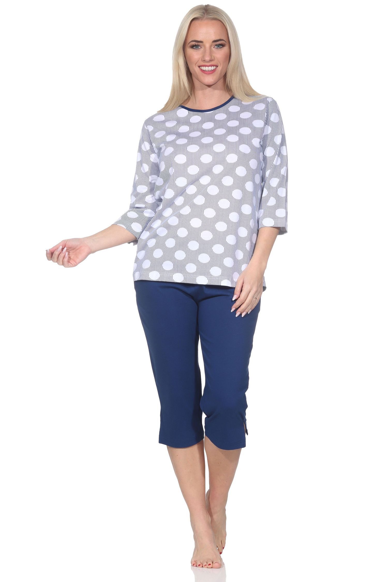 Normann Damen kurzarm Capri Schlafanzug in Tupfen-Punkte Optik