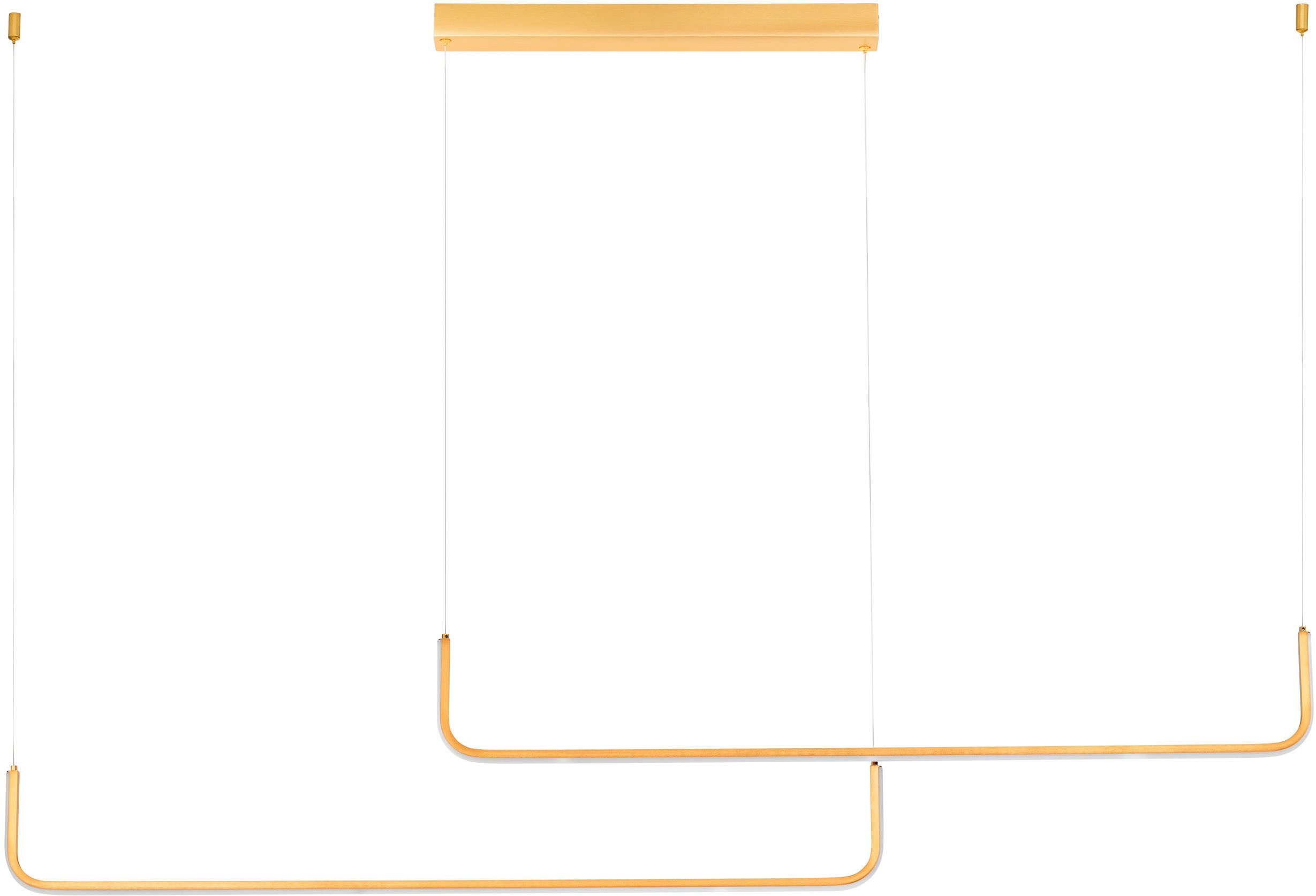 Die stilvolle Pendelleuchte der Marke Nova Luce verleiht Deinem Wohn- oder Esszimmer einen modernen und schlichten Touch. Sie ist Teil der STRITA-Serie und bereichert Dein Zuhause mit ihrem einzigartigen Aussehen. Mit ihrer goldenen Farbe, die aus robustem Aluminium besteht, bringt sie Wärme und Gemütlichkeit in Deine Räume. Diese Leuchte ist für den Anschluss an eine Spannung von 230 Volt ausgelegt und besitzt zwei Brennstellen. Diese verbrauchen jeweils 20 Watt, was zu einer hohen Lichtleistung führt. Dank der Schutzart IP20 und der Schutzklasse I ist diese Innenleuchte sicher und zuverlässig in der Anwendung. Besonders hervorzuheben ist die Dimmbarkeit des Leuchtmittels. Dies ermöglicht Dir, die Beleuchtungsstärke über Deine hauseigene Installation oder ein Triac zur individuell bevorzugten Stimmung anzupassen. Das fest verbaute Leuchtmittel in dieser Pendelleuchte basiert auf LED-Technologie, die für ihre Energieeffizienz und Langlebigkeit bekannt ist. Es gehört zur Energieklasse G und strahlt ein warmweißes Licht mit einer Farbtemperatur von 3000 K aus. Der Lichtstrom beträgt 2 x 1428 lm, was eine angenehme Beleuchtung Deines Raumes ermöglicht. Mit einer Lebensdauer von 25.000 Stunden und 15.000 Schaltzyklen hält dieses Leuchtmittel besonders lange. Diese Pendelleuchte hat eine Höhe von 120 cm und eine Длина von 150 cm, was sie zu einem auffälligen Element in Deinem Raum macht. Mit einem Gewicht von nur 2 kg lässt sie sich leicht montieren. Eine Besonderheit ist, dass sie auf die gewünschte Длина kürzbar ist. Dies ermöglicht eine individuelle Anpassung an Deine Raumhöhe und sorgt für optimale Beleuchtungsverhältnisse. Mit dieser Leuchte erhältst Du ein Qualitätsprodukt, das Design und Funktionalität perfekt miteinander kombiniert.
