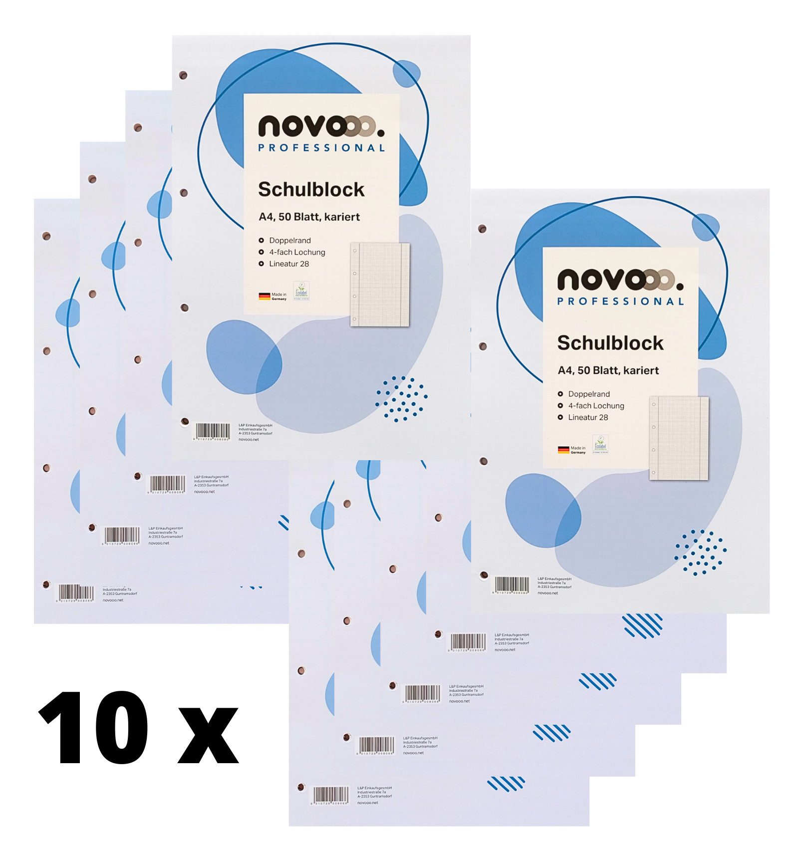 10 Schreibblöcke, A4, kariert, je Block 50 Blatt