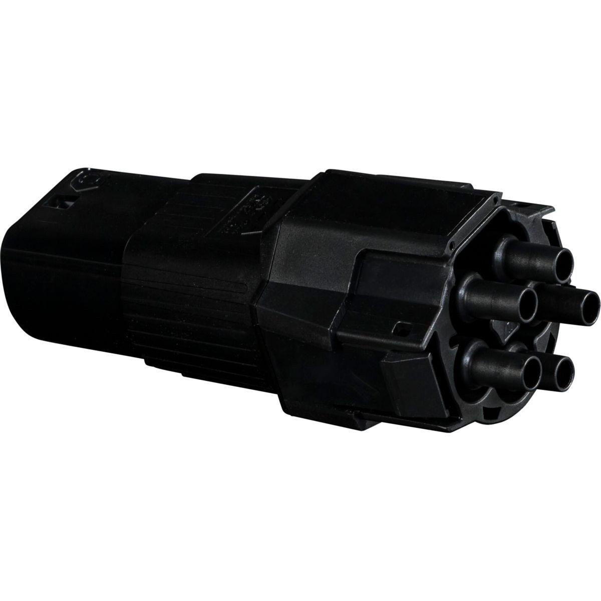 5-poliger Steckeraufsatz, passend für das NRGkick-Sicherheitssteckersystem, das dank austauschbarer Adapter das Aufladen mit nur einem Kabel an jeder Steckdose und Ladestation ermöglicht und kein zusätzliches Typ-2-Kabel erfordert.