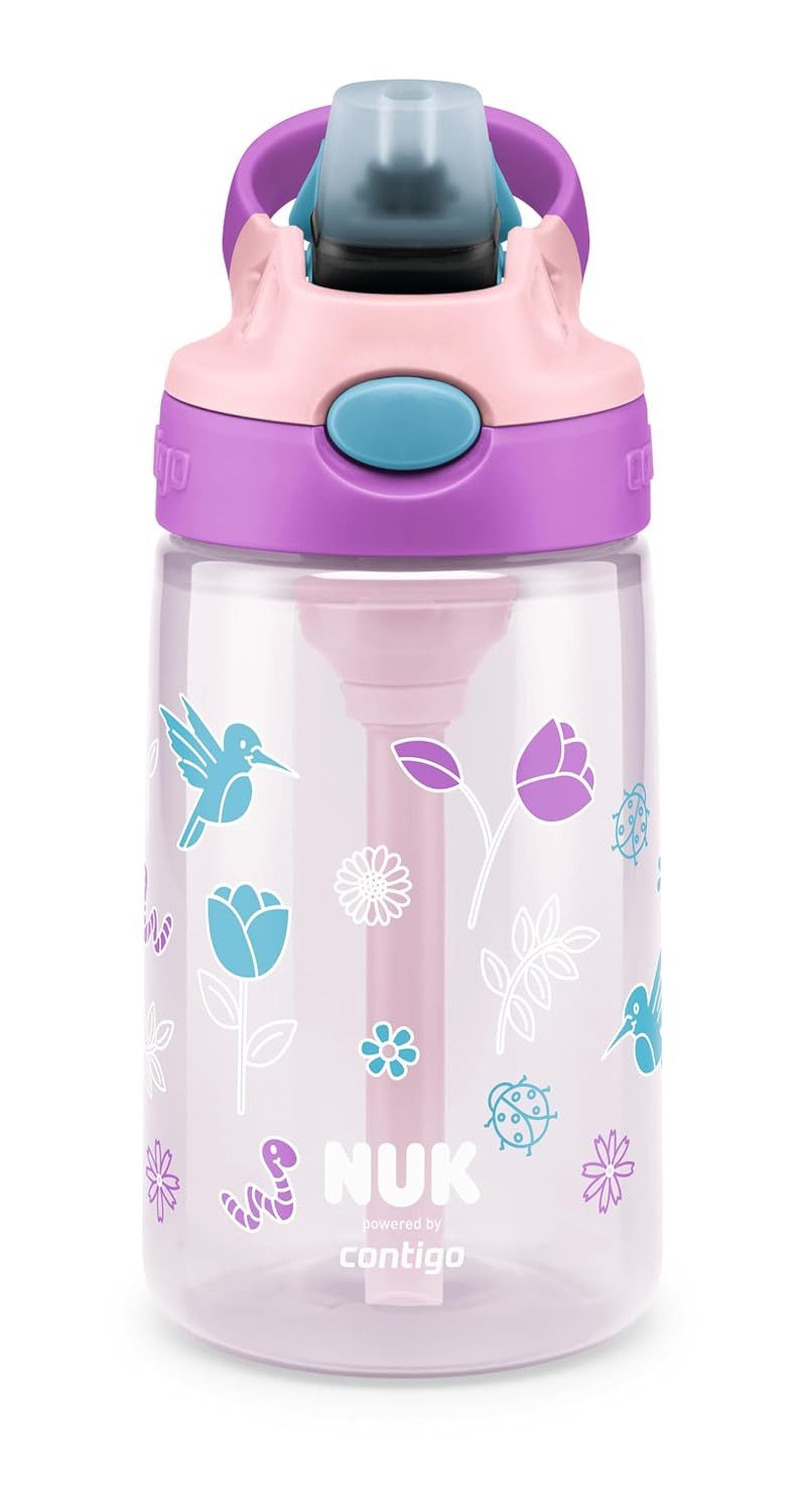 NUK Trinkflasche NUK Contigo Straw Cup 420ml – Strohhalm, Tulpen Motiv, BPA-frei