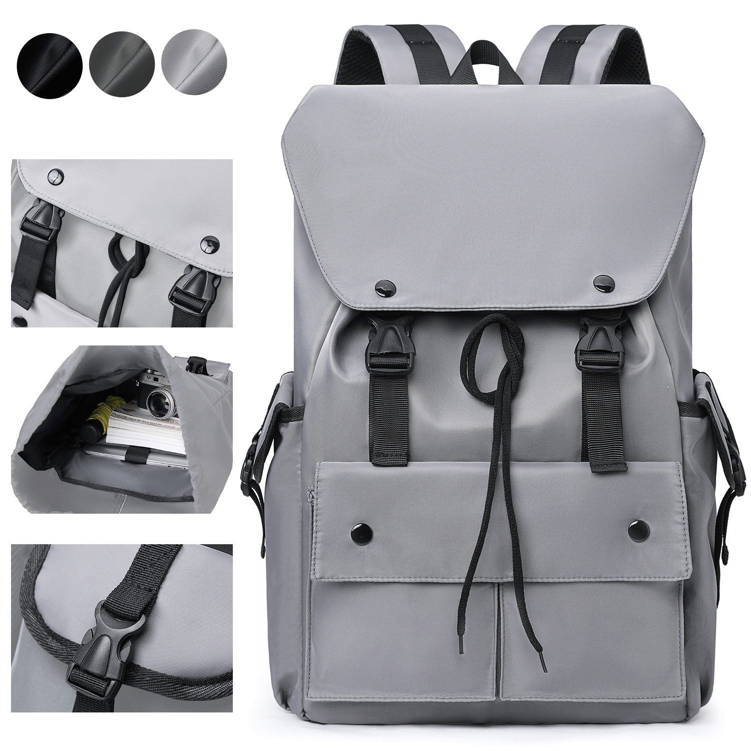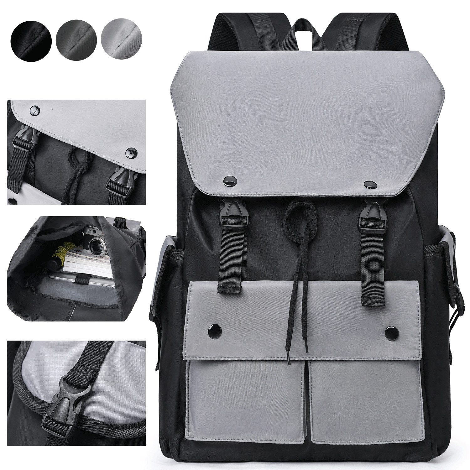 STILVOLLES DESIGN: Dieser Rucksack hat ein klassisches Klappendesign mit doppelten Schnallen, die sowohl ästhetisch ansprechend als auch diebstahlsicher sind.