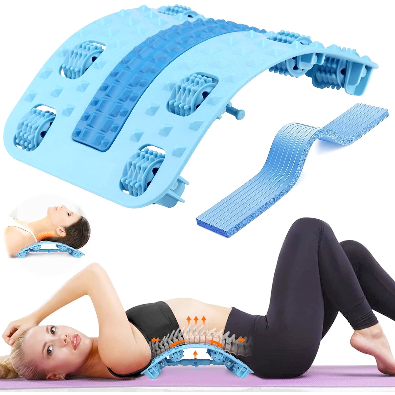 4.NEU HINZUGEFÜGTE 8 MASSAGE-GÄNGE: neue verbesserte Rückenstretcher mit 8 Massage-Gänge, die die Bedürfnisse der Kopf-, Rücken-, Lenden-, Bein- und Fußmassage erfüllen können, so dass Ihr ganzer Körper entspannt werden kann. Stellen Sie die Rückentrage auf Ihre bequeme Höhe ein, liegen Sie flach auf dem Wirbelsäulenbrett, 26 ° passen menschliche Lendenwirbelsäulenkurve, entlasten Sie Rückensteifheit und korrigieren Sie die Wirbelsäulenkurve nur 10 Minuten pro Tag.