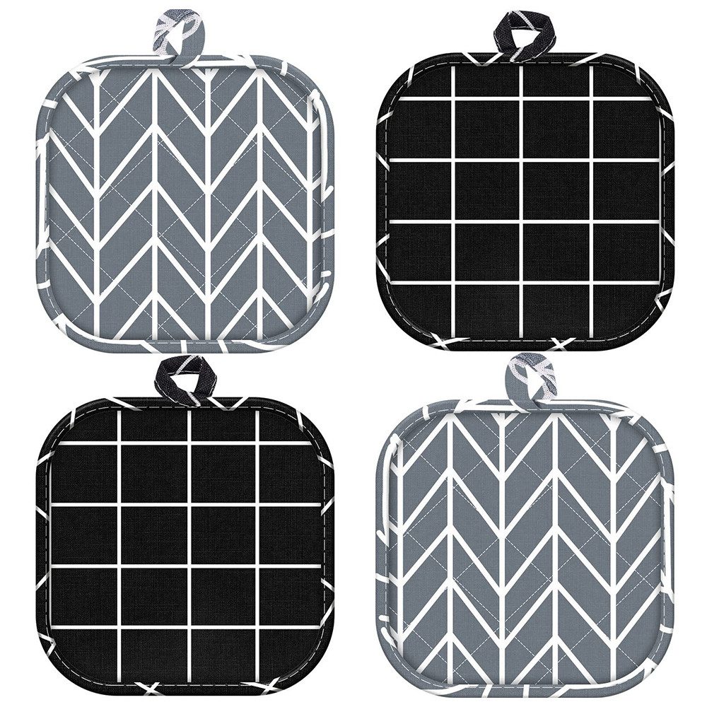 Einzigartiges Design4 er Set Baumwolle Topflappen, 17*17 cm. durch die praktische Hängeschlaufe Einfach in jeder kleine Ecke aufzuhängen - nimmt so gut wie keinen Platz weg.