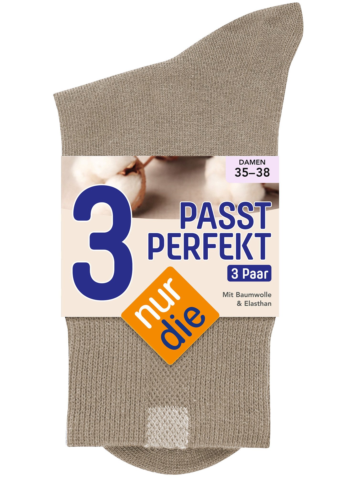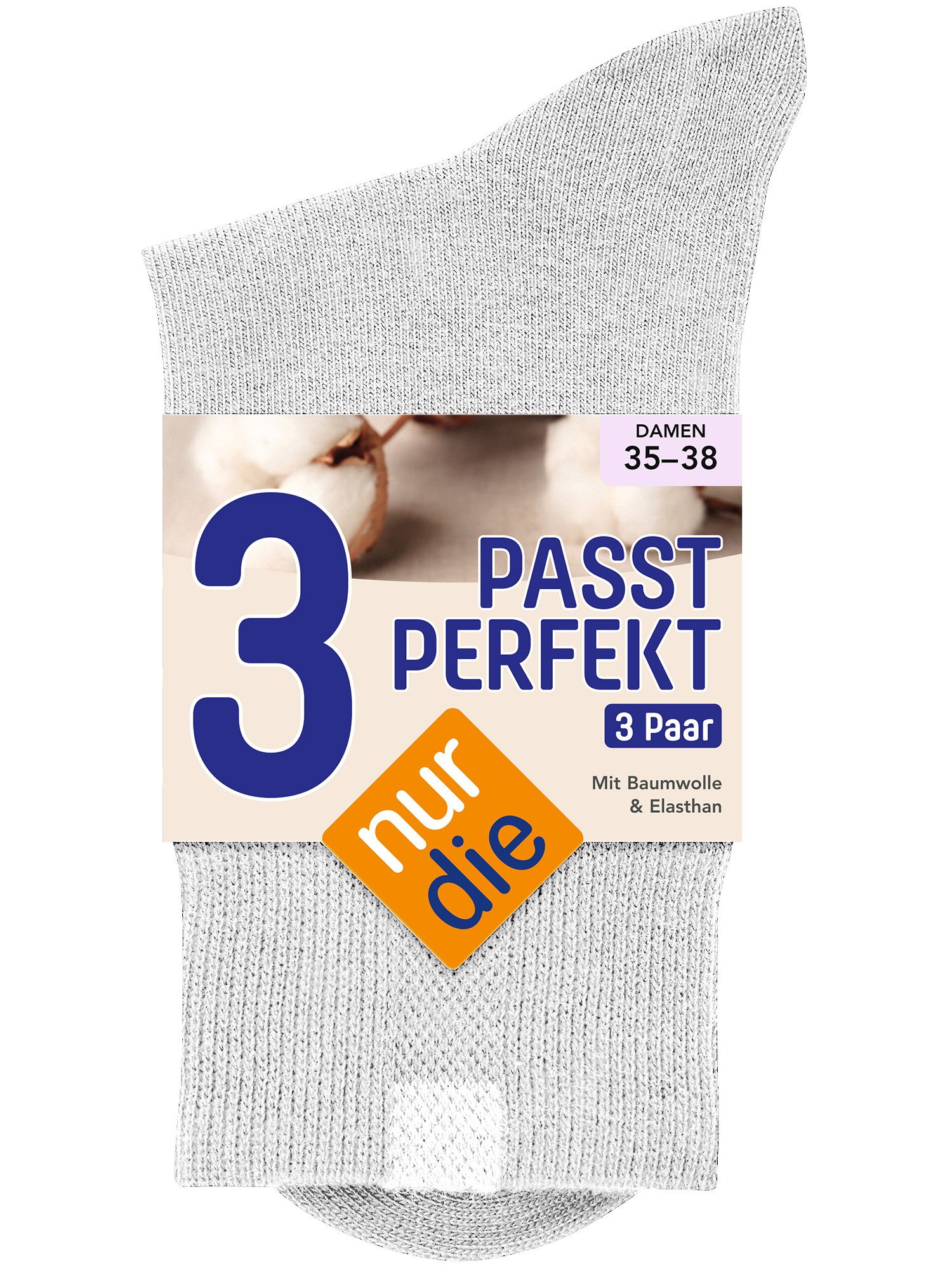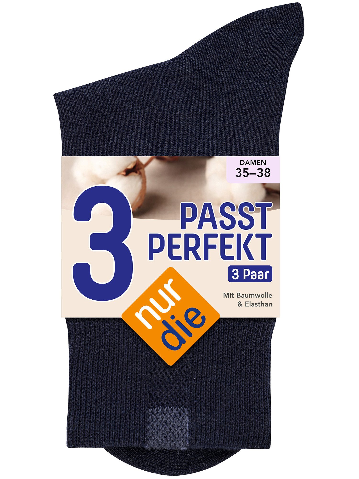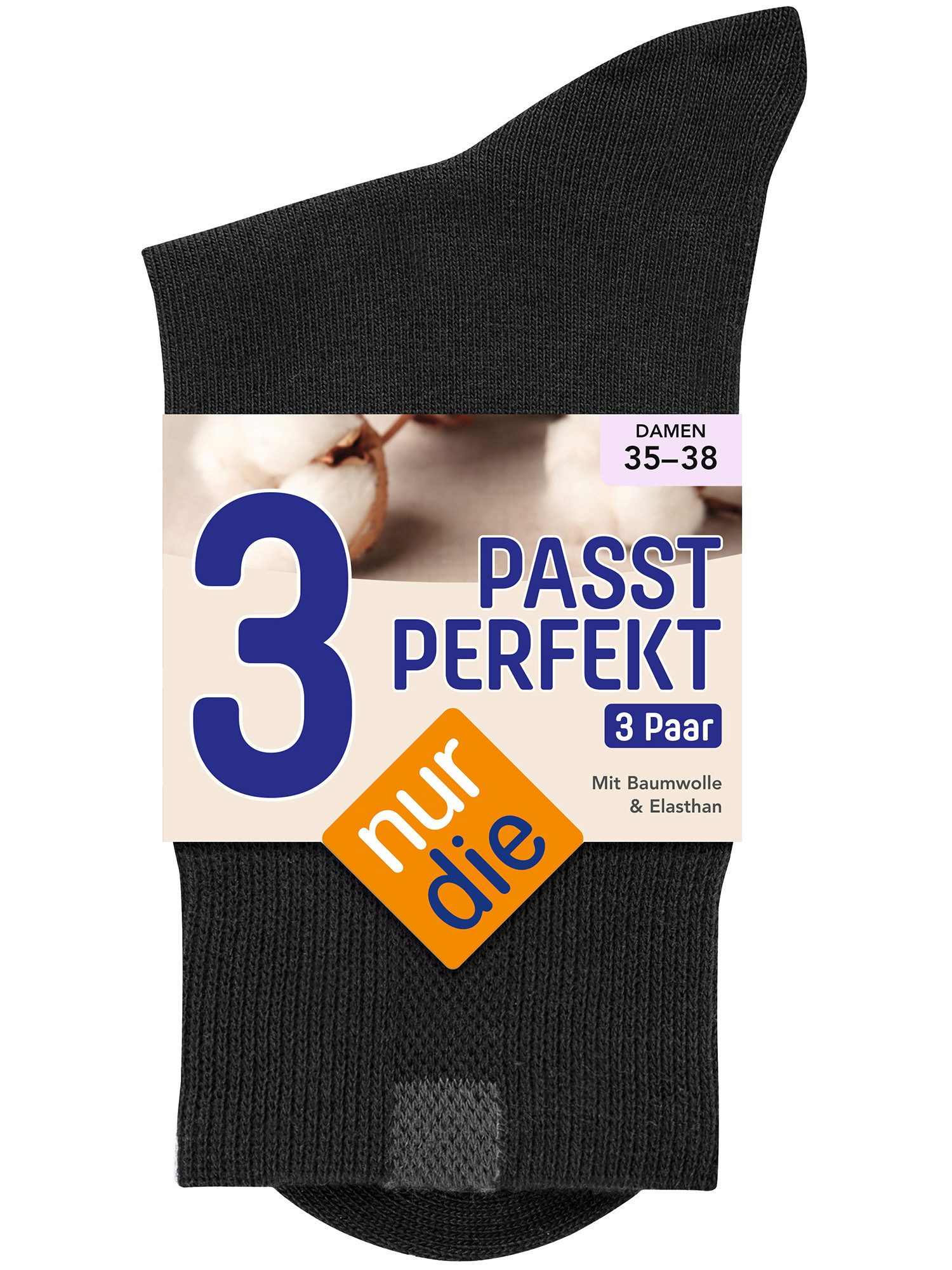Die Passt Perfekt Socken von NUR DIE sind besonders angenehm zu tragen, denn die natürliche Baumwolle lässt die Füße atmen. Die Socke passt perfekt dank breitem Abschlussbund und Elasthan-Anteil. Im attraktiven Dreierpack.
