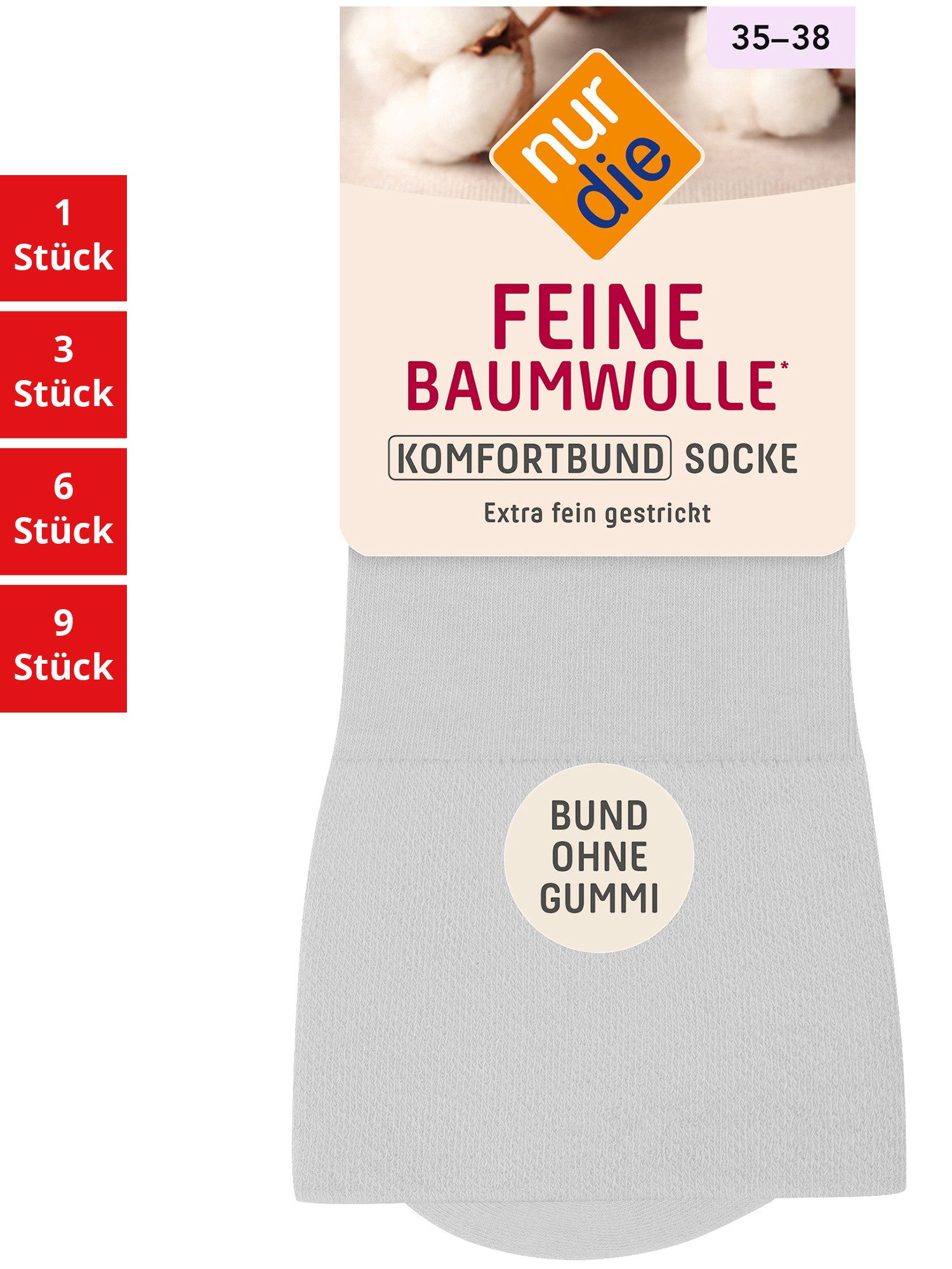 Die Feine Komfort Socke von NUR DIE bietet erstklassigen Tragekomfort und verwöhnt deine Füße dank der Verwendung von hochwertiger, gekämmter Baumwolle. Dieses Material ermöglicht eine optimale Luftzirkulation und ein äußerst angenehmes Gefühl auf der Haut.