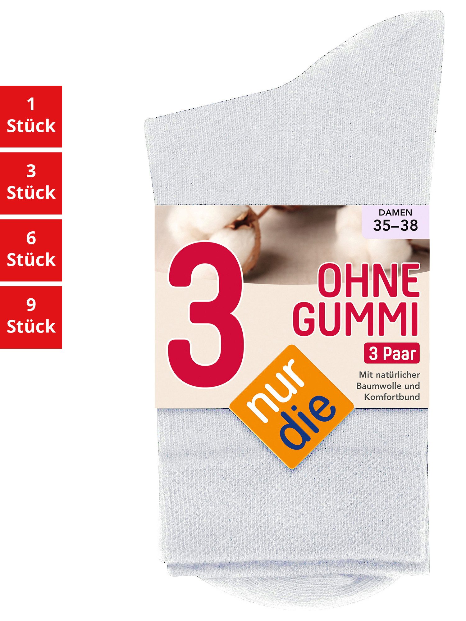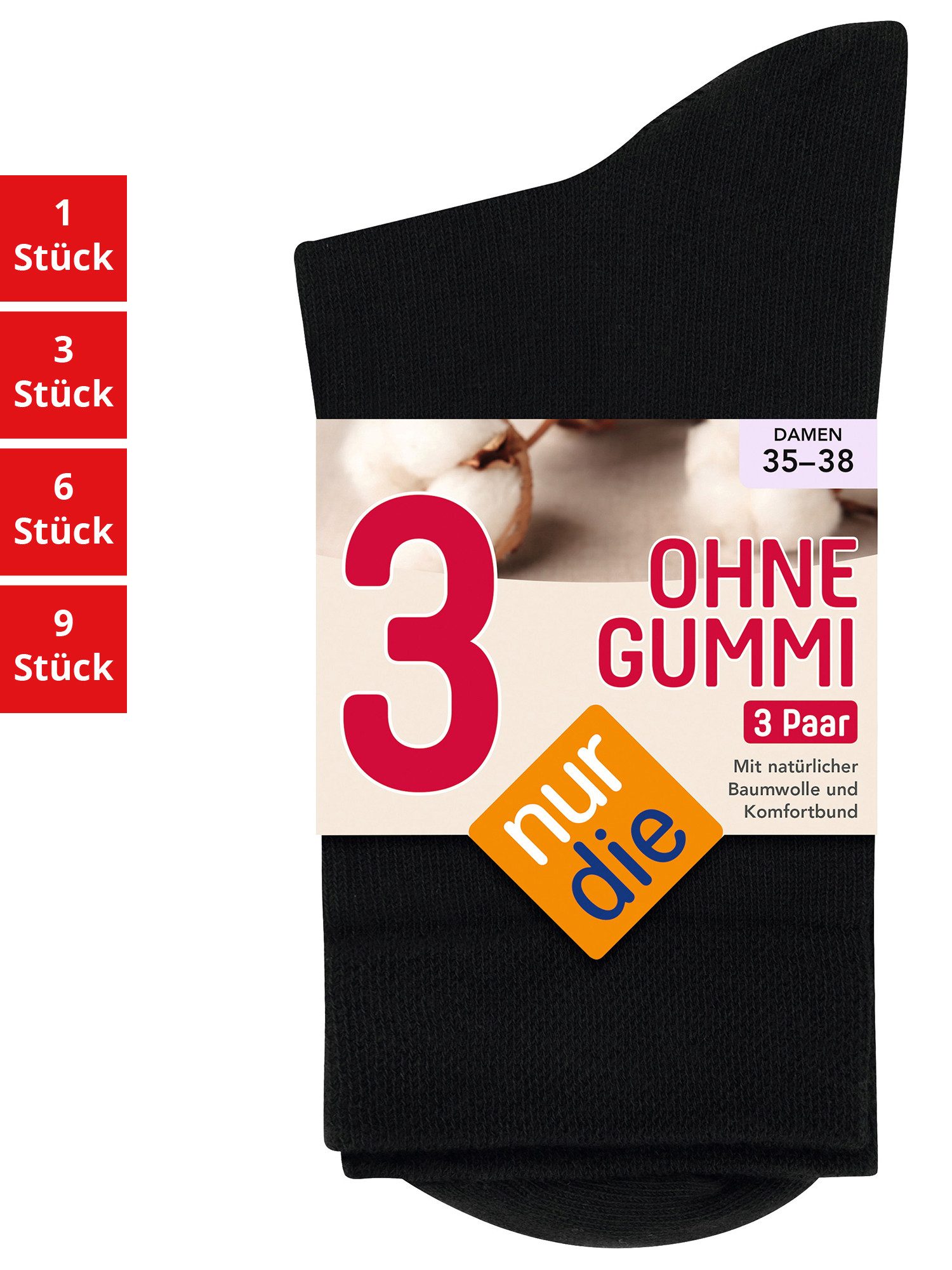 Mit den NUR DIE Ohne Gummi Socken kannst du auf straff sitzende Gummifäden verzichten und den ganzen Tag über bequemen Tragekomfort genießen. Der Komfortbund schmiegt sich angenehm an deinen Fuß an und hinterlässt keine unangenehmen Druckstellen.